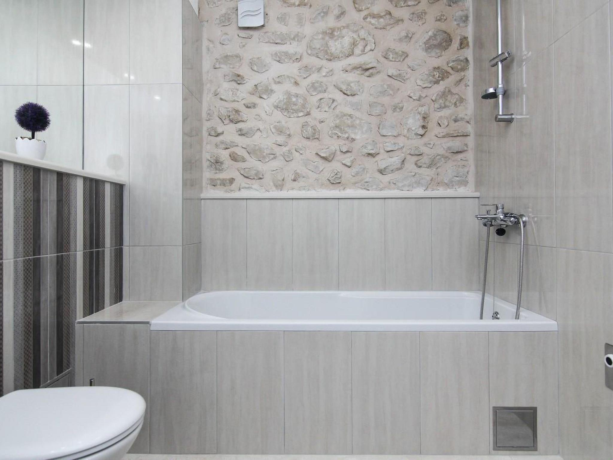 The completely renovated stone house has three bedrooms with double beds, three bathrooms with shower.