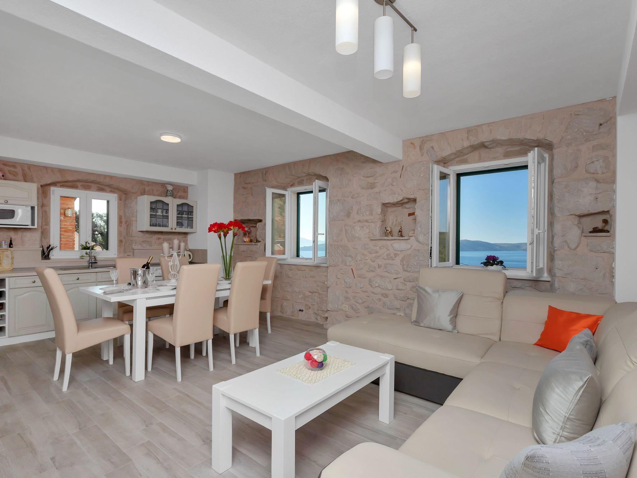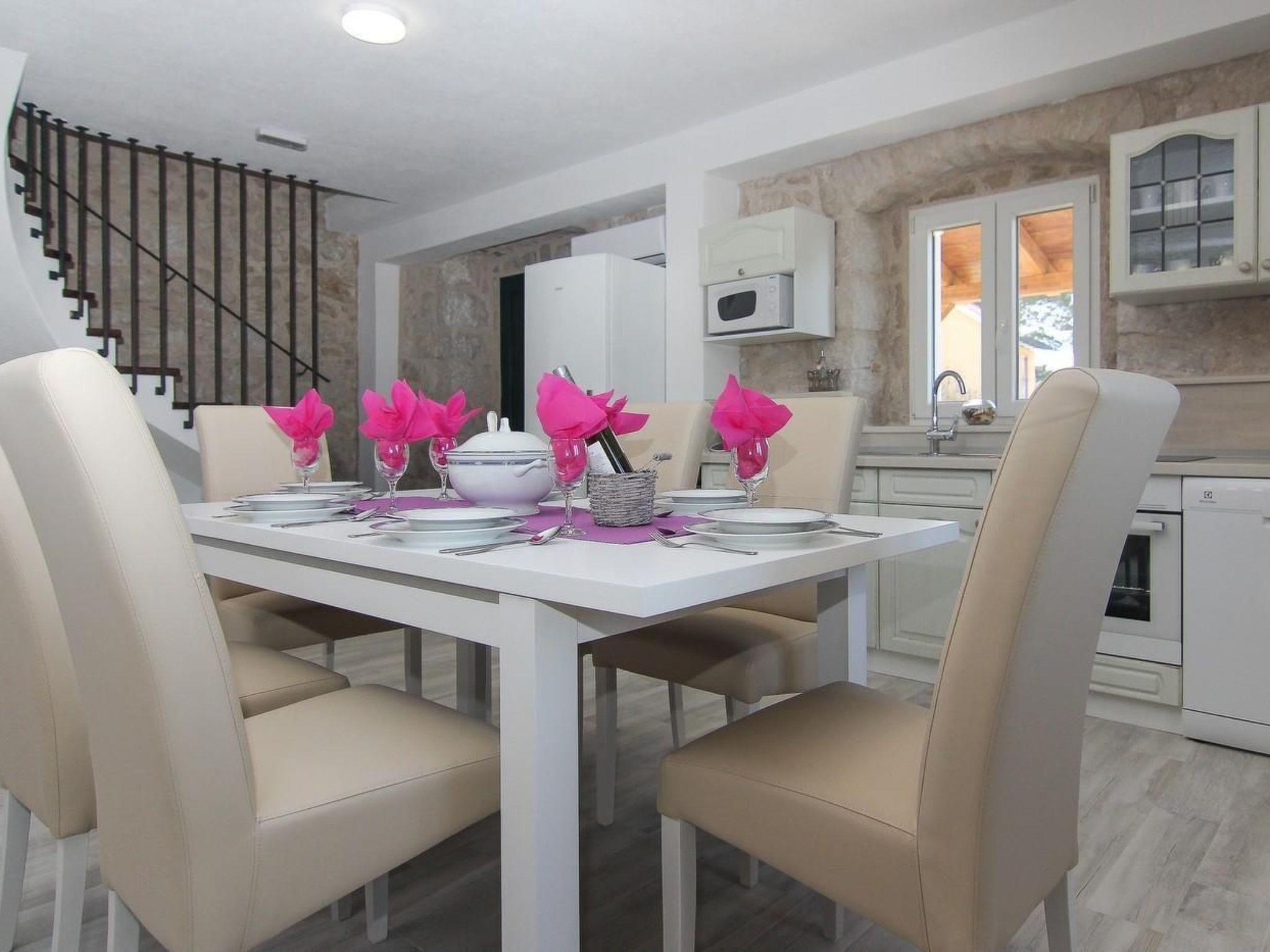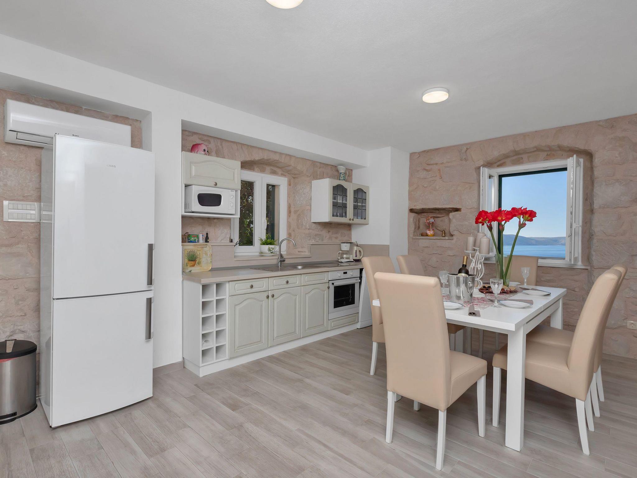 Holiday house Mya with heated pool is located 20 km south of the town of Makarska, 1.0 km from the sea and the beach. The completely renovated stone house has three bedrooms with double bed, three bathrooms with shower.