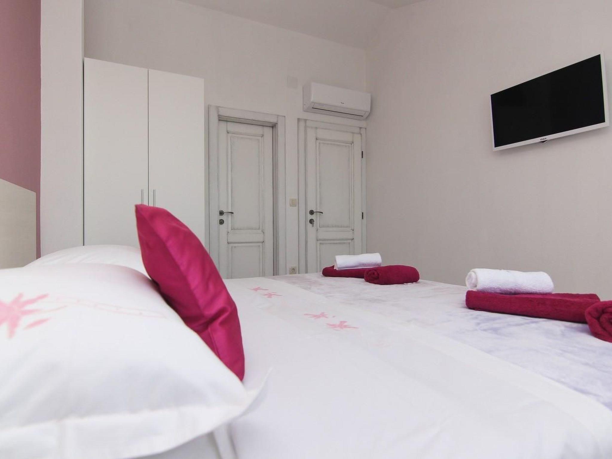 On the ground floor, separate entrance, there is a bedroom with bathroom and a small kitchen, on the first floor there is a living room with kitchen and a bathroom. This floor is connected to the second floor by an internal staircase. Upstairs there are two double bedrooms with ensuite bathrooms, washing machine, WLAN, air conditioning, SAT/TV.