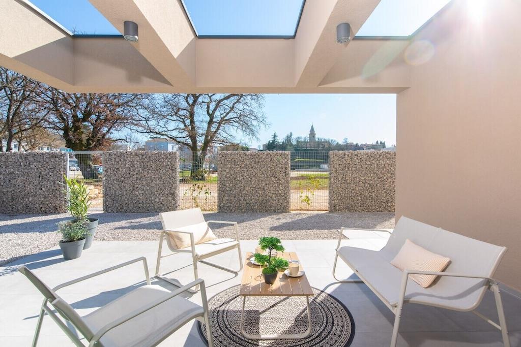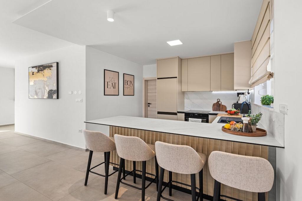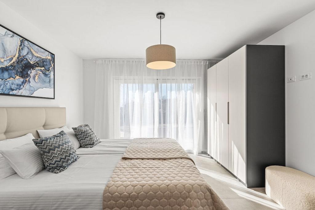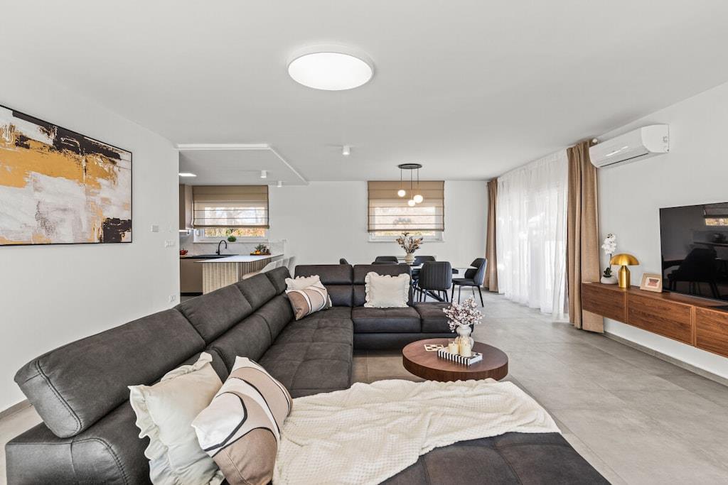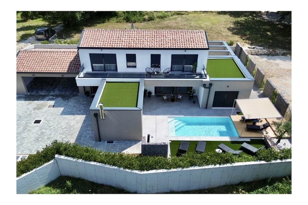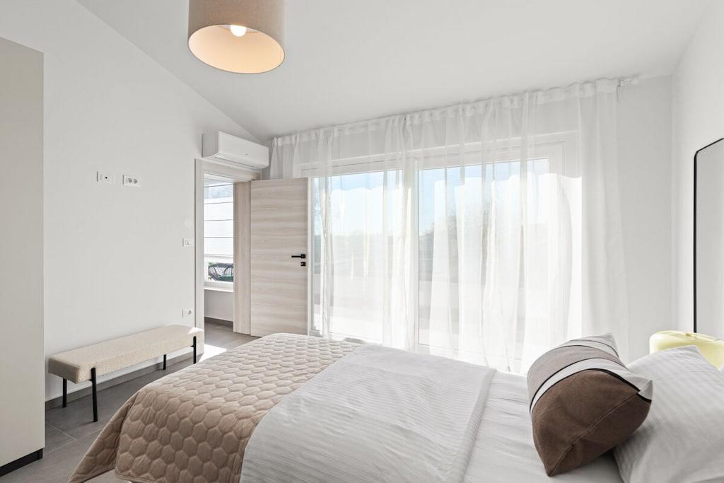 Villaen er udstyret med moderne apparater og indrettet i afslappende farver. Den har 3 soveværelser med private badeværelser, et moderne og fuldt udstyret køkken (brødrister, mikrobølgeovn, cafeteria) med spisebord, en stue og toilet samt et vaskerum. Udendørs er der en swimmingpool, en overdækket terrasse med spisebord og en grill til hyggelige sammenkomster med familie og venner. Og en ekstra terrasse, der er perfekt til at nyde morgensolen.