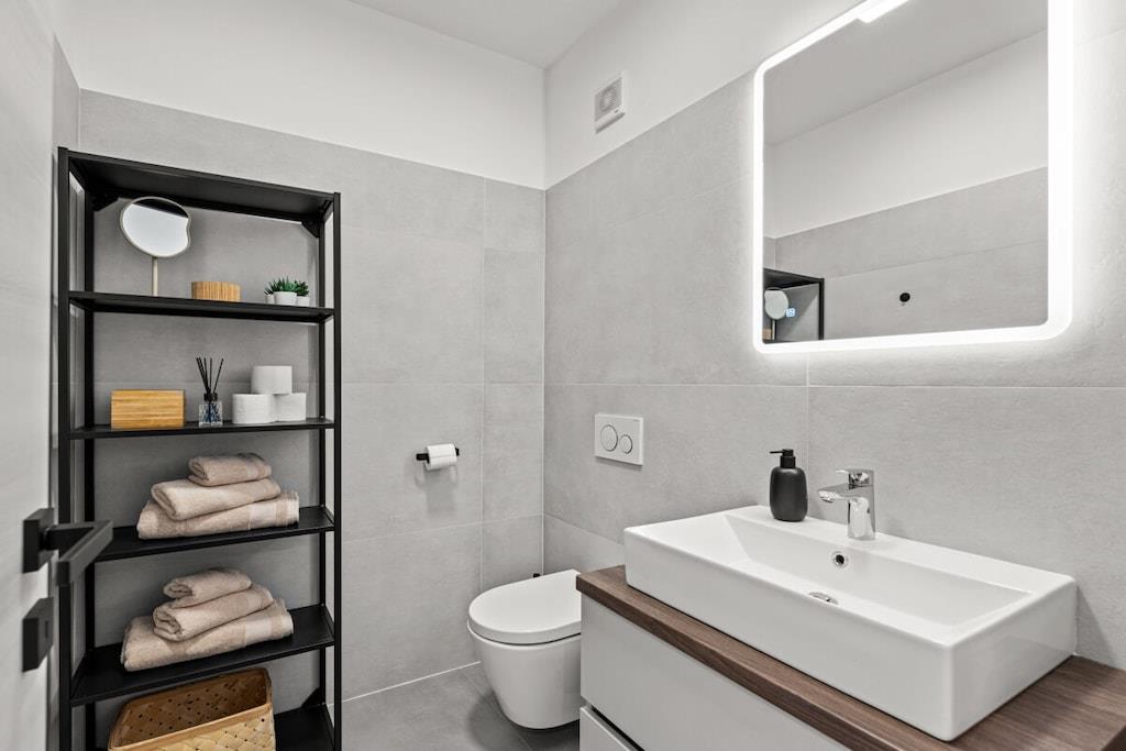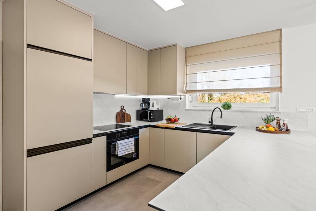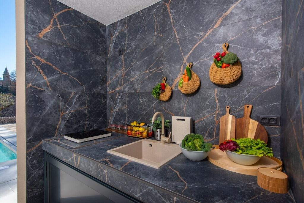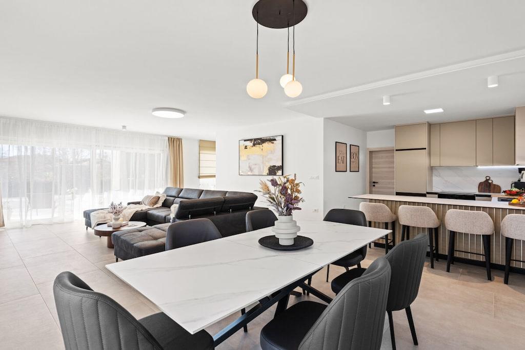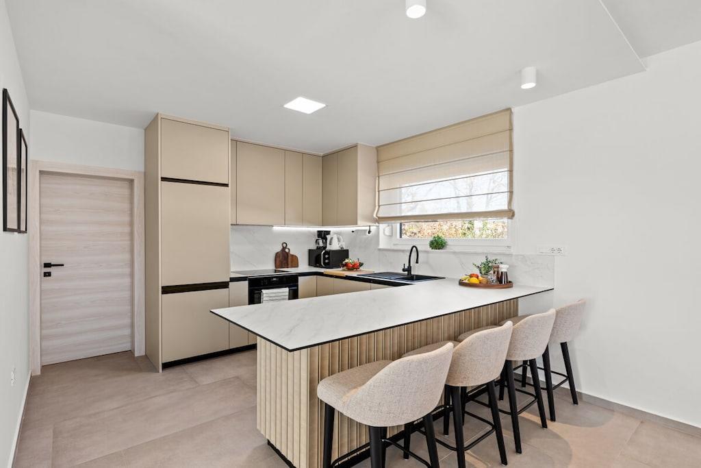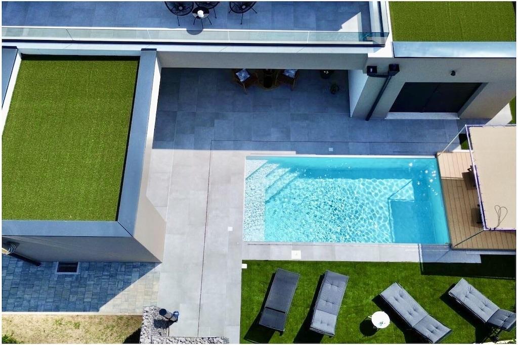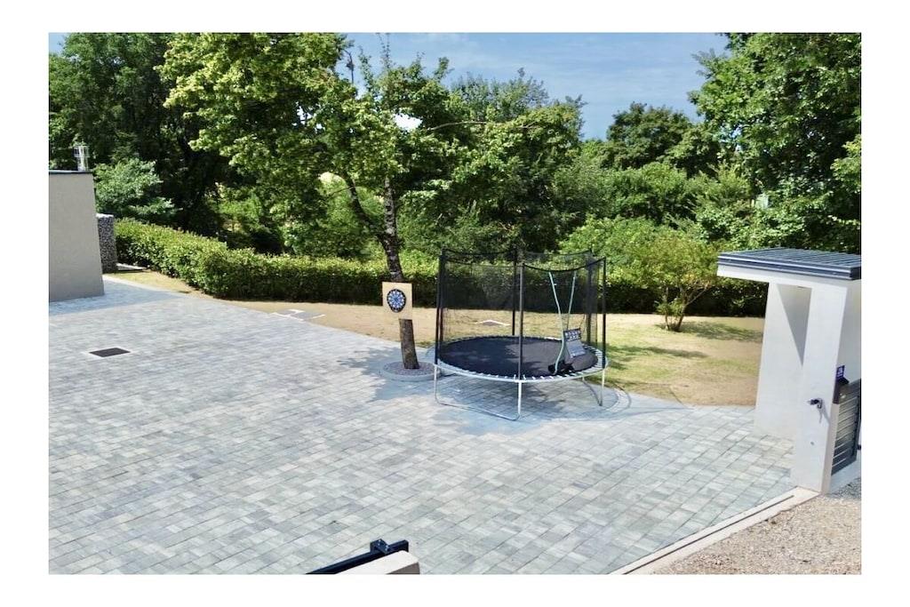 Villaen er udstyret med moderne apparater og indrettet i afslappende farver. Den har 3 soveværelser med private badeværelser, et moderne og fuldt udstyret køkken (brødrister, mikrobølgeovn, cafeteria) med spisebord, en stue og toilet samt et vaskerum. Udendørs er der en swimmingpool, en overdækket terrasse med spisebord og en grill til hyggelige sammenkomster med familie og venner. Og en ekstra terrasse, der er perfekt til at nyde morgensolen.