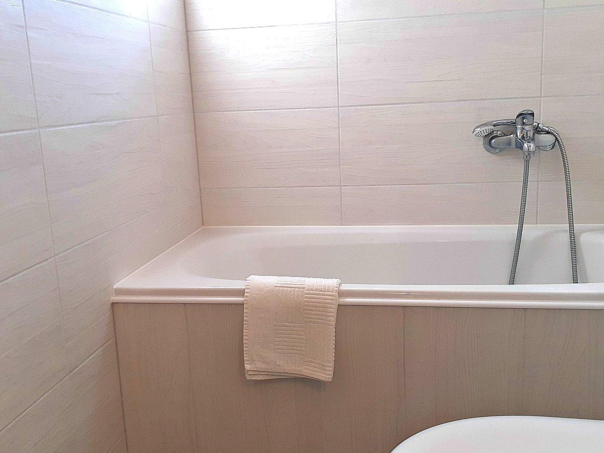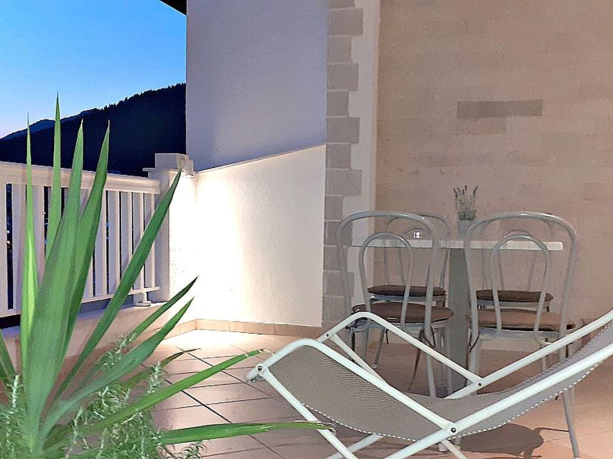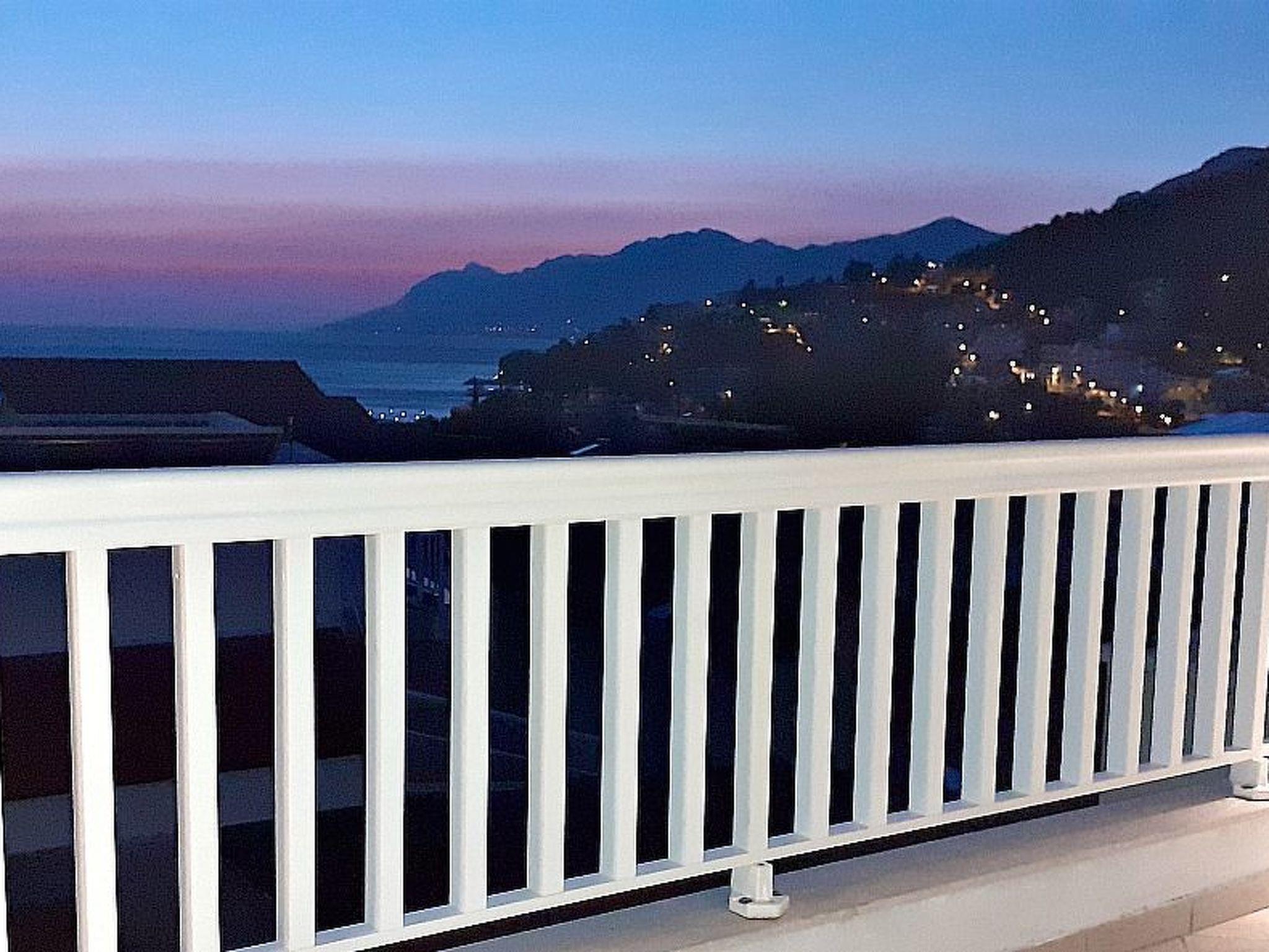 This beautiful holiday flat is located on the third floor for 4-5 persons with two bedrooms with double beds, equipped kitchen, toilet, bathroom with bathtub. Internet access, SAT-TV and air conditioning are also available. Flat has a nice covered terrace with sea view (shared with another flat) and a private balcony with mountain view.