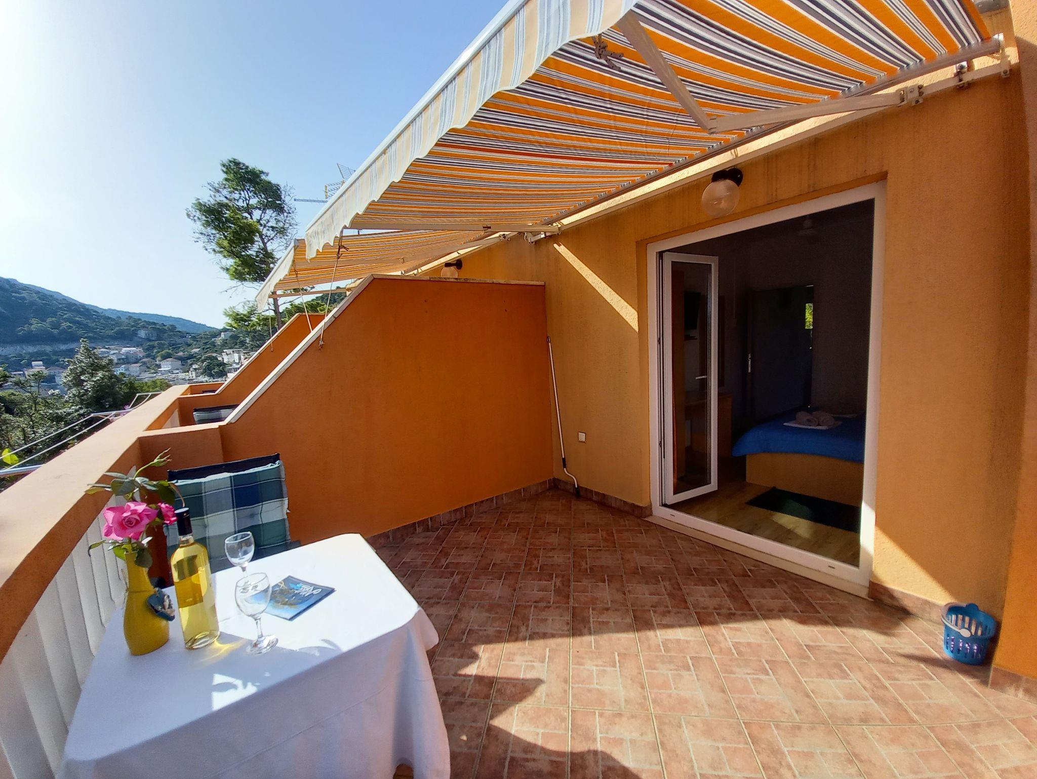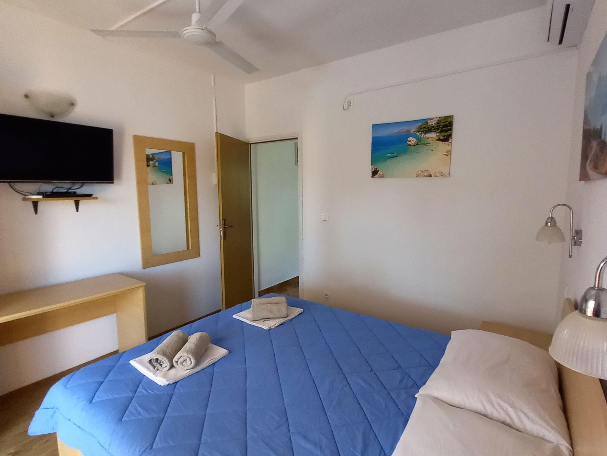 Ferienwohnung bietet Platz für 2 Gäste. Die Betten sind in Schlafzimmern, die es 1 gibt, innerhalb einer Gesamtfläche von 25m2, angeordnet. Die Gäste haben einen eigenen Balkon zur Verfügung, auf der sie in warmen Sommernächten genießen können. Das Apartment bietet Meerblick. Es ist erlaubt, Speisen auf dem Gemeinschafts-Grill vorzubereiten. Die reservierte Unterkunftseinheit verfügt über einen gemeinsame Terrasse. IM PREIS INBEGRIFFEN: Kurtaxe, Endreinigung, Klimatisierung, Internet, Wäschewaschen, Zusatzbett, Bügeleisen, Bügelbrett, Föhn. VERBINDLICHE ZUSÄTZLICHE KOSTEN: Aufzahlung für Kurzaufenthalte (prozentualer Zuschlag pro Nächtigungsanzahl: 30% - 1, 20% - 2, 10% - 3). Die Verfügbarkeit zusätzlicher Dienstleistungen in Ihrem reservierten Termin und die Preise derselben (falls nicht aufgeführt) müssen im Voraus überprüft werden. Zusätzliche Dienstleistungen die in der Zahlungsaufforderung nicht aufgeführt sind werden direkt beim Vermieter bezahlt, angenommen der Gast nutzt auch diese. Ermäßigung auf den Grundpreis: Gratistag 14=13 (bei einem Aufenthalt von 14 Tagen oder mehr erhalten Sie einen Gratistag für den Aufenthalt bis 31.12.26).