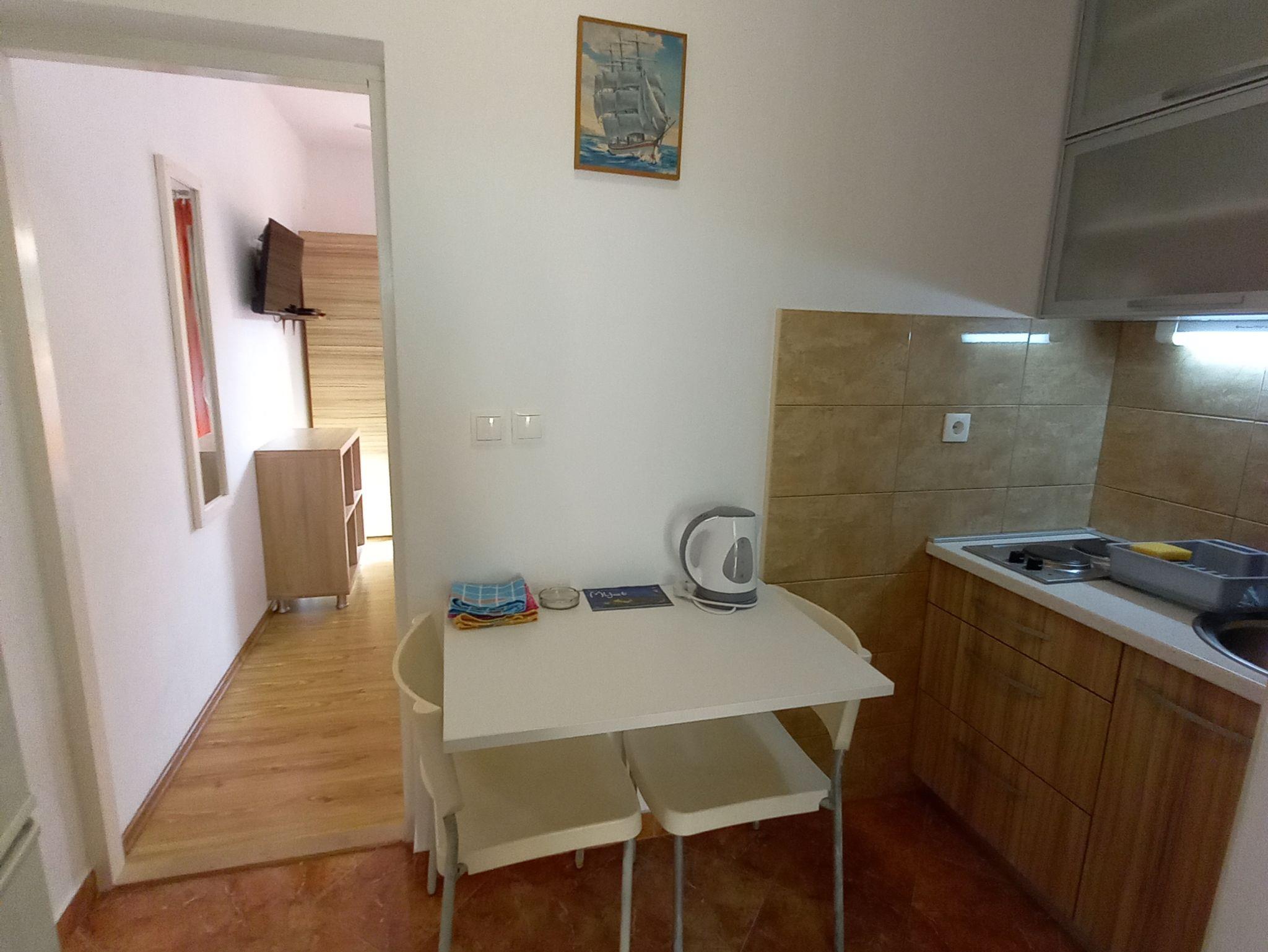 Studio bietet Platz für 2 Gäste. Die Betten sind in Schlafzimmern, die es 1 gibt, innerhalb einer Gesamtfläche von 25m2, angeordnet. Die Gäste haben einen eigenen Balkon zur Verfügung, auf der sie in warmen Sommernächten genießen können. Das Studio-Apartment bietet Meerblick. Es ist erlaubt, Speisen auf dem Gemeinschafts-Grill vorzubereiten. Die reservierte Unterkunftseinheit verfügt über einen gemeinsame Terrasse. IM PREIS INBEGRIFFEN: Kurtaxe, Endreinigung, Klimatisierung, Internet, Wäschewaschen, Bügeleisen, Bügelbrett, Föhn. VERBINDLICHE ZUSÄTZLICHE KOSTEN: Aufzahlung für Kurzaufenthalte (prozentualer Zuschlag pro Nächtigungsanzahl: 30% - 1, 20% - 2, 10% - 3). Die Verfügbarkeit zusätzlicher Dienstleistungen in Ihrem reservierten Termin und die Preise derselben (falls nicht aufgeführt) müssen im Voraus überprüft werden. Zusätzliche Dienstleistungen die in der Zahlungsaufforderung nicht aufgeführt sind werden direkt beim Vermieter bezahlt, angenommen der Gast nutzt auch diese. Ermäßigung auf den Grundpreis: Gratistag 14=13 (bei einem Aufenthalt von 14 Tagen oder mehr erhalten Sie einen Gratistag für den Aufenthalt bis 31.12.26).