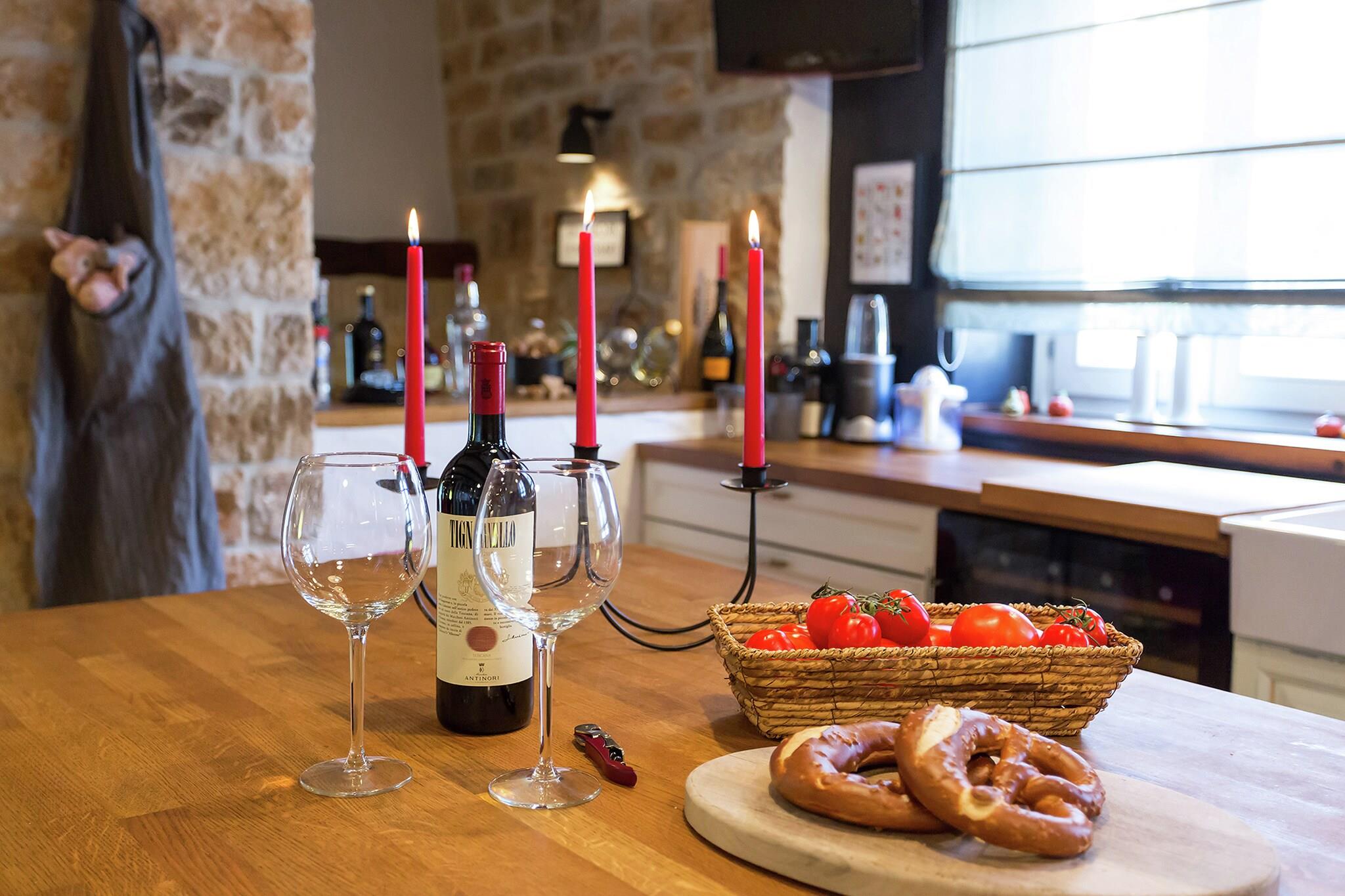 Denne rummelige villa ligger kun 12 km fra den pulserende kystby Porec og Adriaterhavet og tilbyder et luksuriøst og kæledyrsvenligt tilflugtssted for op til otte gæster. Den er perfekt designet til komfort og internetforbindelse og har gratis WiFi, en privat 8 x 4 m swimmingpool samt en smukt anlagt have med liggestole og grillplads, ideel til familier og grupper, der søger både afslapning og eventyr. Indenfor inviterer stueetagen dig til at slappe af i en varm stue udstyret med satellit-tv, aircondition og pejs. En stor spiseplads med plads til ti personer, mens det fuldt udstyrede åbne køkken inkluderer moderne apparater såsom espressomaskine, elkedel, brødrister, mikrobølgeovn, opvaskemaskine og et amerikansk køleskab med ismaskine. På første sal tilbyder to soveværelser med aircondition og private badeværelser fleksible sovemuligheder, det ene med en køjeseng og en enkelt sovesofa, det andet med en dobbeltseng og en enkelt sovesofa. Begge værelser åbner ud til altaner for en frisk start hver dag. Kælderen forbedrer oplevelsen med et ekstra soveværelse med eget badeværelse, en hyggelig stue med tv, dvd-afspiller og spillekonsol samt et boblebad til ekstra afslapning. Naturentusiaster kan udforske de naturskønne stier i Hill Country State Natural Area i nærheden, mens historieelskere vil sætte pris på de kuraterede udstillinger på Frontier Times Museum. Bistro Baderna tilbyder fyldige smagsoplevelser af italiensk og europæisk køkken. Uanset om du nyder naturen, kulturen eller komforten, leverer denne villa en rolig og uforglemmelig ferie. Poolhåndklæder kan købes / Poolhåndklæder med Experience-logo kan tages med (købspris) … 35,- EUR/stk. Brug af vin fra vinkælderen ifølge den tilgængelige prisliste. Det nævnes, at HO tilbyder mulighed for at oplade elbiler. Prisen er angivet under ekstra omkostninger på forespørgsel.