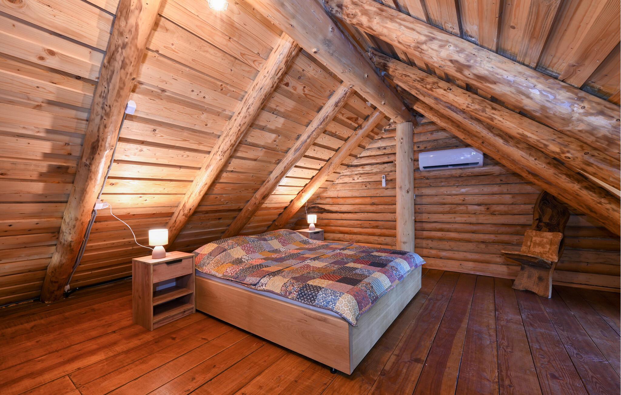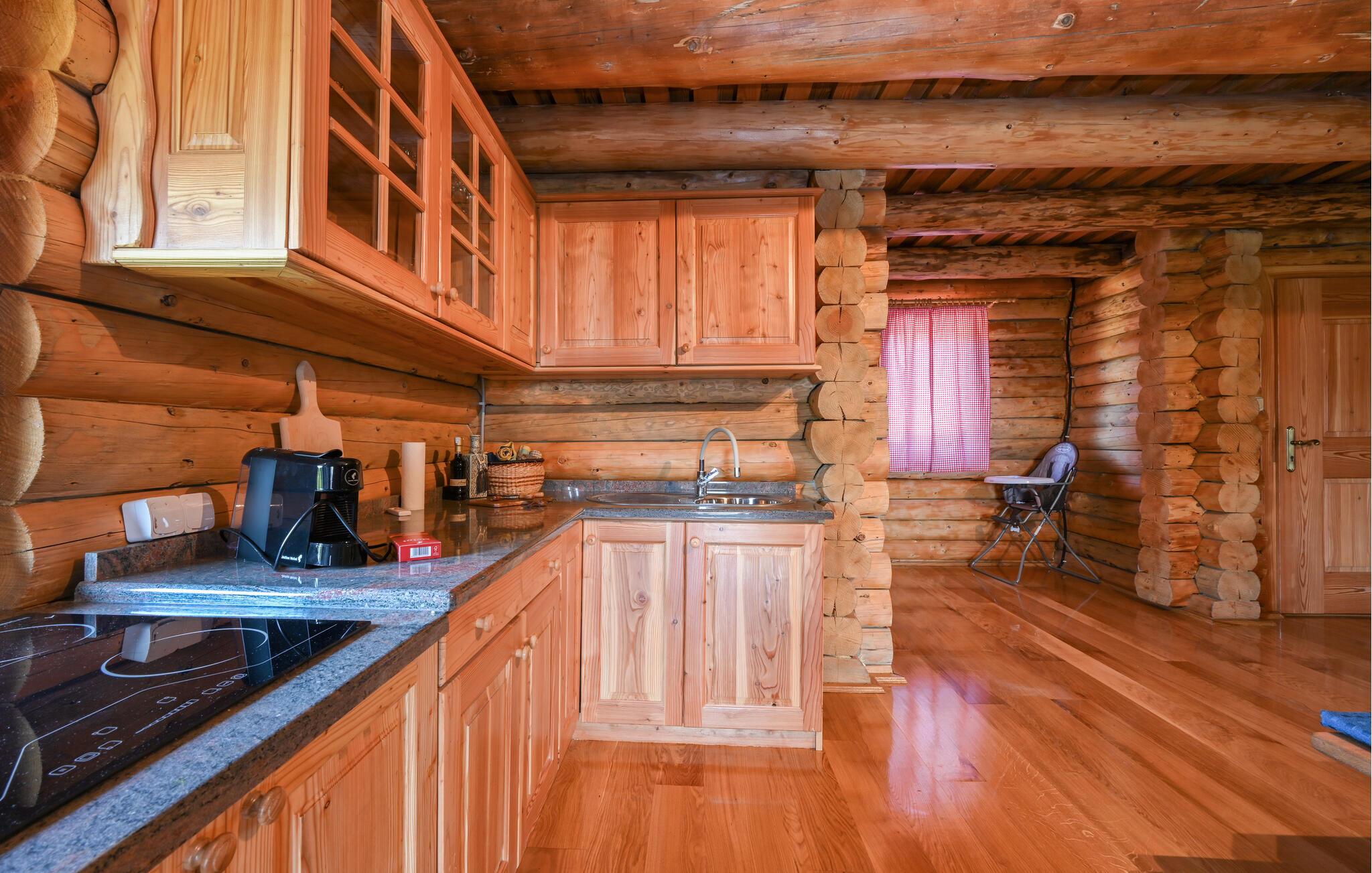 Nyd jeres ophold i dette meget rummelige træhus med sauna.