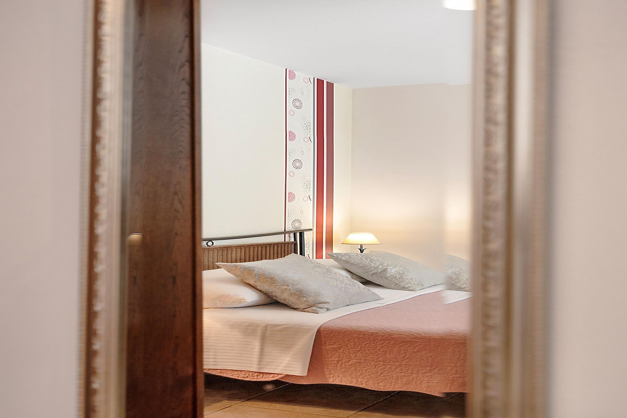 Gemt i den fredelige landsby Banjol på Rab Island er denne indbydende lejlighed perfekt til par, der søger en afslappende kystflugt. Det har en king-size seng, eget badeværelse og et fuldt udstyret køkken til nem tilberedning af måltider. En barneseng er tilgængelig efter anmodning, og der opkræves et slutrengøringsgebyr. Træd udenfor til en frodig have med en fælles jacuzzi og skyggefulde loungeområder, ideelle til at slappe af efter en stranddag. Gæsterne kan også nyde at grille på det udendørs grillområde. Der er gratis privat parkering på stedet. Kun 250 meter fra en sandstrand er lejligheden ideelt placeret for at udforske Rabs naturlige skønhed og historiske charme. Gå en tur gennem Old Town Rab, besøg ruinerne af St. Damians fæstning, eller nyd frisk fisk og skaldyr på nærliggende restauranter. Med aircondition, trådløs internetadgang og udendørs parkering tilbyder denne ikke-ryger, kæledyrsfri studio et roligt og behageligt ophold.