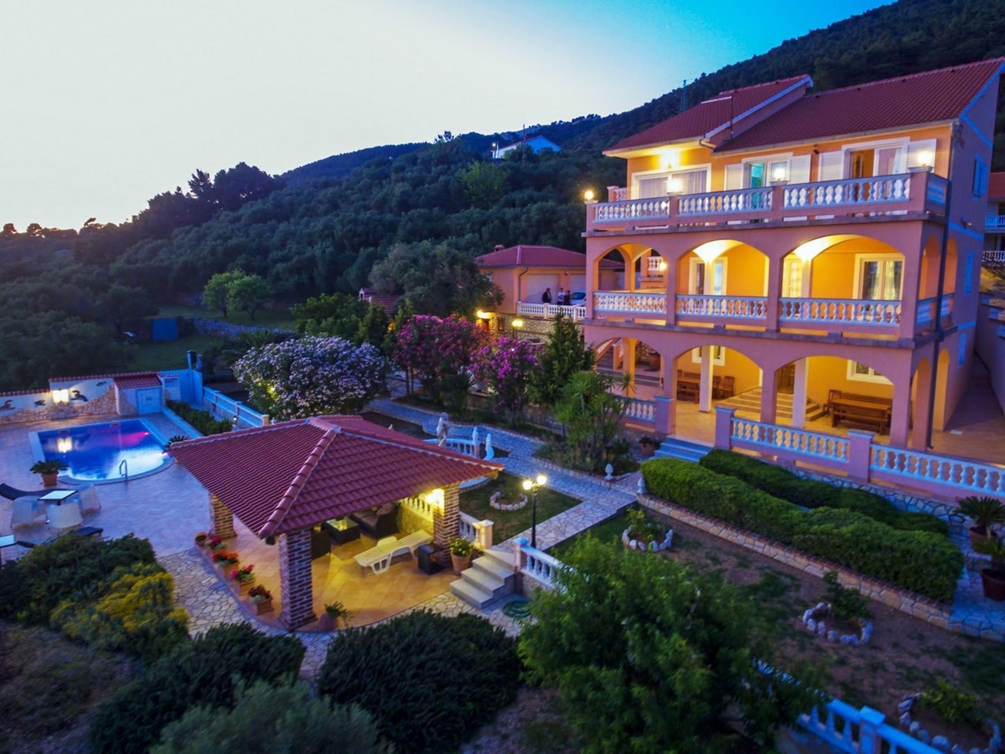 Umgebung des Objekts (Eingerichtet), Hof (1000m2, Kinderbereich, Sitzbereich), Parkplatz (Anzahl der Parkplätze: 4, Entfernung vom Objekt: im Hof), Pool: gemeinsam, Dimensionen: 8m x 4m x 1.5m, Wassertyp: Salzwasser, Grill: gemeinsam, Frühstück, WiFi Internet, Bootsanlegeplatz (Entfernung vom Objekt: 500 m, Bootsanlegeplatztyp: an der Küste), Föhn, Bügeleisen, Sonnenschirm, Liegestühle, Kinderbett