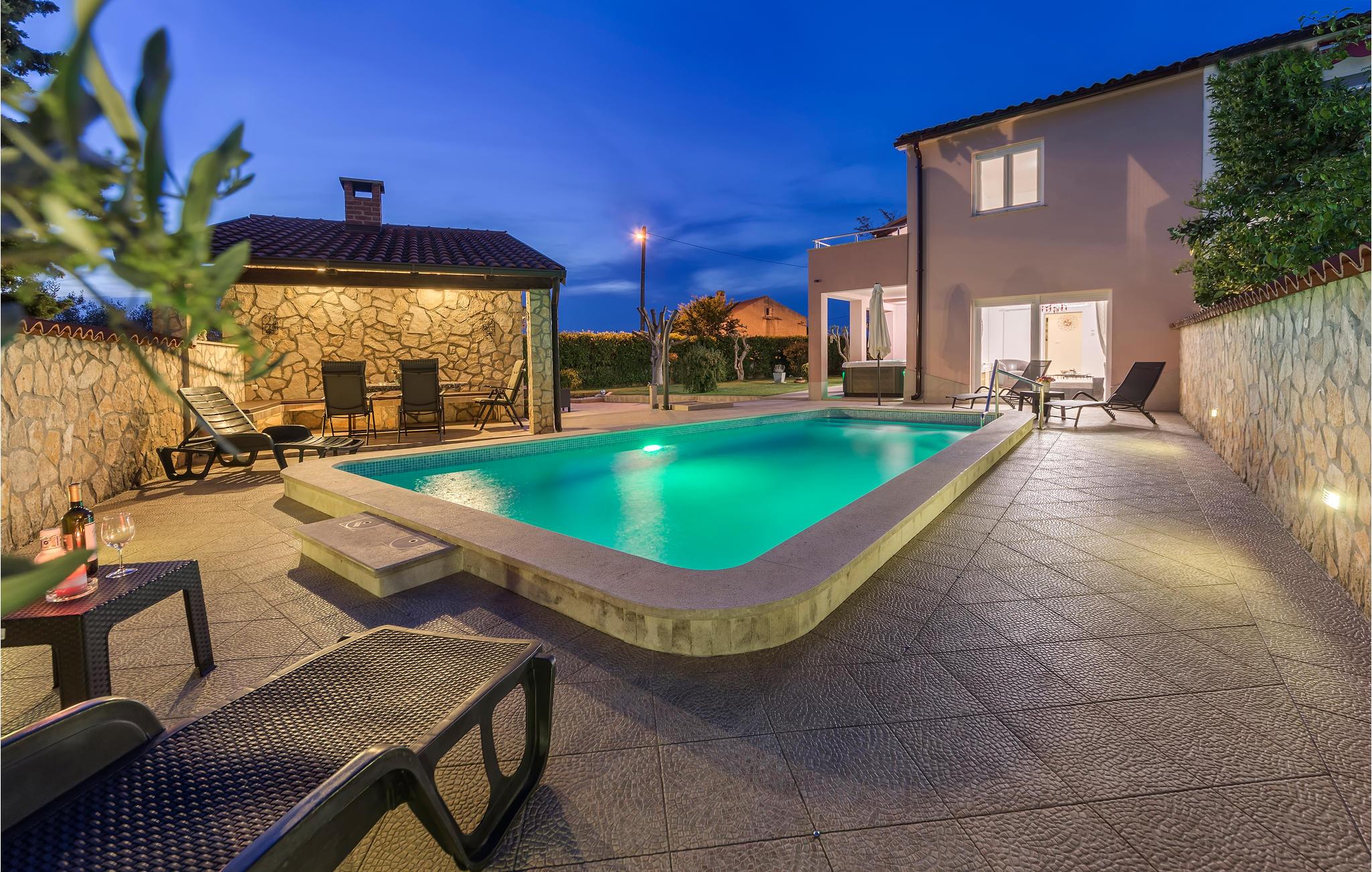 Dette vidunderlige sommerhus ligger i den lille by Banjole, i nærheden af Pula. Huset er blevet fuldstændigt renoveret i 2010. Dette sommerhus er hyggeligt og gennemført indrettet. Køkkenet er moderne og har alt i udstyr. I den smukke have er der en flot græsplæne og en masse blomster. Grunden er omgivet af en mur, som sikrer dig en uforstyrret ferie. I haven er også en swimmingpool, der er dejligt forfriskende på de varme sommerdage. I huset er der et dejligt fællesrum med pejs og et lille tekøkken. Nyd de hyggelige aftenmåltider, som I kan tilberede ved stengrillen i haven. Der er adskillige flotte bugter med grusstrande i byen Banjole, der også har en dykkerskole, så I har mulighed for at undersøge den undersøiske verden. Vi anbefaler at I besøger den spændende by Pula, der har mange seværdigheder fra den romerske tid. Pula ligger kun 7 km væk og er mest kendt for sit Amfiteater der er opført i romertiden og derfor er præget af den romerske arkitektur.
