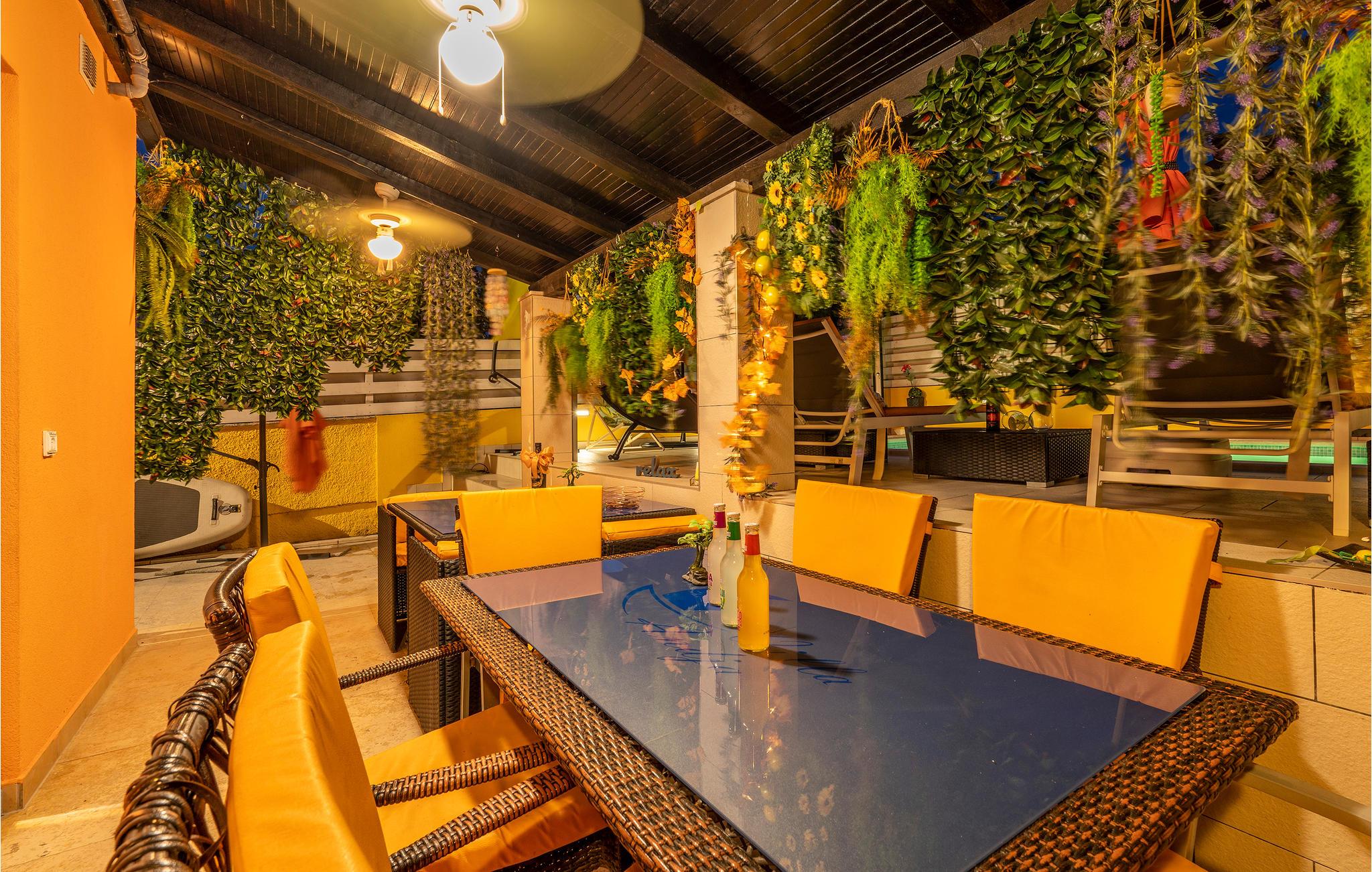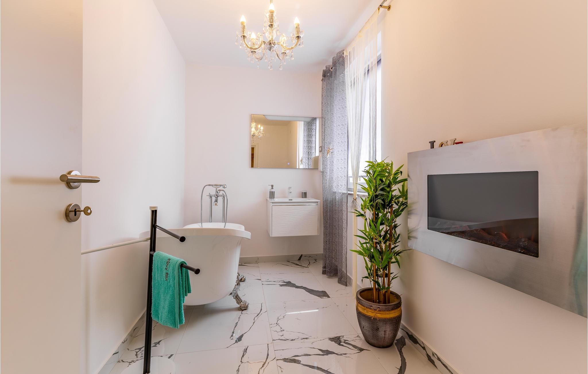 Dette feriehus med pool ligger i feriebyen Banjole. Det er indrettet med klare farver og kærlighed til de små detaljer og har en indbydende moderne atmosfære der garanterer en afslappet ferie. Huset har både indre og ydre trapper. I stueplan er der 2 soveværelser, hvoraf det ene ligger på en mellemetage ligesom førstesal med to soveværelser og badeværelser. I kan hoppe i poolen med dyser til vandmassage, lige når I har lyst, særligt på de hede sommerdage er den meget indbydende. Da poolen også kan opvarmes, er den ideel selv i lavsæsonerne. Besøg også naturparken Kap Kamenjak, hvor der er uberørt natur og skønne strande. På øverste etage er der skrå vægge der går ned til 90 cm i siden. I kan få kosmetiske behandliger hos husets ejer mod betaling.