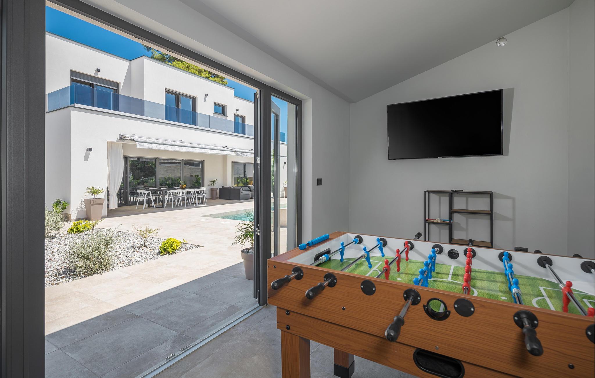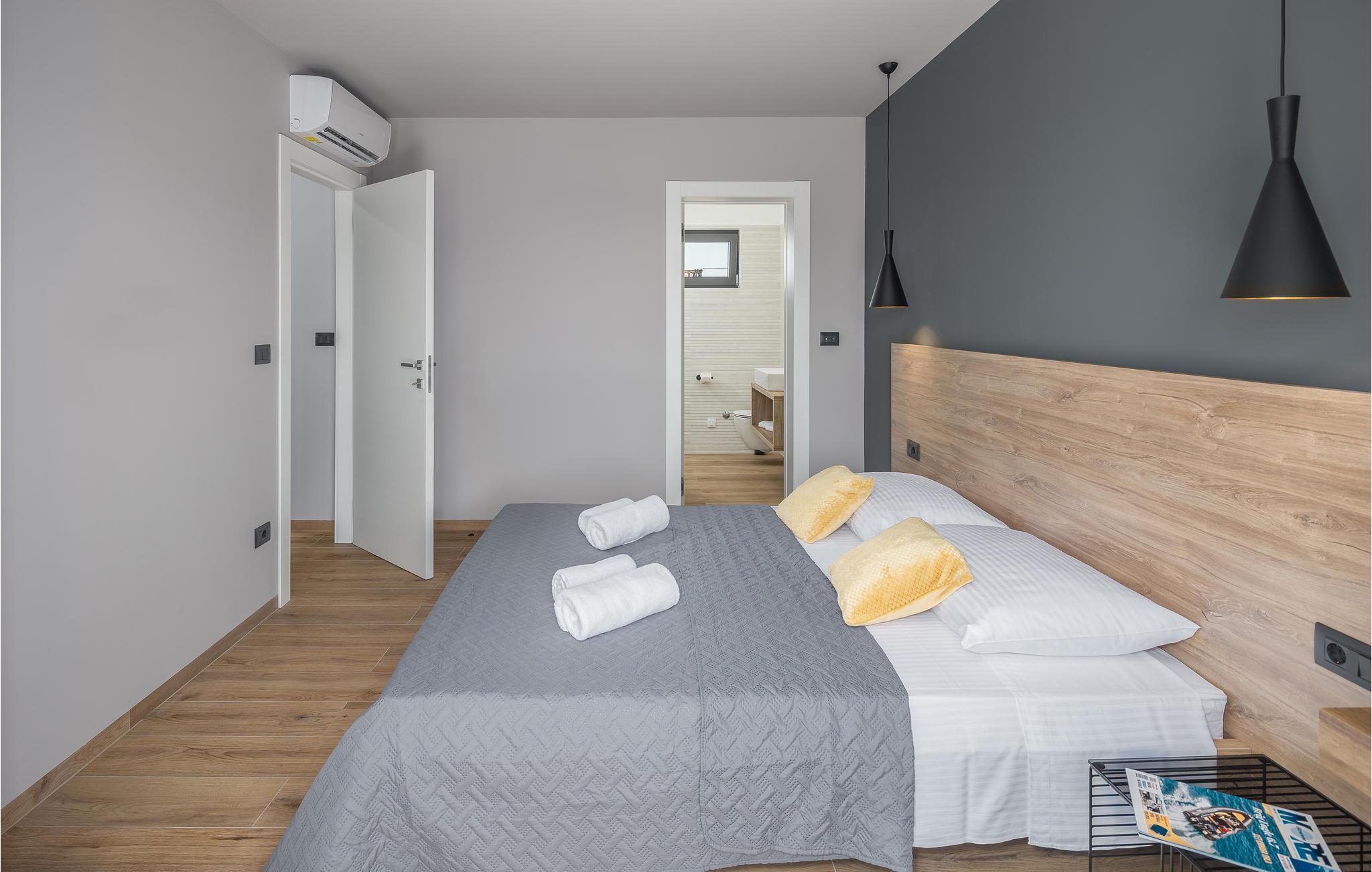 Huset ligger kun 450 m fra den børnevenlige stenstrand og er derfor et ideelt sted til en ferie med sol, strand og hav. Efter et par kilometer når I også den spændende by Pula, der byder på en lang række aktiviteter og seværdigheder.