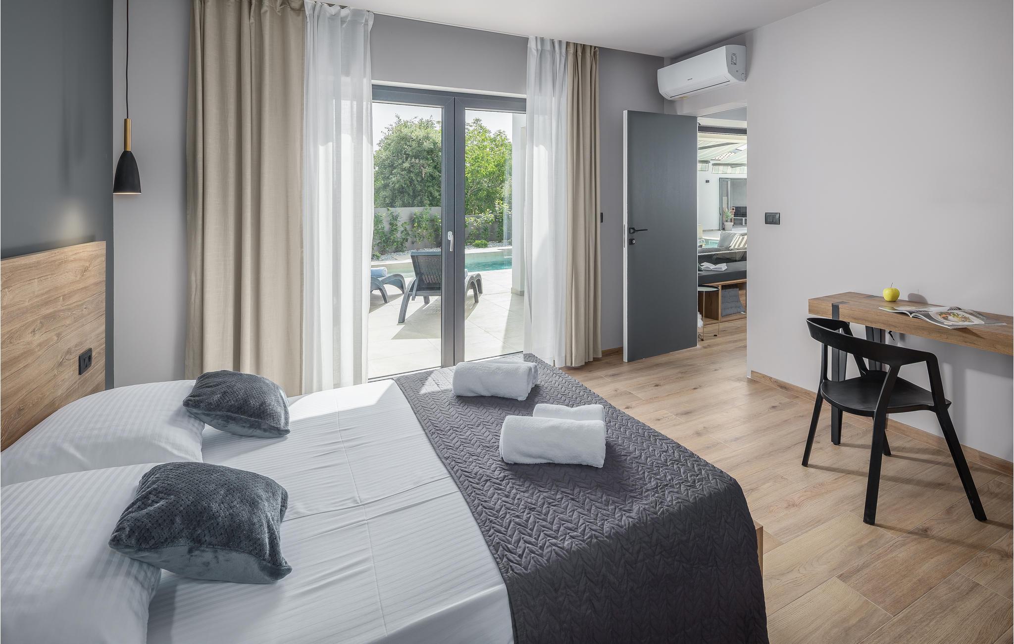 Et af husets højdepunkter er det smukke poolområde, hvor I kan køle ned på varme dage og slappe af i himmelsengen.