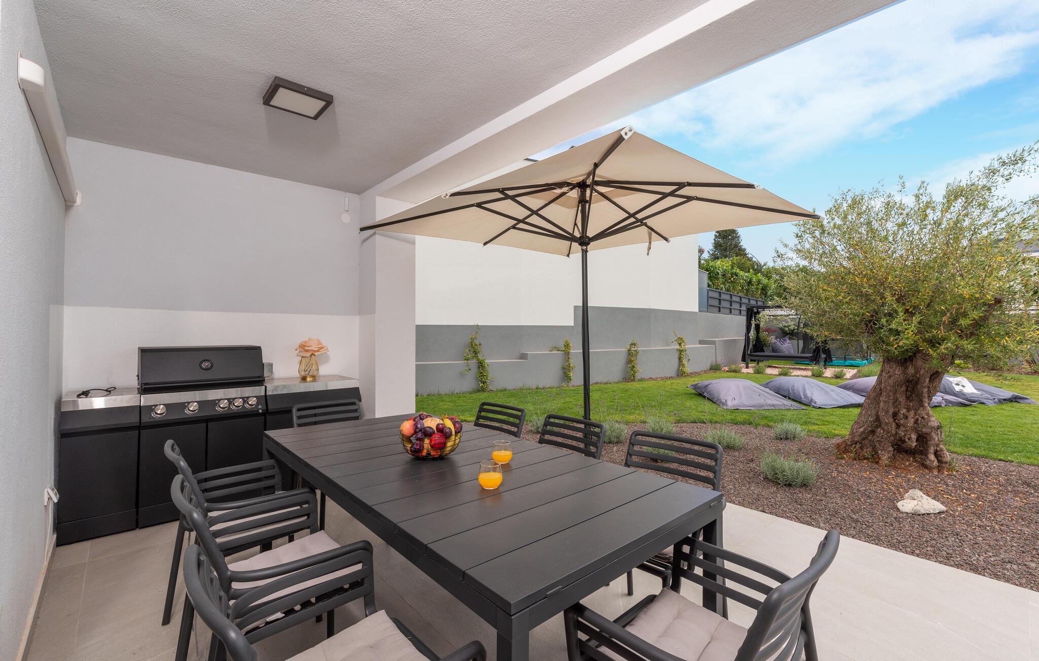 Huset byder jer velkommen i en fantastisk beliggenhed nær havet og skaber med moderne og stilfuldt møblerede værelser, der takker deres individuelle charme til slående farveaccenter, de ideelle rammer for en uforglemmelig ferie. Vågn op til udsigt over poolen gennem gulv-til-loft-vinduer. Uanset om I slapper af i komfortable sofaer og lænestole eller nyder måltider sammen ved det lange spisebord, har I plads til fælles aktiviteter og kan virkelig nyde jeres fritid.