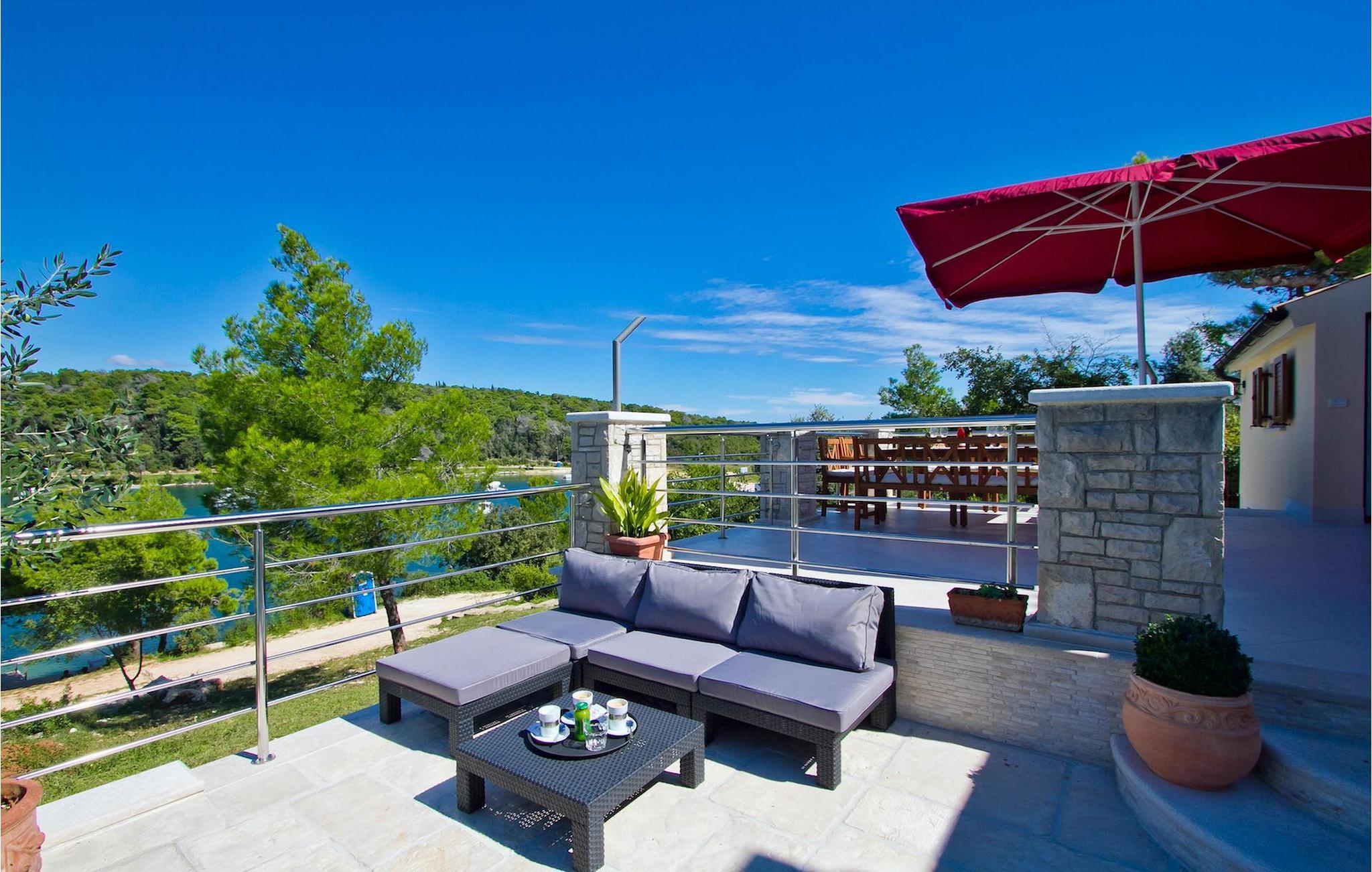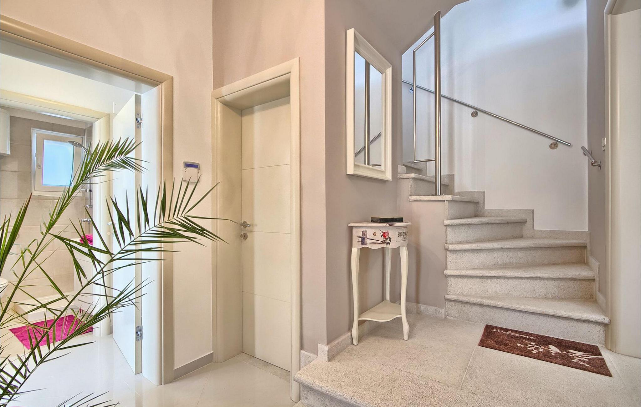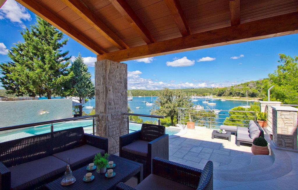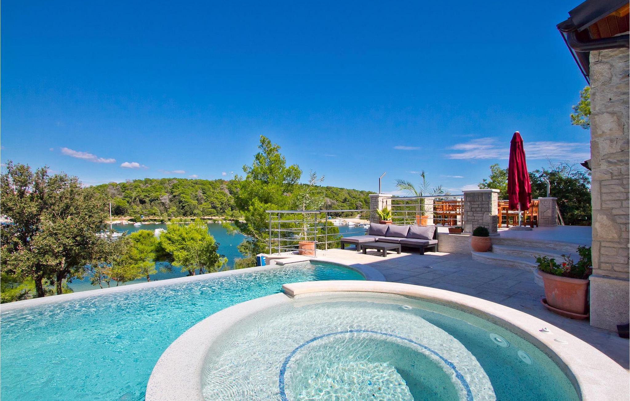 Den charmerende Villa Avemar i Banjole nær Pula er perfekt til en drømmeferie med familie og venner. Dens fem smagfuldt indrettede soveværelser fordelt på to etager kan rumme op til 8+1 gæster. Interiøret er lyst og luftigt, men stadig hyggeligt takket være træbjælkerne. Den smarte stue, spiseplads og fuldt udstyret køkken er forbundet. I stueetagen finder du to soveværelser med dobbeltsenge, et af dem med eget badeværelse. Her er også et ekstra badeværelse og et toilet. Den øverste etage rummer to soveværelser med dobbeltsenge med eget badeværelse og et enkelt soveværelse. Et af dobbeltværelserne på øverste etage har en privat terrasse med en fantastisk udsigt over bugten. Udendørsområdet er meget godt designet og rummeligt. På flere forskellige niveauer og separate terrasser kan du nyde dit privatliv eller tilbringe timer sammen med dine kære. Du vil være meget tilbageholdende med at forlade den vidunderlige pool på varme sommerdage, for her kan du slappe af med den fantastiske udsigt over Soline-bugten med dens yachter og fiskerbåde og en kølig drink i hånden! Vil du dog til stranden, er den kun 30 m væk. Hvis du kan lide gruppeaktiviteter, har du et bord til bordtennis og bordfodbold til din rådighed. Villa Avemar ligger direkte ved stranden. Havet er uden tvivl hovedattraktionen i dette hjørne af paradis. Den lille fiskerby Banjole ligger på en lille halvø med en naturligt beskyttet havn, det er det perfekte sted at nyde havet, sejle og for fiskeentusiaster. Her er ingen trafikpropper eller store hotelkomplekser, og stadig har du alt, hvad du skal bruge. Hvis du kan lide sport, kan du vælge mellem mange sportsaktiviteter. Istrien-halvøen er også hjemsted for en af de smukkeste nationalparker i denne del af Europa - Brijuni. Det kan nås med 10 min bådtur med afgang fra den hyggelige fiskerby Fazana, kun 15 kilometer væk fra villaen. Villa Avemar er den ideelle villa, hvis du leder efter en bolig, der er tæt nok på alle byens bekvemmeligheder, men som samtidig tilbyder et tilbagetog og al den komfort, du har brug for.