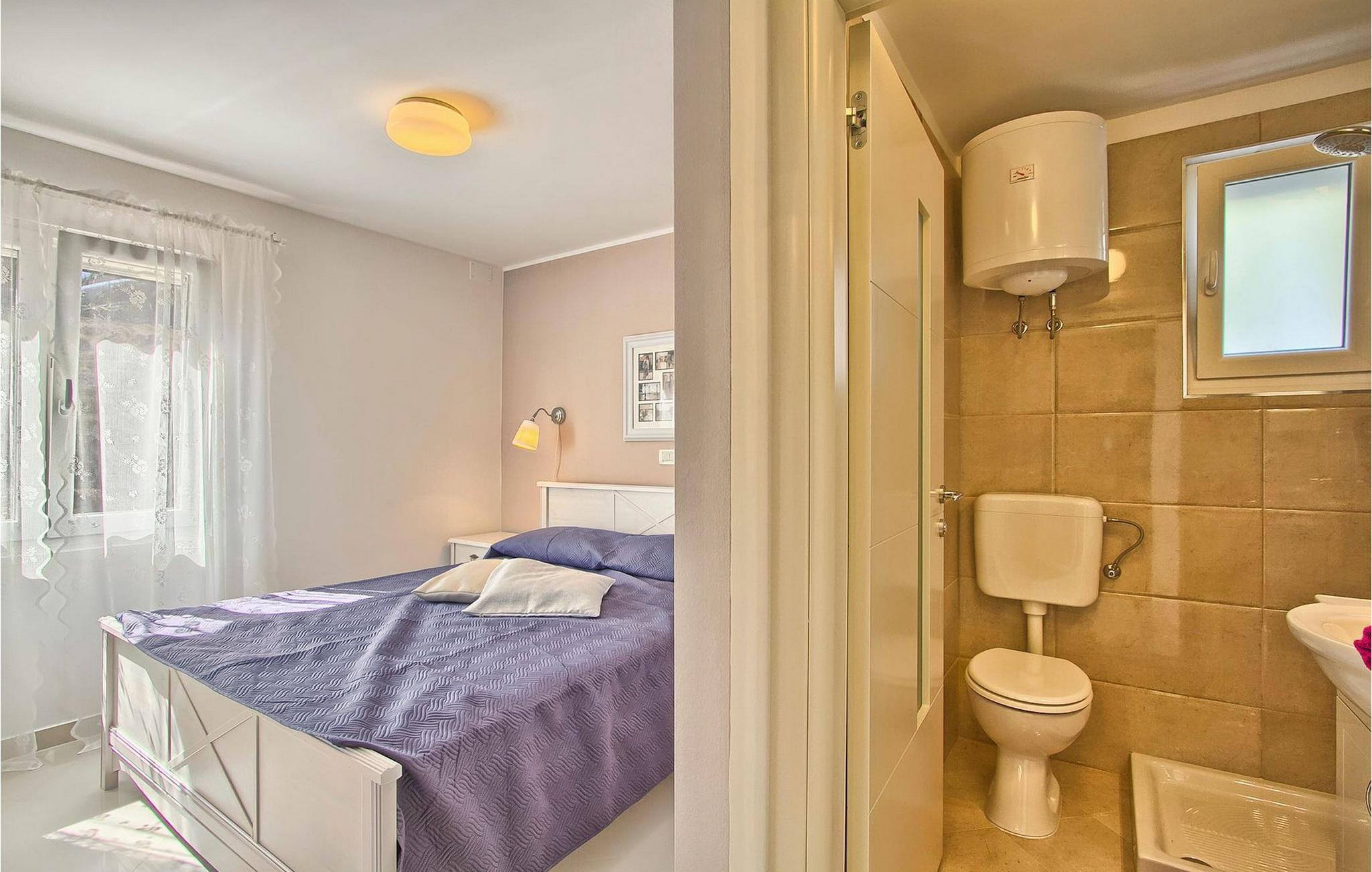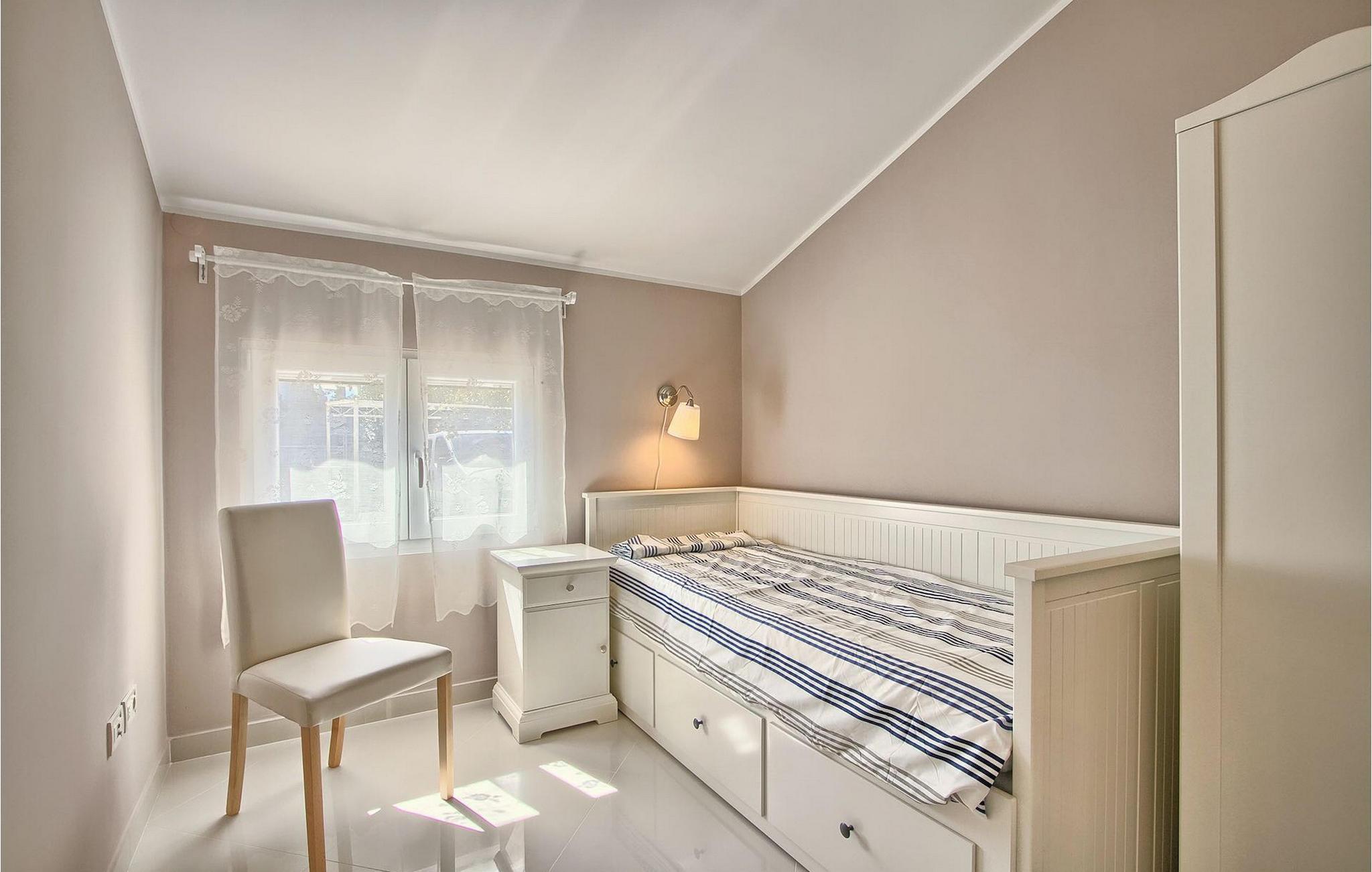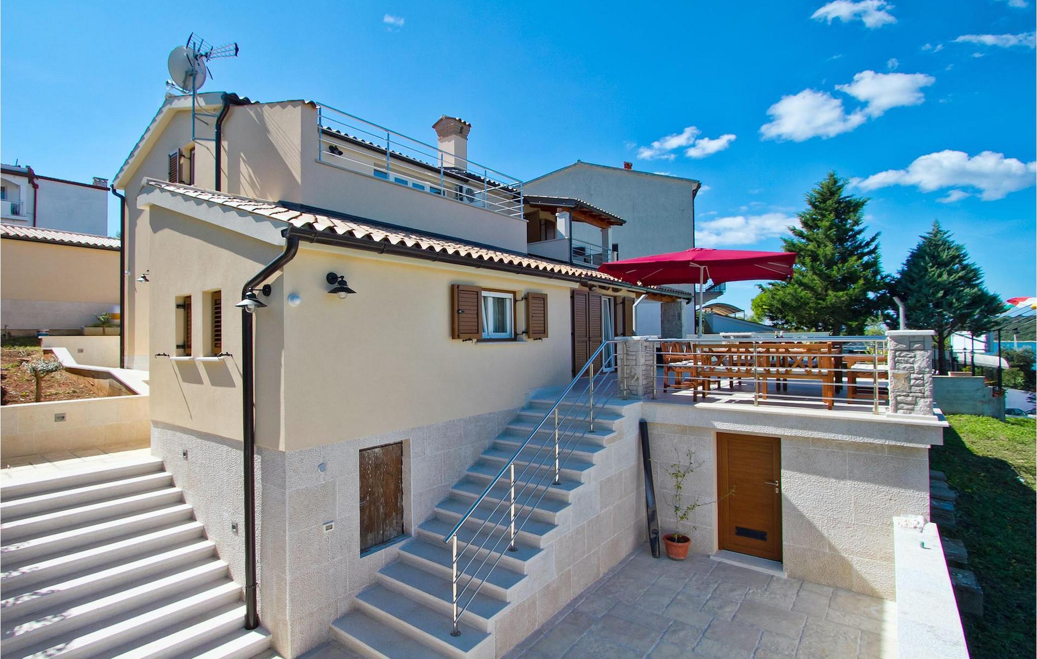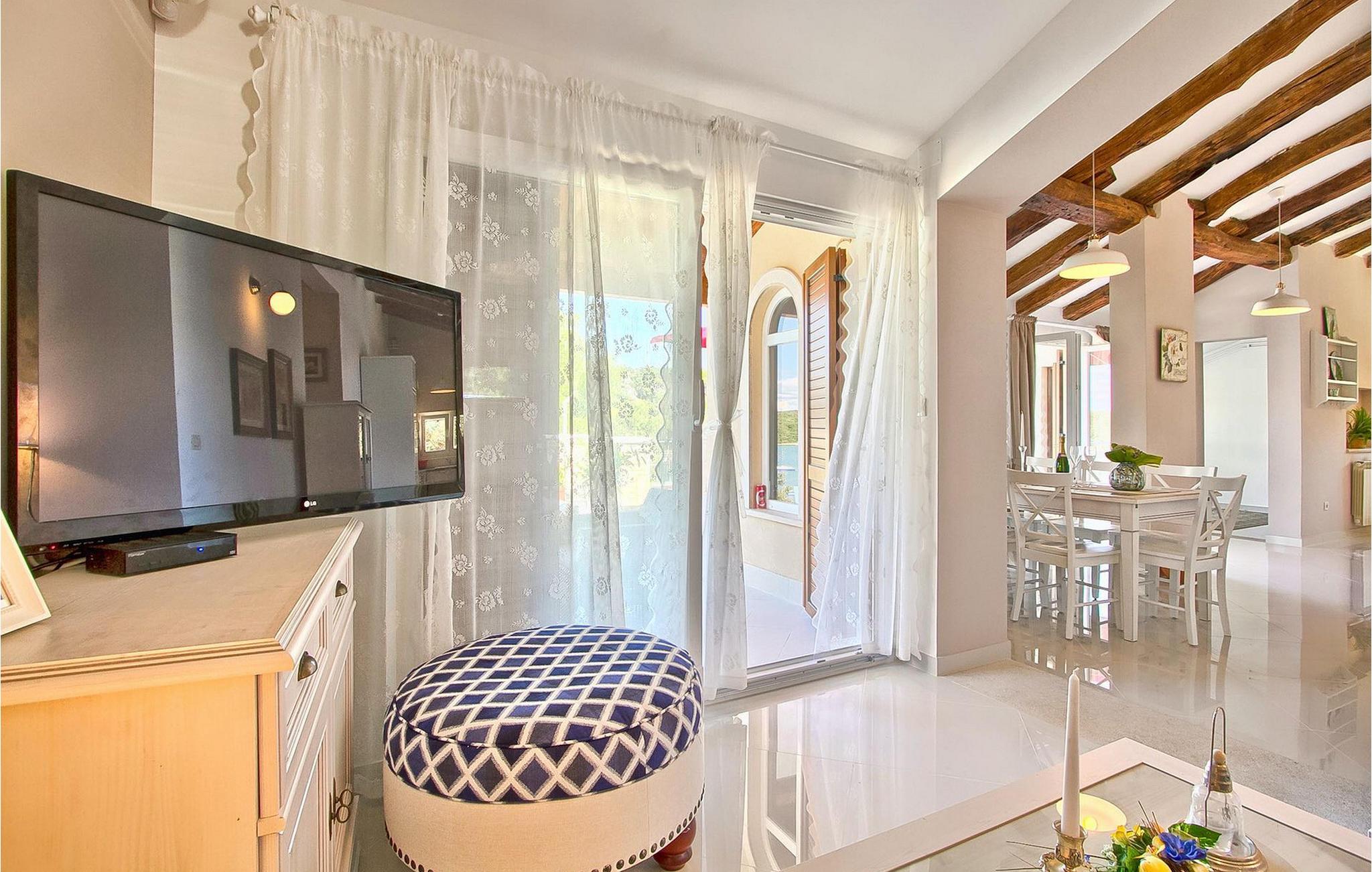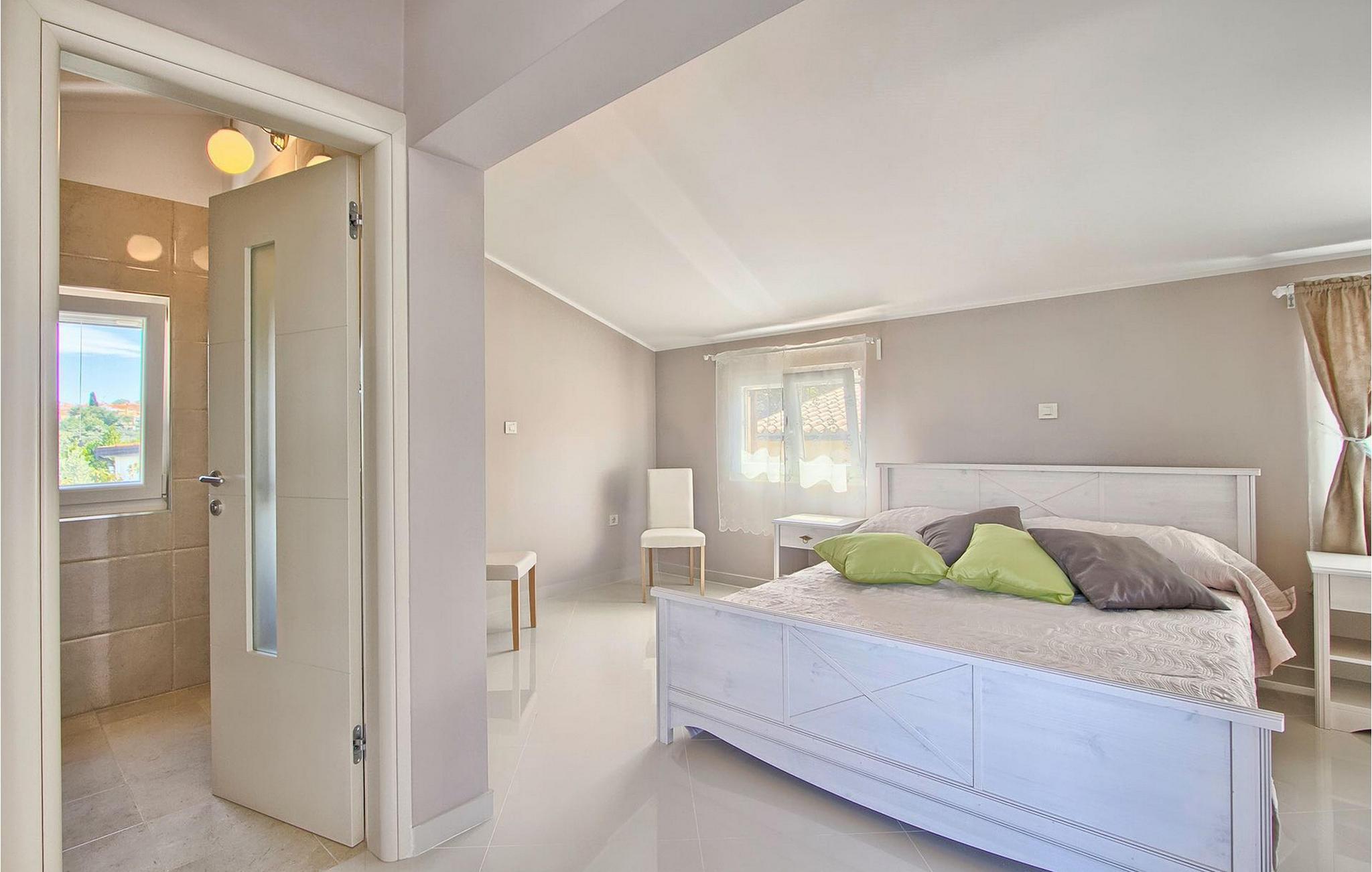 Den charmerende Villa Avemar i Banjole nær Pula er perfekt til en drømmeferie med familie og venner. Dens fem smagfuldt indrettede soveværelser fordelt på to etager kan rumme op til 8+1 gæster. Interiøret er lyst og luftigt, men stadig hyggeligt takket være træbjælkerne. Den smarte stue, spiseplads og fuldt udstyret køkken er forbundet. I stueetagen finder du to soveværelser med dobbeltsenge, et af dem med eget badeværelse. Her er også et ekstra badeværelse og et toilet. Den øverste etage rummer to soveværelser med dobbeltsenge med eget badeværelse og et enkelt soveværelse. Et af dobbeltværelserne på øverste etage har en privat terrasse med en fantastisk udsigt over bugten. Udendørsområdet er meget godt designet og rummeligt. På flere forskellige niveauer og separate terrasser kan du nyde dit privatliv eller tilbringe timer sammen med dine kære. Du vil være meget tilbageholdende med at forlade den vidunderlige pool på varme sommerdage, for her kan du slappe af med den fantastiske udsigt over Soline-bugten med dens yachter og fiskerbåde og en kølig drink i hånden! Vil du dog til stranden, er den kun 30 m væk. Hvis du kan lide gruppeaktiviteter, har du et bord til bordtennis og bordfodbold til din rådighed. Villa Avemar ligger direkte ved stranden. Havet er uden tvivl hovedattraktionen i dette hjørne af paradis. Den lille fiskerby Banjole ligger på en lille halvø med en naturligt beskyttet havn, det er det perfekte sted at nyde havet, sejle og for fiskeentusiaster. Her er ingen trafikpropper eller store hotelkomplekser, og stadig har du alt, hvad du skal bruge. Hvis du kan lide sport, kan du vælge mellem mange sportsaktiviteter. Istrien-halvøen er også hjemsted for en af de smukkeste nationalparker i denne del af Europa - Brijuni. Det kan nås med 10 min bådtur med afgang fra den hyggelige fiskerby Fazana, kun 15 kilometer væk fra villaen. Villa Avemar er den ideelle villa, hvis du leder efter en bolig, der er tæt nok på alle byens bekvemmeligheder, men som samtidig tilbyder et tilbagetog og al den komfort, du har brug for.