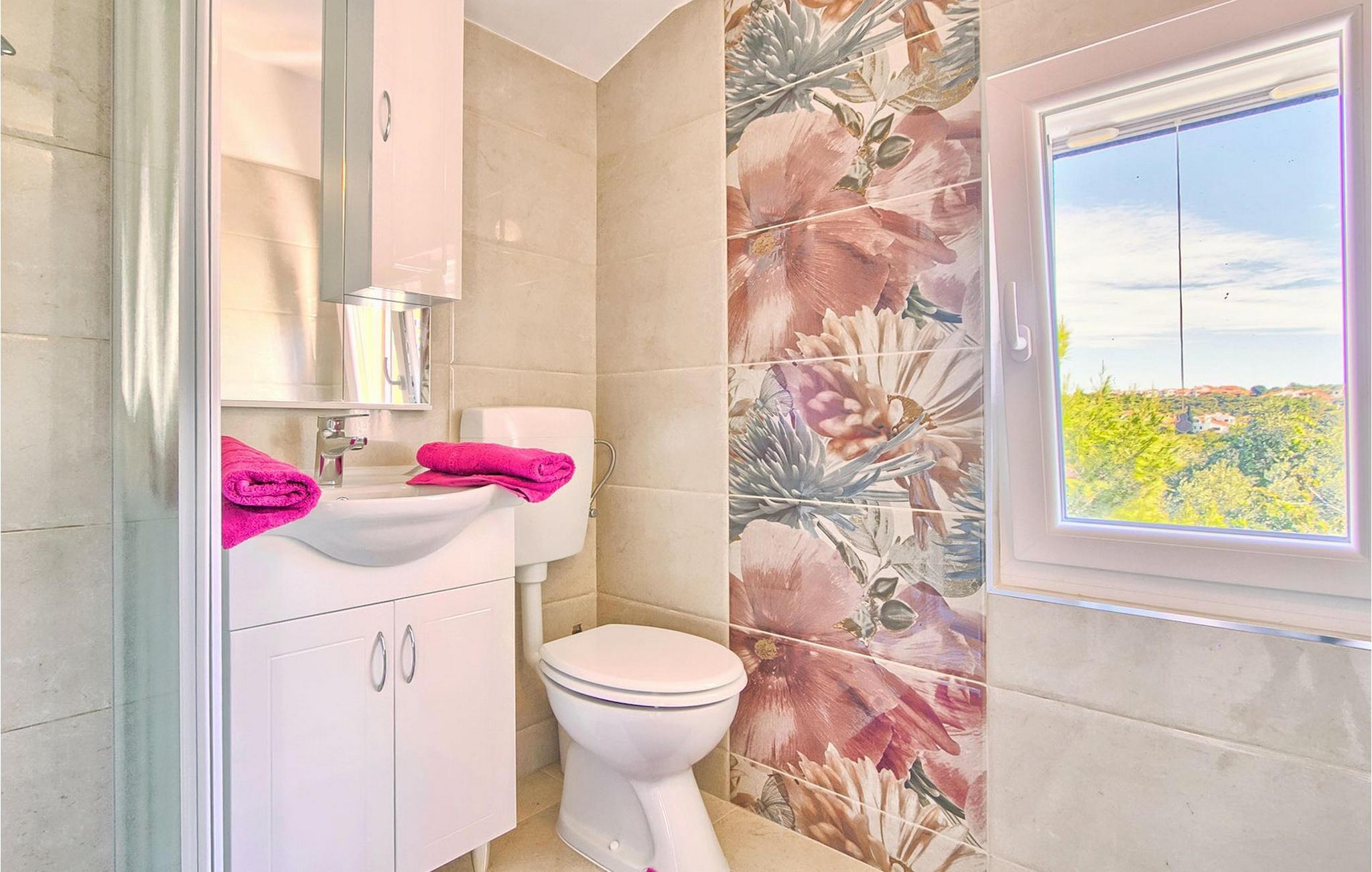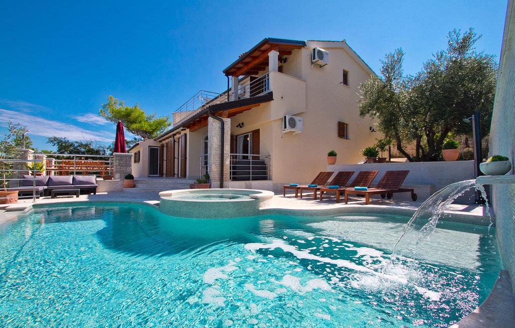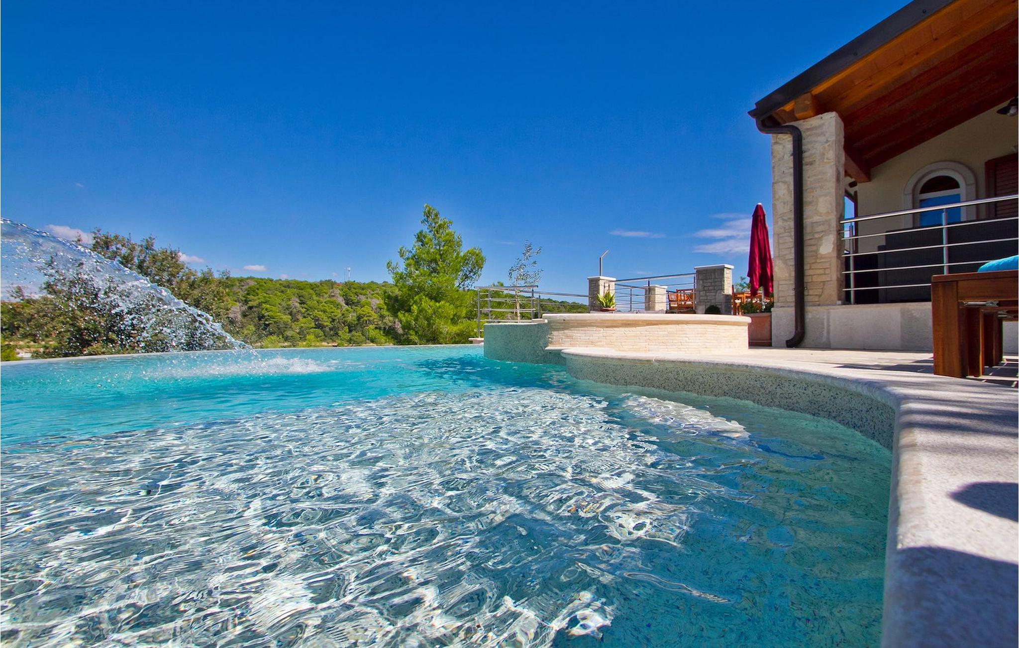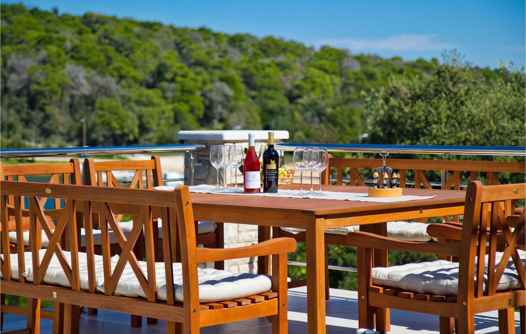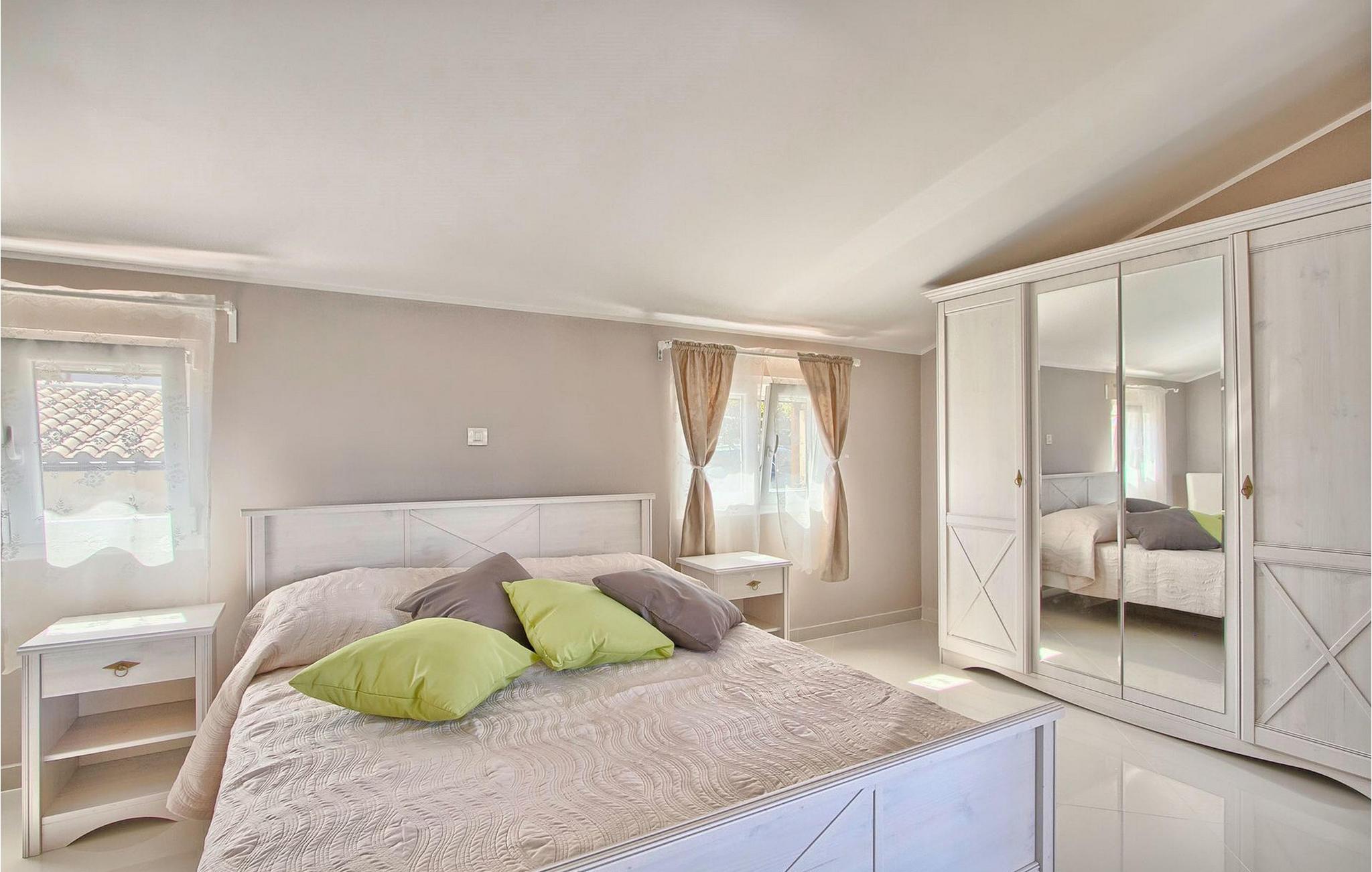 Den charmerende Villa Avemar i Banjole nær Pula er perfekt til en drømmeferie med familie og venner. Dens fem smagfuldt indrettede soveværelser fordelt på to etager kan rumme op til 8+1 gæster. Interiøret er lyst og luftigt, men stadig hyggeligt takket være træbjælkerne. Den smarte stue, spiseplads og fuldt udstyret køkken er forbundet. I stueetagen finder du to soveværelser med dobbeltsenge, et af dem med eget badeværelse. Her er også et ekstra badeværelse og et toilet. Den øverste etage rummer to soveværelser med dobbeltsenge med eget badeværelse og et enkelt soveværelse. Et af dobbeltværelserne på øverste etage har en privat terrasse med en fantastisk udsigt over bugten. Udendørsområdet er meget godt designet og rummeligt. På flere forskellige niveauer og separate terrasser kan du nyde dit privatliv eller tilbringe timer sammen med dine kære. Du vil være meget tilbageholdende med at forlade den vidunderlige pool på varme sommerdage, for her kan du slappe af med den fantastiske udsigt over Soline-bugten med dens yachter og fiskerbåde og en kølig drink i hånden! Vil du dog til stranden, er den kun 30 m væk. Hvis du kan lide gruppeaktiviteter, har du et bord til bordtennis og bordfodbold til din rådighed. Villa Avemar ligger direkte ved stranden. Havet er uden tvivl hovedattraktionen i dette hjørne af paradis. Den lille fiskerby Banjole ligger på en lille halvø med en naturligt beskyttet havn, det er det perfekte sted at nyde havet, sejle og for fiskeentusiaster. Her er ingen trafikpropper eller store hotelkomplekser, og stadig har du alt, hvad du skal bruge. Hvis du kan lide sport, kan du vælge mellem mange sportsaktiviteter. Istrien-halvøen er også hjemsted for en af de smukkeste nationalparker i denne del af Europa - Brijuni. Det kan nås med 10 min bådtur med afgang fra den hyggelige fiskerby Fazana, kun 15 kilometer væk fra villaen. Villa Avemar er den ideelle villa, hvis du leder efter en bolig, der er tæt nok på alle byens bekvemmeligheder, men som samtidig tilbyder et tilbagetog og al den komfort, du har brug for.