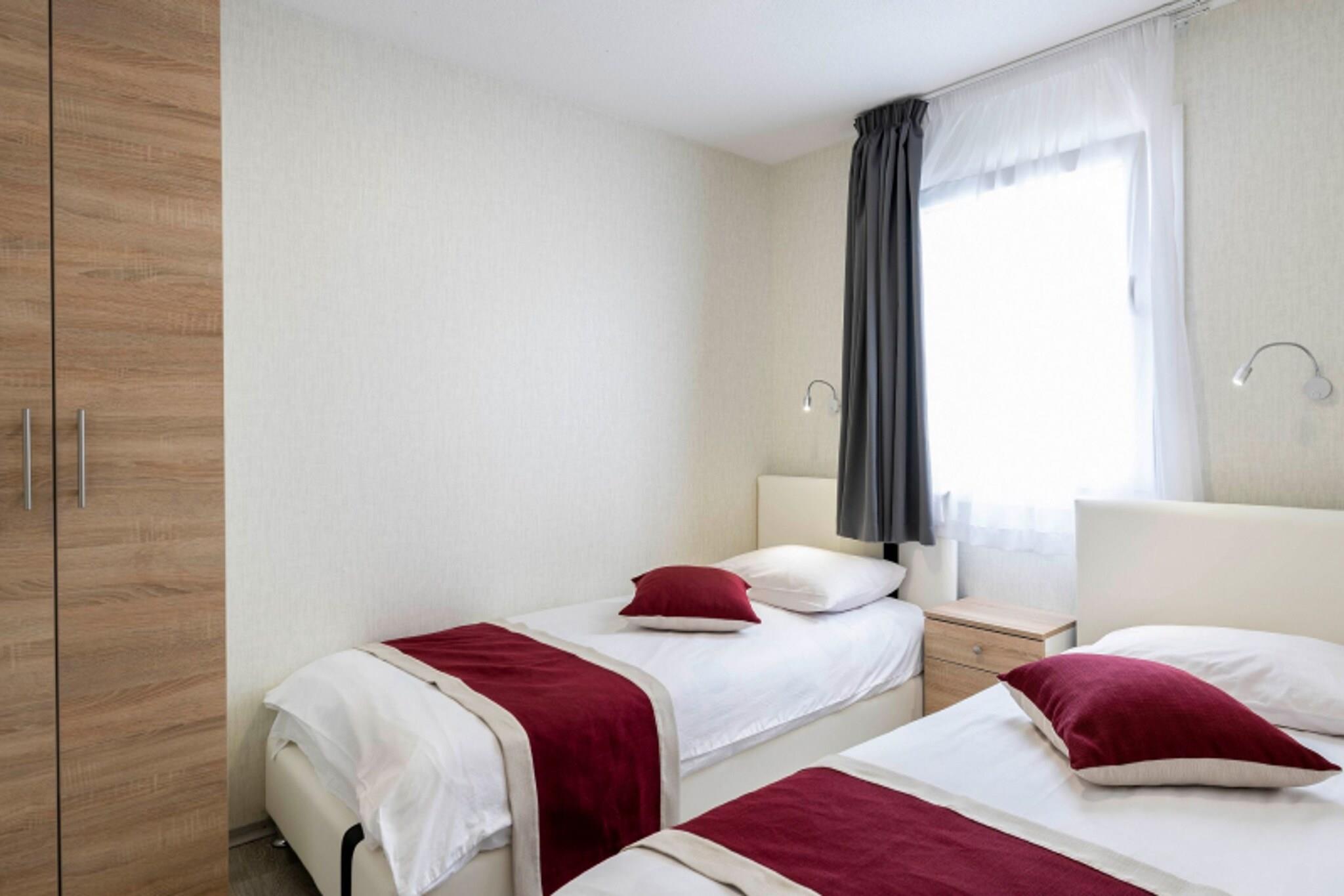 Dette kæledyrsvenlige mobilehome til seks gæster tilbyder en afslappende ferie kun 1 km fra stranden og tilbyder en perfekt blanding af komfort og bekvemmelighed. Beliggende i Banjole, 2 km fra Pula, en pulserende by rig på historie og kultur. Med gratis WiFi, en fælles swimmingpool og forskellige udendørs faciliteter kan gæsterne nyde både fritid og eventyr. Indenfor har huset et veludstyret køkken med elkedel, kogende vandhane, kaffemaskine, mikrobølgeovn, opvaskemaskine og køleskab, hvilket sikrer et problemfrit ophold. Den hyggelige stue/soveværelse har en dobbelt sovesofa og et tv, mens de separate soveværelser tilbyder en kingsize-seng og køjesenge eller to enkeltsenge til afslappende nætter. Gæsterne kan slappe af på terrassen, nyde udendørs spisning med grill eller benytte sig af faciliteter som trampolin, tennisbane, fodboldmål, legeredskaber og liggestole. I nærheden er Beach Centinera et must-visit for sit krystalklare vand og den naturskønne kystlinje. Udforsk Pulas romerske amfiteater, et af Kroatiens mest ikoniske vartegn. Batelina er kendt for sine fisk og skaldyr, mens Konoba Volme tilbyder autentiske kroatiske smagsoplevelser. Uanset om du søger afslapning eller udforskning, er dette kystnære tilflugtssted det perfekte sted at slappe af.