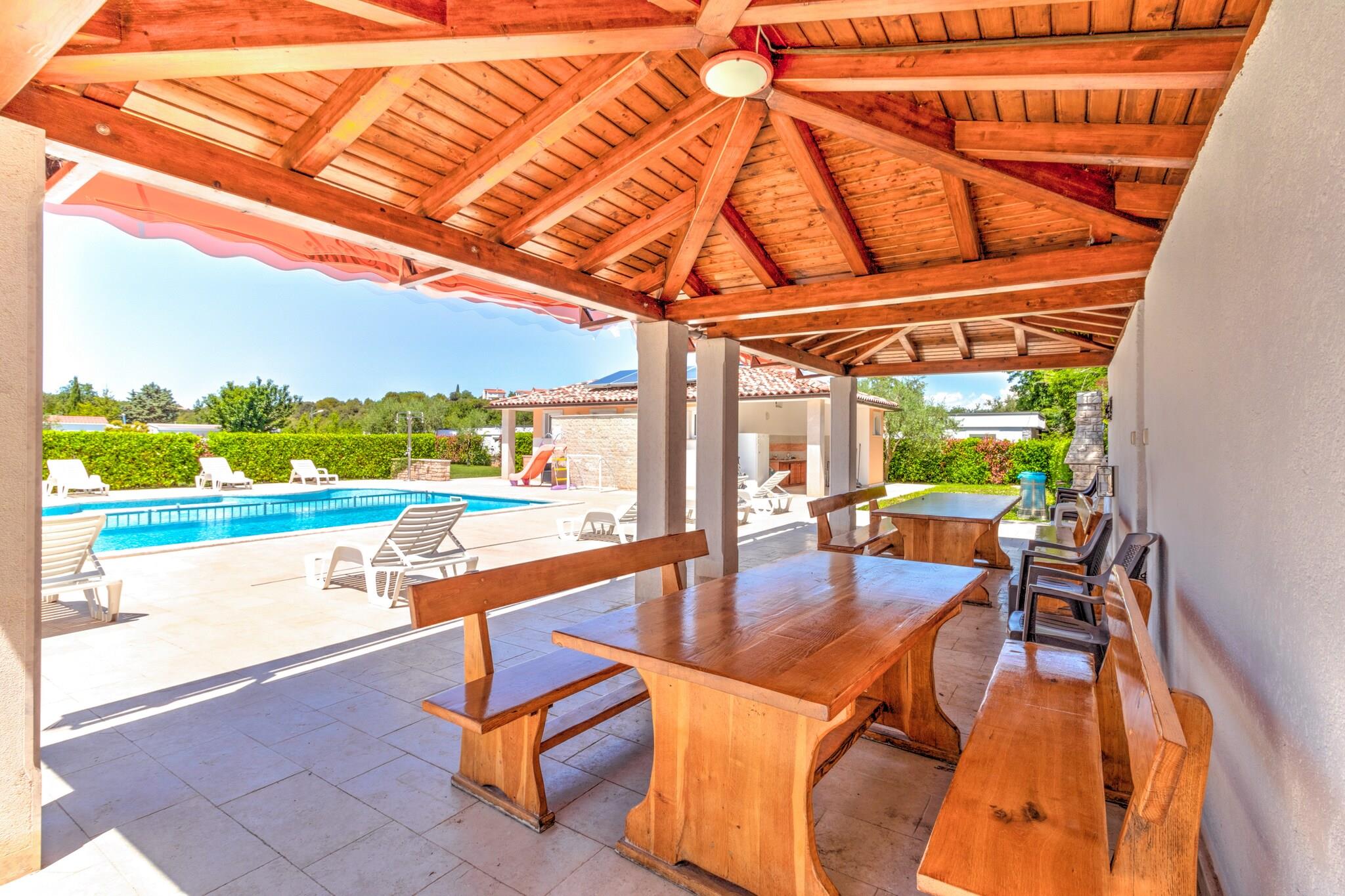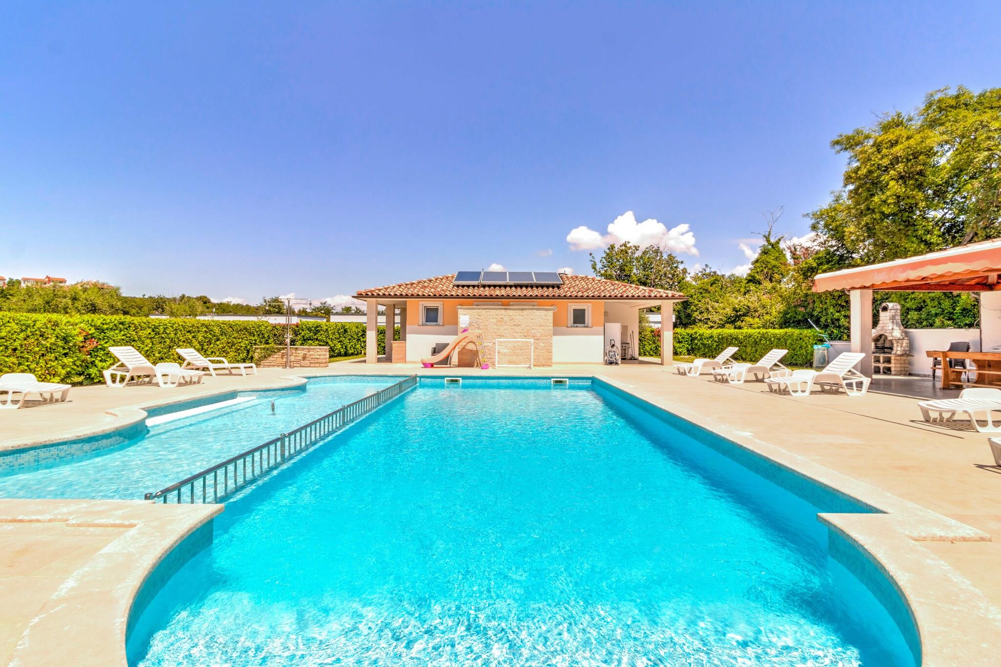 Dette mobilehome til fire gæster tilbyder en afslappende og kæledyrsvenlig ferie i Banjole, kun 1 km fra stranden og 2 km fra Pulas pulserende centrum. Beliggende i fredelige omgivelser, giver det nem adgang til lokale attraktioner, restauranter og udendørsaktiviteter. Gæsterne kan nyde gratis WiFi, en fælles swimmingpool og en række fritidsfaciliteter, hvilket gør det til et ideelt tilflugtssted for familier og venner. Indenfor har huset en rummelig opholds- og soveværelse med en dobbeltseng, tv og aircondition, et veludstyret tekøkken med elkedel, kogende vandhane, kaffemaskine, mikrobølgeovn, opvaskemaskine og køleskab samt et soveværelse med køjesenge eller to enkeltsenge. Soveværelset har en kingsize-seng og et eget badeværelse med badekar eller bruser, håndvask og toilet, mens et ekstra badeværelse tilbyder ekstra bekvemmelighed. Udenfor kan gæsterne slappe af på terrassen med havemøbler, liggestole og grill eller nyde trampolinen, tennisbanen, fodboldmålet og legeredskaberne. I nærheden ligger Augustus-templet med en fantastisk romersk arkitektur, mens Brijuni-øerne byder på betagende natur og historiske steder. Udforsk Sergii-buen, en velbevaret romersk triumfbue. Til spisning serverer Nina Pizzeria lækre italienske retter, mens Konoba Sidro tilbyder frisk fisk og skaldyr. Uanset om du udforsker historien eller nyder lokale smagsoplevelser, er dette mobilehome det perfekte tilflugtssted ved kysten.