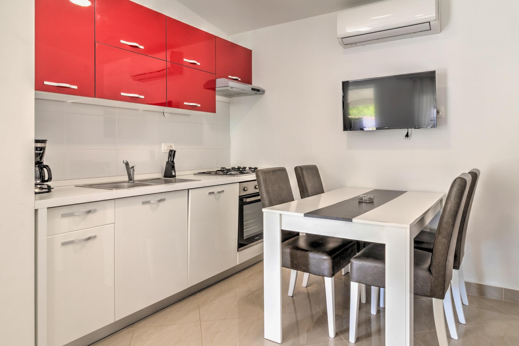 Beliggende i den charmerende kystby Banjole tilbyder dette kæledyrsvenlige feriehus til seks gæster en perfekt blanding af afslapning og eventyr. Kun 1 km fra stranden og 2 km fra Pula giver det nem adgang til fantastiske kystlandskaber, historiske steder og levende lokal kultur. Uanset om du slapper af på den solbeskinnede terrasse, nyder udendørsaktiviteter eller udforsker nærliggende attraktioner, sikrer dette tilflugtssted et mindeværdigt ophold med gratis WiFi og moderne bekvemmeligheder. Indenfor har hjemmet en rummelig stue og soveværelse med en dobbelt sovesofa, tv og aircondition, et veludstyret køkken med elkedel, kogende vandhane, kaffemaskine, ovn, mikrobølgeovn, opvaskemaskine og køleskab samt et soveværelse med køjesenge eller to enkeltsenge. Soveværelset har en kingsize-seng og et eget badeværelse med badekar eller bruser og toilet, suppleret af et ekstra badeværelse for nemheds skyld. Udendørs kan gæsterne slappe af på terrassen med havemøbler, liggestole og en grill, eller nyde trampolinen, tennisbanen, fodboldmålet og legeredskaberne. I nærheden fremviser Augustus-templet udsøgt romersk arkitektur, mens Brijuni-øerne byder på betagende natur og historiske skatte. Gå en tur gennem Sergii-buen, en storslået triumfbue fra oldtiden. For at spise kan du forkæle dig selv med noget på Nina Pizzeria, der er kendt for sine italienske smagsoplevelser, eller nyde frisk fisk og skaldyr på Konoba Sidro. Uanset om du udforsker... Historie eller afslapning ved kysten, er dette feriehus det ultimative tilflugtssted ved Adriaterhavet.