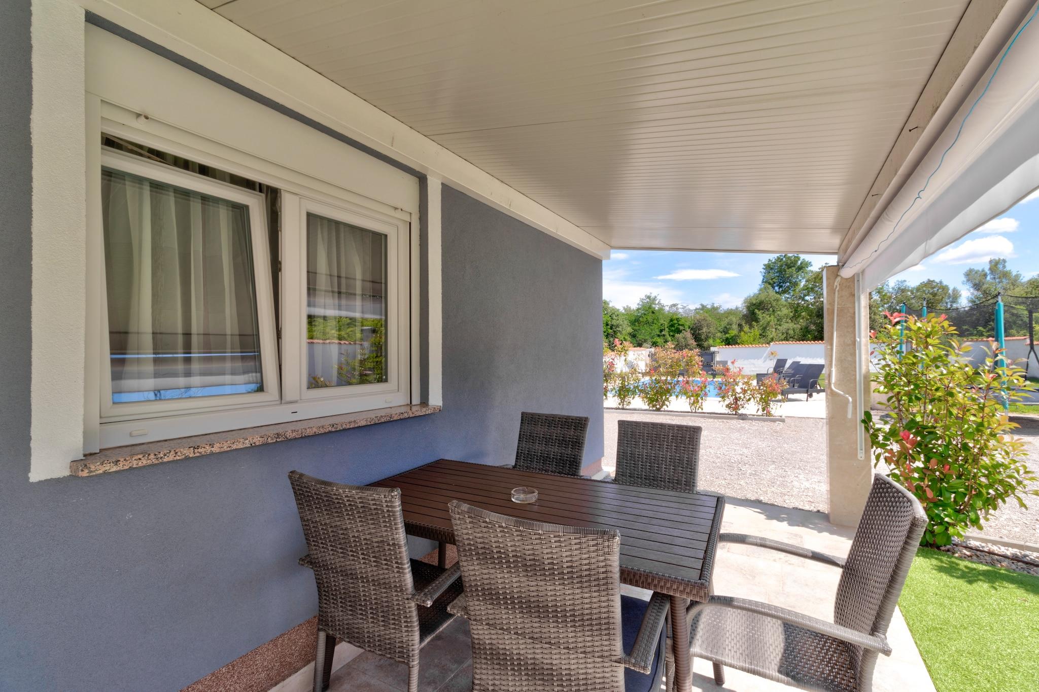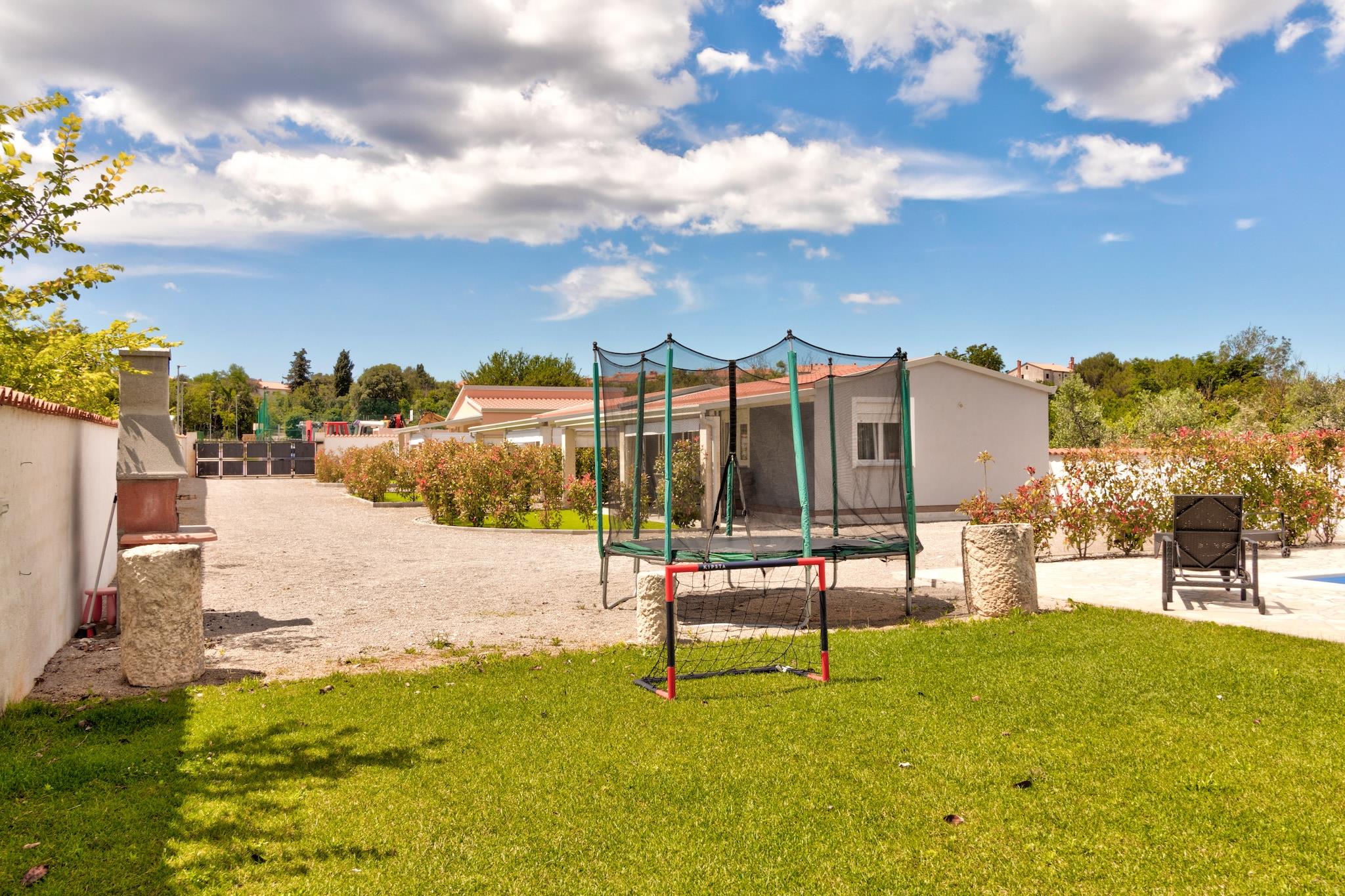 Slap af i dette kæledyrsvenlige feriehus i Banjole, designet til op til seks gæster og beliggende kun 1 km fra stranden og 2 km fra Pulas historiske centrum. Huset er omgivet af frodig vegetation og tilbyder gratis WiFi, adgang til en fælles swimmingpool og et væld af udendørs faciliteter, ideelt for familier eller grupper, der ønsker at slappe af eller udforske Istriens kyst. Indenfor finder du en rummelig stue/soveværelse møbleret med en dobbeltseng, tv og aircondition. Det fuldt udstyrede køkken har moderne apparater såsom elkedel, kogende vandhane, kaffemaskine, ovn, mikrobølgeovn, opvaskemaskine og køleskab. Sovepladserne inkluderer et soveværelse med enten to enkeltsenge eller køjesenge og et soveværelse med en kingsize-seng og et privat badeværelse med bruser eller badekar og toilet. Et ekstra badeværelse giver ekstra komfort. Udendørsområdet inviterer dig til at slappe af på en møbleret terrasse med liggestole og grill. For sjov og rekreation kan du nyde trampolinen, tennisbanen, fodboldnettet og legepladsudstyret. Nærliggende attraktioner inkluderer det ærefrygtindgydende Augustus-tempel, de naturskønne og historiske Brijuni-øer og den ikoniske Sergii-bue. For at spise kan du besøge Nina Pizzeria for at smage på Italien eller nyde fiske- og skaldyrsspecialiteter på Konoba Sidro. Med en blanding af fritid, historie og kystcharme tilbyder dette hjem en uforglemmelig adriatisk ferie.
