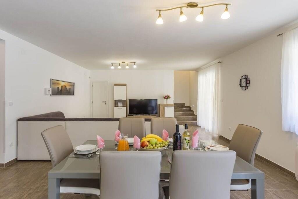 Dieses schöne geräumige und erfrischende Ferienhaus in herrlicher Lage bietet Ihnen einen schönen Urlaub, es bietet Privatsphäre, Ruhe und einen unvergesslichen Aufenthalt. Das Haus hat 2 Etagen. Im Erdgeschoss ist der Ruhebereich mit Wohnzimmer, geräumige Küche, ein großes Schlafzimmer mit Bad, Ausgang auf der Terrasse und Ausgang zum Pool. Auf der ersten Etage befinden sich 3 Schlafzimmer, jedes mit eigenem Badezimmer. Zwei dieser Zimmer haben einen eigenen Ausgang auf dem Balkon, wo Sie einen kleinen Tisch haben, wo Sie Kaffee trinken und die Sonne genießen können, von wo aus Sie direkt zum großen Swimmingpool gehen können, wo es Liegestühle und eine große Liegewiese gibt.
