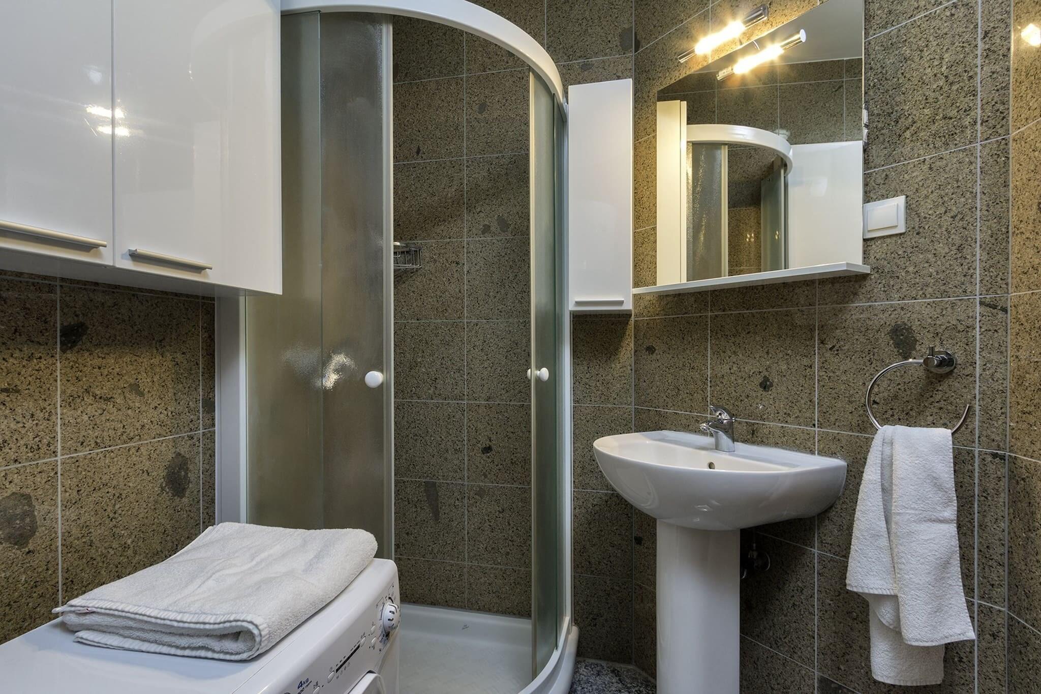 Denne dejlige to-værelses lejlighed i Banjole tilbyder en perfekt kystferie for op til fire gæster. Lejligheden ligger blot 200 meter fra stranden og har rummelig opholdsstue, køkken og spiseplads i åbent plan samt badeværelse. Både stuen og det ene soveværelse har altaner med udsigt over den omkringliggende natur. Familier med babyer er velkomne, da en barneseng er til rådighed gratis. Gæsterne kan også nyde gratis Wi-Fi, aircondition og parkering på stedet under deres ophold. Banjole, beliggende på Medulin Riviera, er en charmerende og roligere destination, der tilbyder en blanding af naturlig skønhed og lokale faciliteter. Blot i kort afstand finder du Medulins 1 km lange sandstrand, Bijeca, ideel for familier. Området kan også prale af et pulserende natteliv om sommeren, hvilket sikrer noget for enhver smag. Der er talrige restauranter, barer, købmandsforretninger og markeder i nærheden. For naturentusiaster tilbyder Cape Kamenjak i Premantura en fantastisk udsigt, og den arkæologiske park Vizula giver et indblik i regionens romerske historie. Med en legeplads ved siden af bygningen, er lejligheden et glimrende valg for familier. En restaurant er bekvemt placeret kun 5 meter fra ejendommen, hvilket gør det nemt at nyde lækre lokale måltider. Lejligheden er veludstyret med alt hvad du behøver for et afslappende ophold, herunder en høj barnestol og barneseng, og er i umiddelbar nærhed af vigtige tjenester og attraktioner.