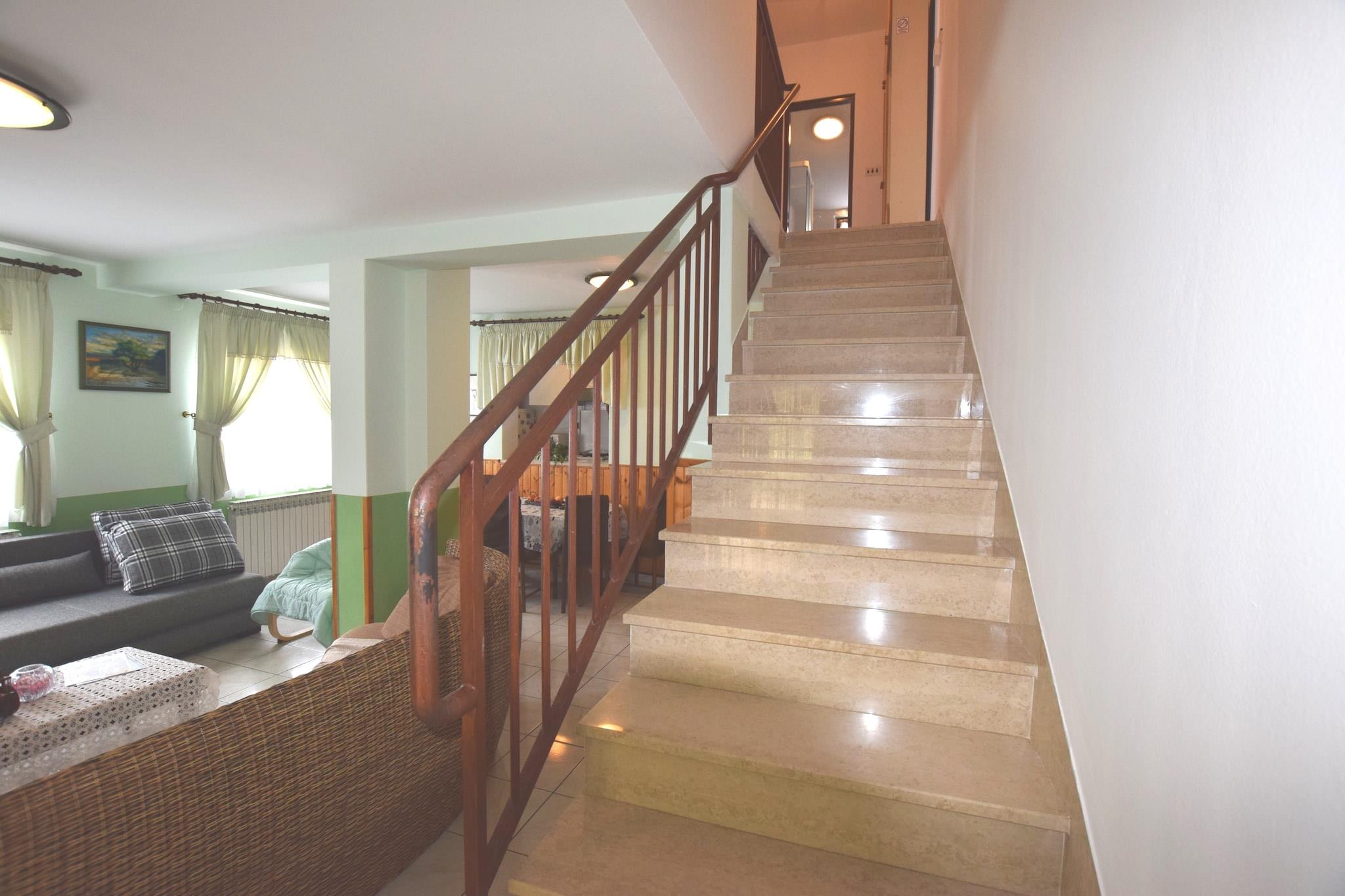 Dette feriehus til fem gæster tilbyder et hyggeligt og veludstyret ophold i Banjole, kun 500 meter fra stranden og 100 meter fra lokale restauranter og butikker. Med gratis WiFi, en rummelig terrasse og et udendørs køkken med grill er dette tilflugtssted perfekt til familier eller små grupper, der ønsker at slappe af ved Adriaterhavskysten. Uanset om du nyder den friske havbrise eller udforsker nærliggende attraktioner, tilbyder dette hjem en komfortabel og bekvem tilflugtssted. Indenfor har huset en indbydende stue med en dobbelt sovesofa, en spisestue og et fuldt udstyret køkken med ovn, mikrobølgeovn og opvaskemaskine. Badeværelset i stueetagen har en vaskemaskine, mens første sal byder på tre soveværelser, et med en køjeseng, et med en dobbeltseng og et med en enkeltseng, samt et andet badeværelse og en balkon. Gæsterne kan slappe af i det airconditionerede interiør eller nyde den private terrasse og haven. I nærheden fremviser Augustus-templet en fantastisk romersk arkitektur, mens Brijuni-øerne byder på betagende natur og historiske steder. Udforsk Sergii-buen, en velbevaret romersk triumfbue. Til spisning serverer Nina Pizzeria lækre italienske retter, mens Konoba Sidro tilbyder frisk fisk og skaldyr. Uanset om du udforsker historien eller nyder lokale smagsoplevelser, er dette feriehus det perfekte tilflugtssted ved kysten.