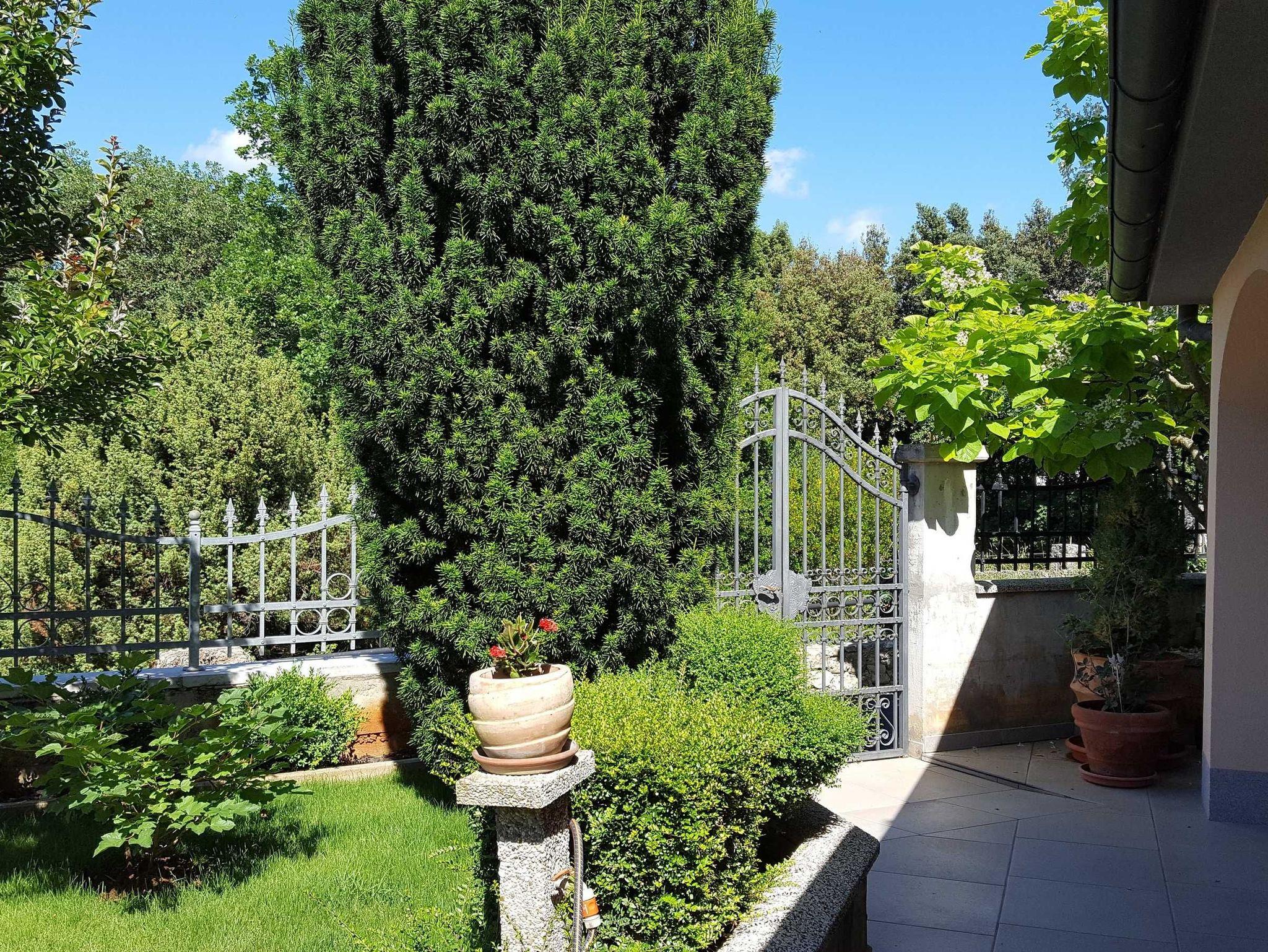 • Lage: Erdgeschoss mit überdachter Terrasse und Blick auf den gepflegten Garten