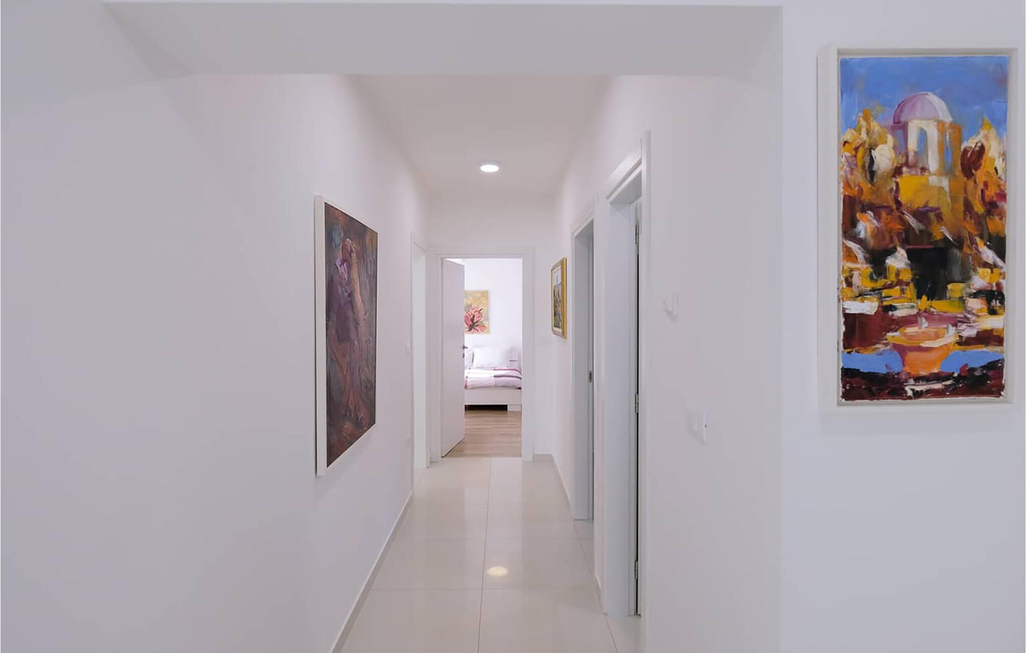 Lad hverdagen ligge og nyd stilfuld komfort: Den lyse opholdsstue er noget særligt med møbler med lækre kvalitetsløsninger og gennemtænkte detaljer, der vil gøre jeres tid med familie eller venner til noget særligt. Tilbered morgenmad i det moderne udstyrede køkken, inden I sætter jer ved det hvide spisebord. Lyse sofaer lægger op til at slappe af, læse en god bog eller se en spændende film. Hvis I har lyst, kan I træne jeres styrke og udholdenhed i fitnessrummet.