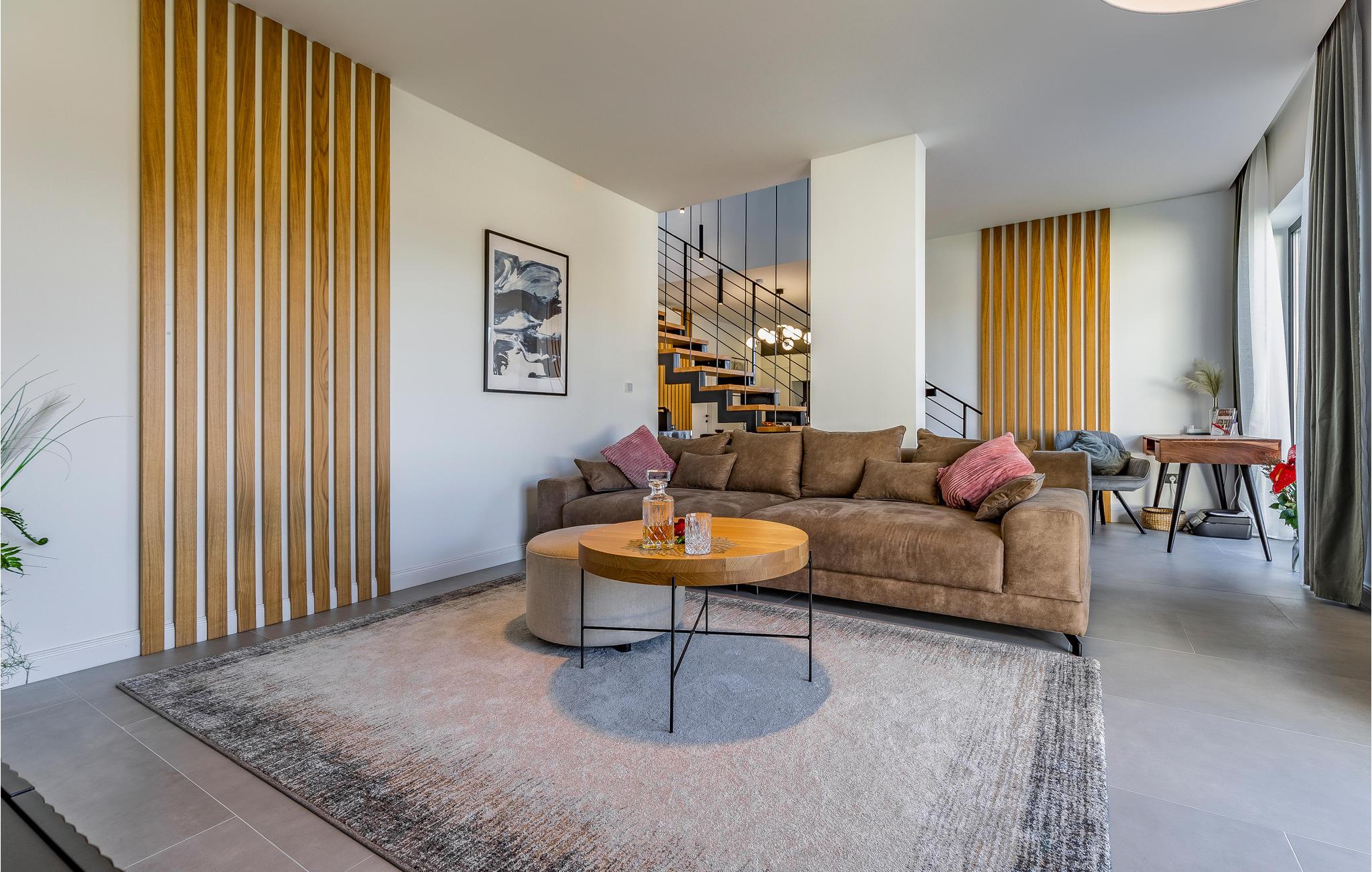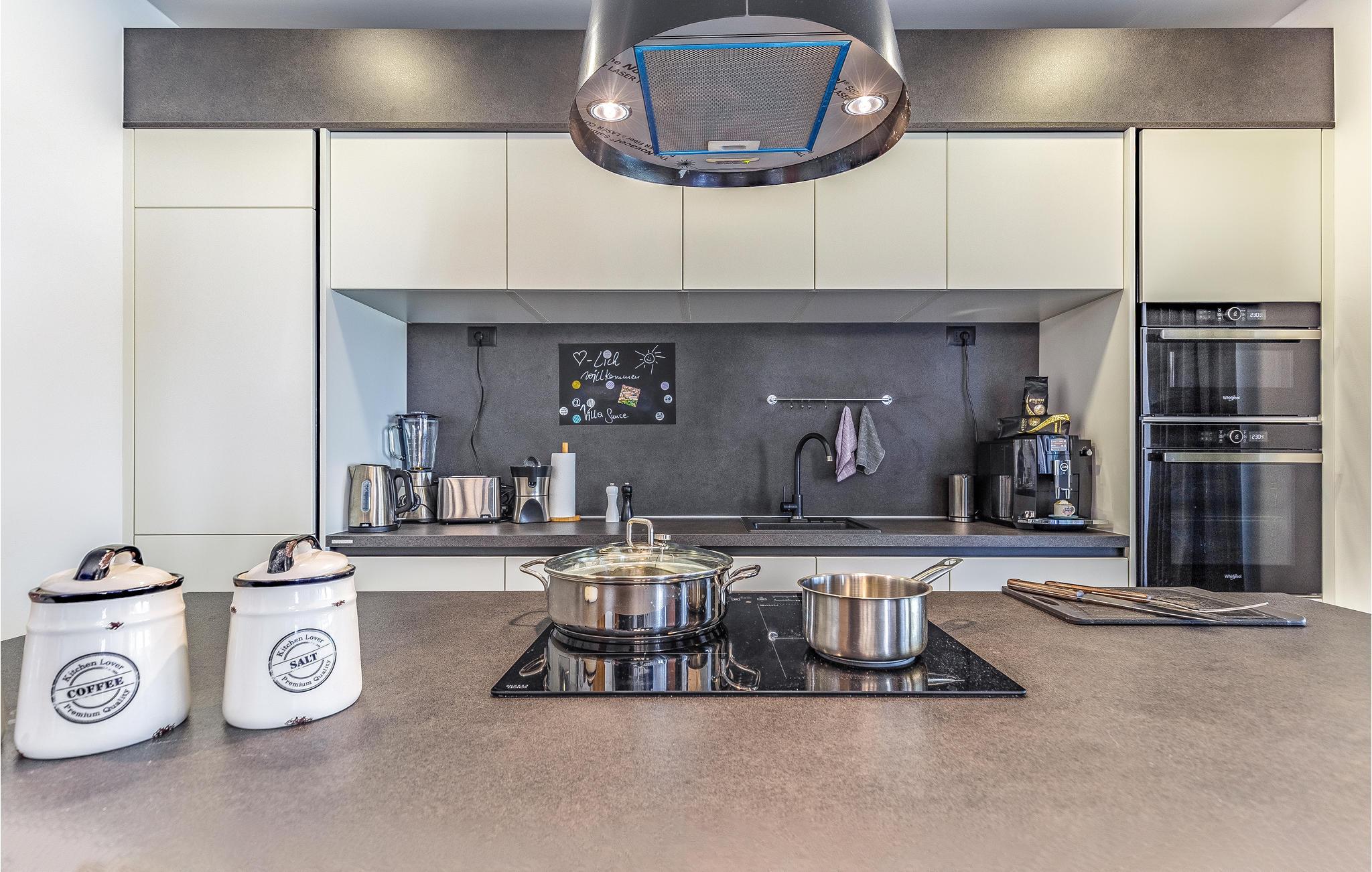 Dette indbydende hus kombinerer komfort, design og familievenlige faciliteter. Her kan I derfor se frem til nogle skønne dage med god plads på to etager og en hyggelig, hjemlig atmosfære. Giv jer i kast med feriens madlavningsprojekter det fuldt udstyrede køkken, tag et afslappende boblebad i karret eller se en film på sofaen om aftenen.