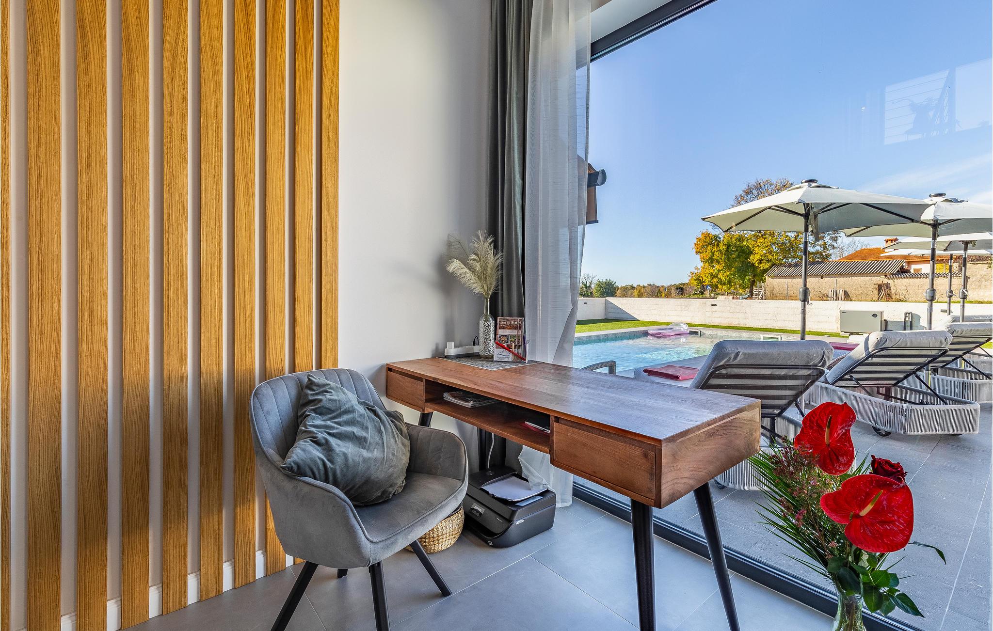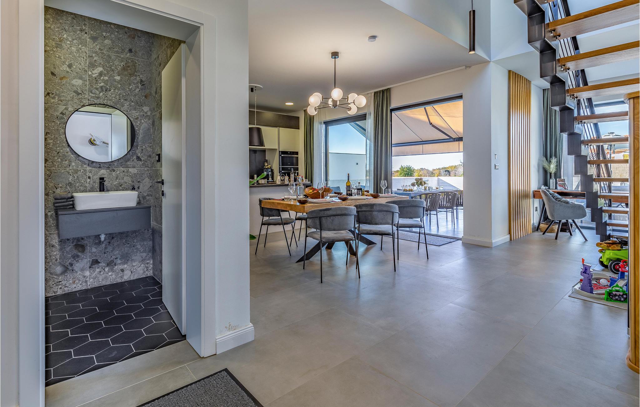 Dette skønne feriehus ligger i landsbyen Orbanici i Istrien. Placeringen er perfekt til en ferie, der kombinerer dasedage med udflugter i et af de smukkeste områder i Istrien. Det centrale Istrien byder på meget, herunder interessante byer, uberørt natur og en lang række aktiviteter. Oplev Pazinska Jama-ziplinen eller oplev landskabet på vandreture, cykel eller hesteryg. Strandene og flere smukke kystbyer er kun en kort køretur væk, så I kan se frem til en ferie, der både rummer strandliv og kulturoplevelser.