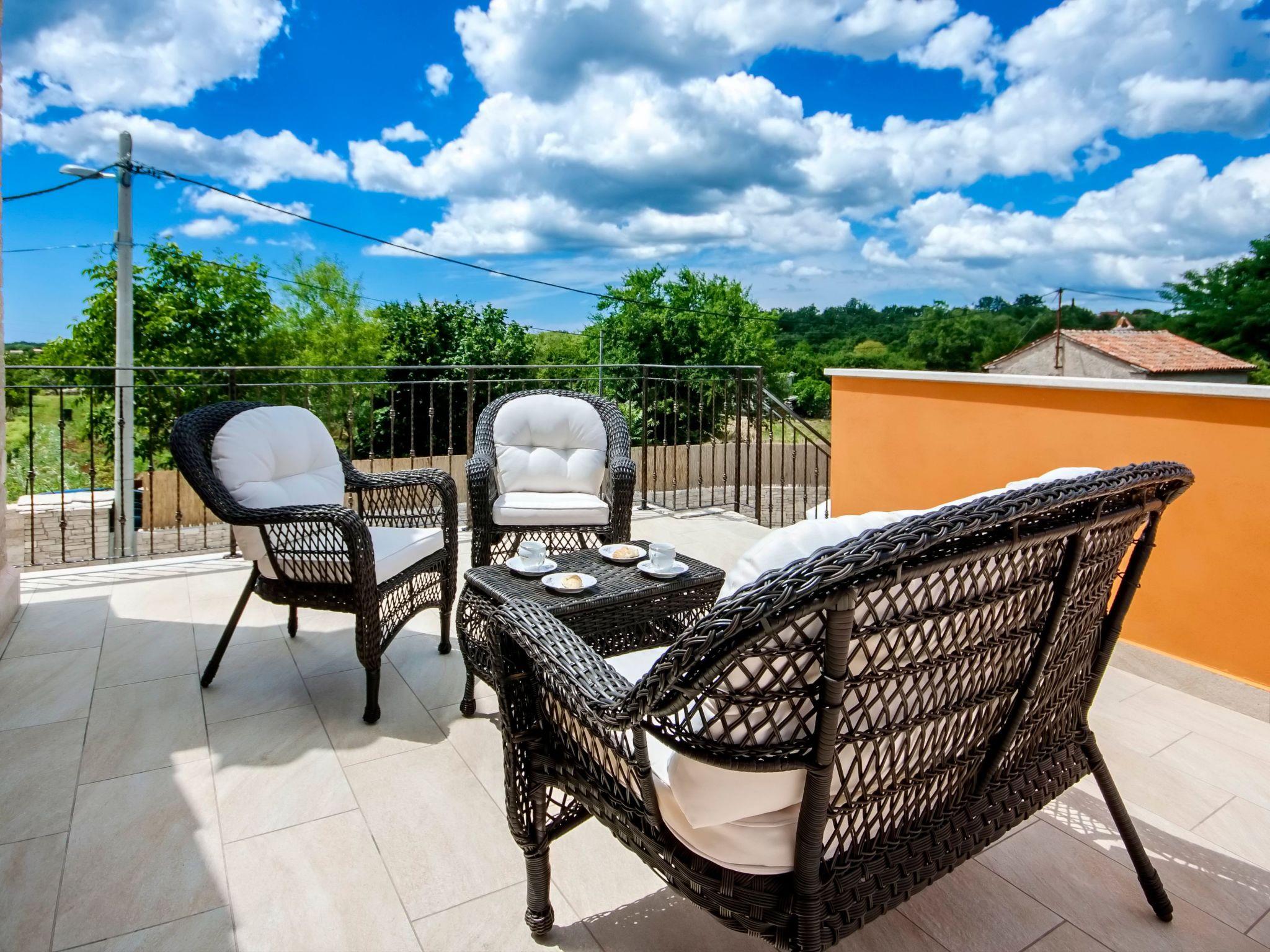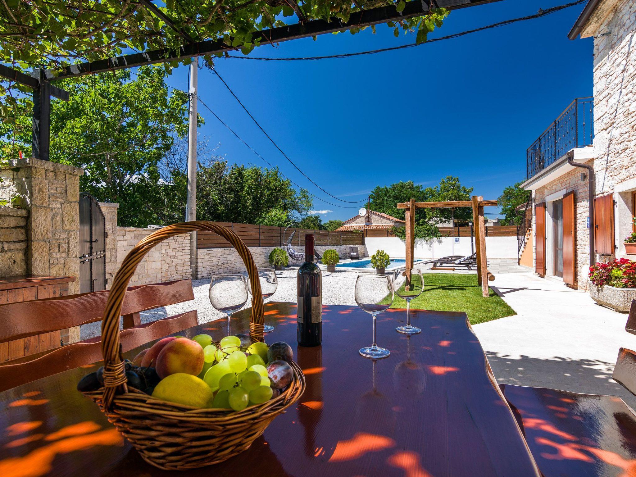 In the courtyard there is a swimming pool with six sun loungers and parasols, an outdoor charcoal grill and a terrace with a dense shade where you can relax with a glass of delicious Istrian wine while still keeping an eye on your children in the pool. The yard has two parking spaces.