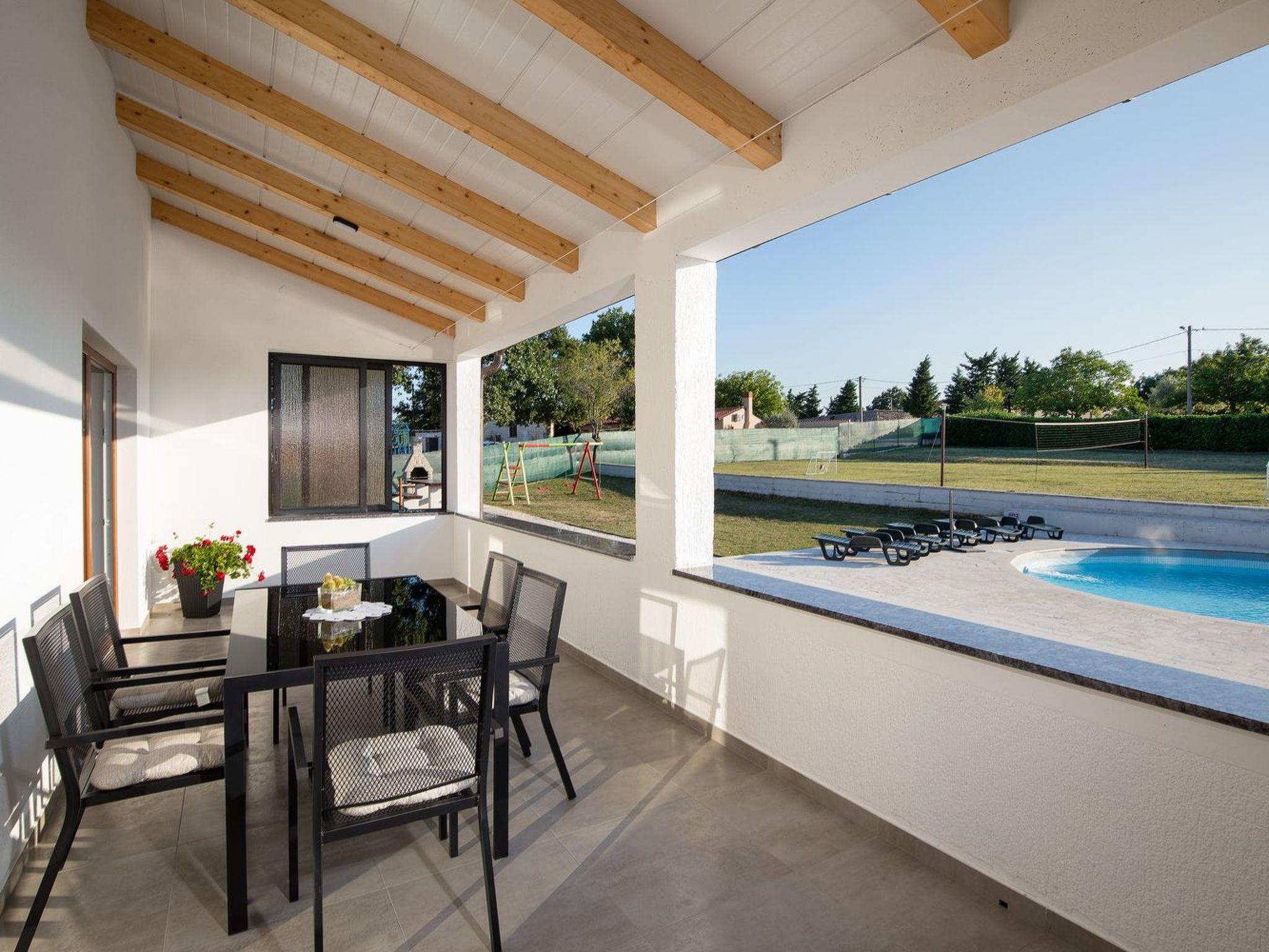 Well equipped apartment with plenty of space will meet the requests of the bigger family or smaller groups of friends. To make your stay complete, the garden area of 2000 m2 with shared pool, BBQ, sitting furniture, volleyball court and children playground is on your disposal. Parking space on the property, wi-fi and air condition are included in the price. Baby cot: on request; free of charge.