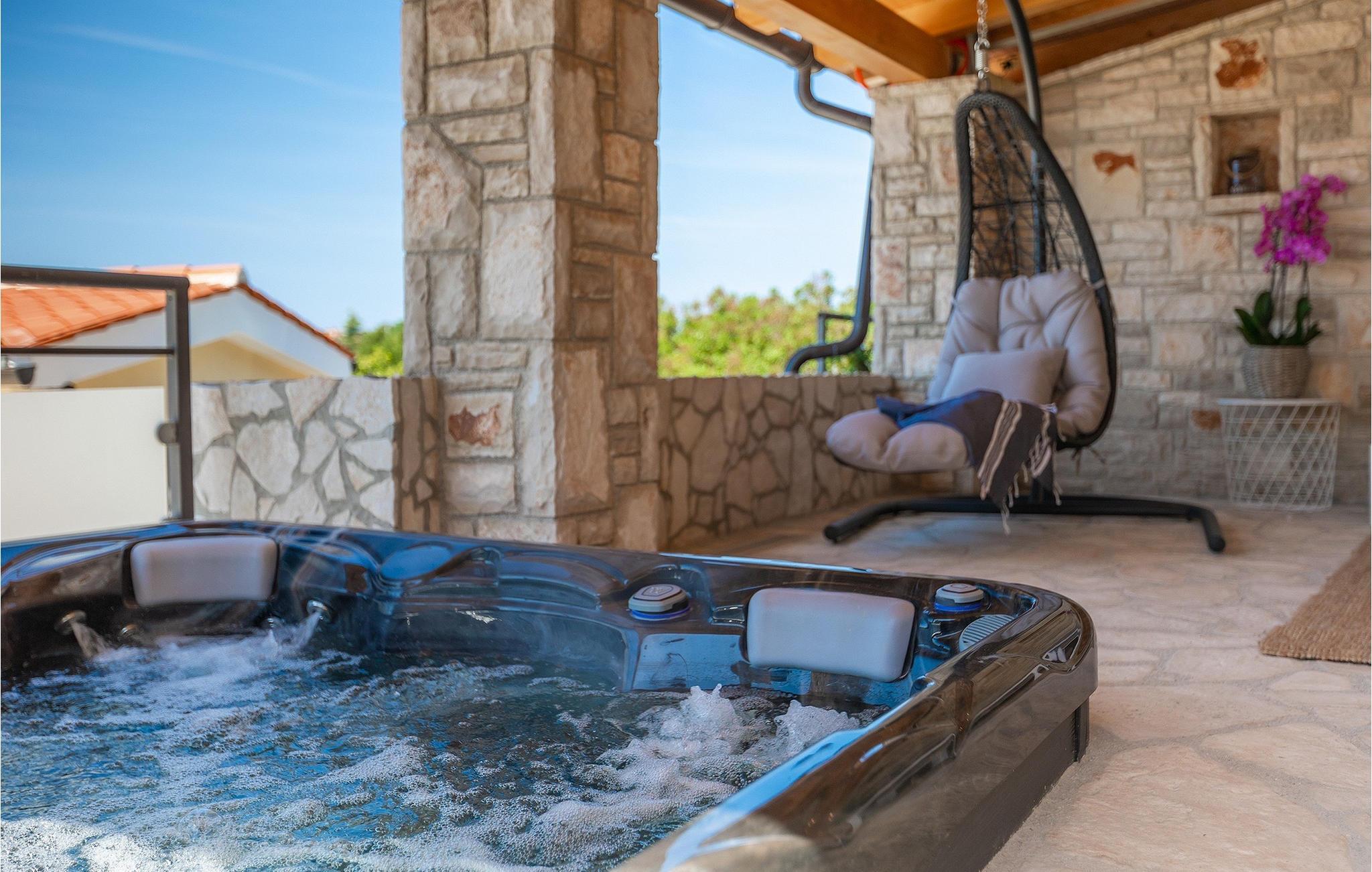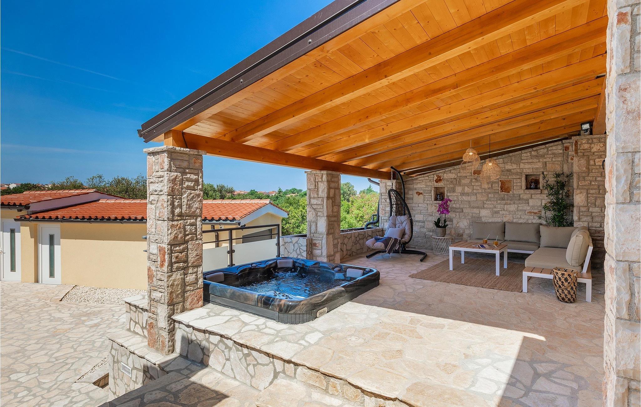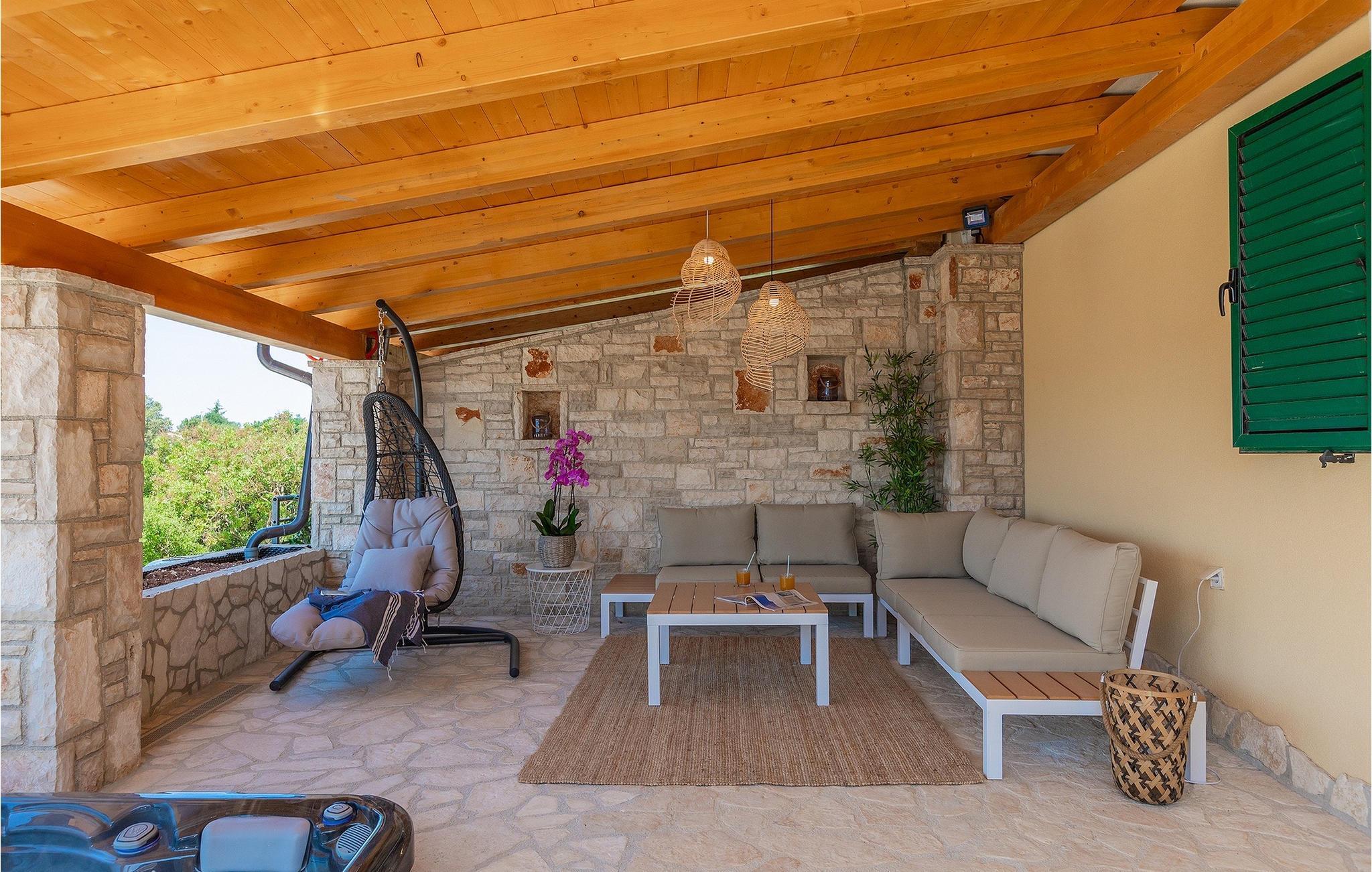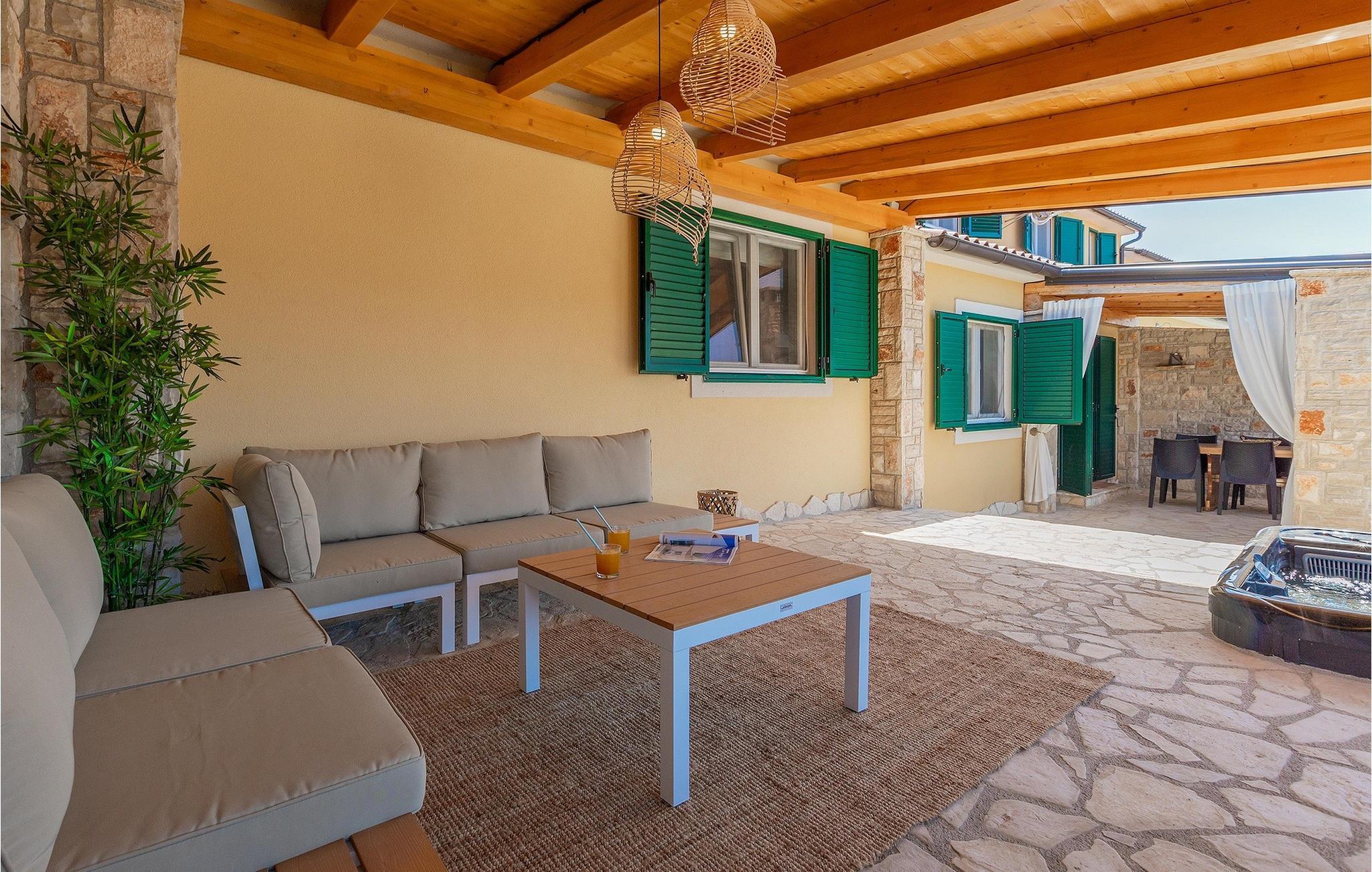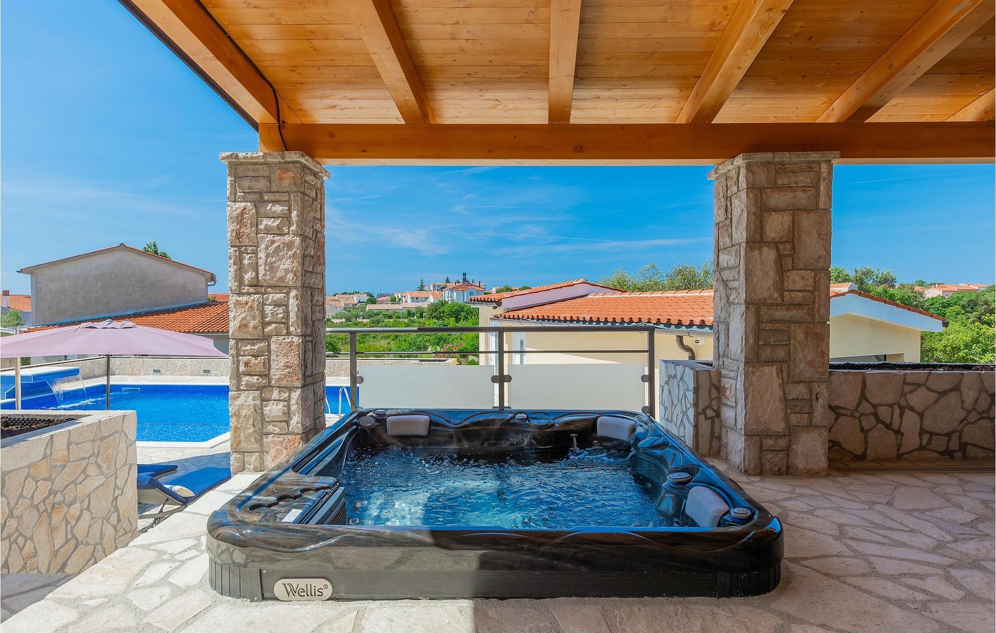 Hvis du leder efter en charmerende villa tæt på havet, så er den smukke Villa Kalista Istriana det perfekte valg for dig. Denne villa er et rækkehus beliggende i den lille by Istrien og er ideel til en dejlig familieferie. Foran villaen er der en stor privat pool, hvor du kan nyde solrige dage med din yndlingsdrink i hånden. På det udendørs område finder du også en overdækket terrasse med grill og spisebord, hvor du helt sikkert vil nyde den romantiske stemning på sommeraftener med familie og venner. Men det er ikke alt - udendørs venter en jacuzzi på dig, hvor du kan slappe af i fulde drag!