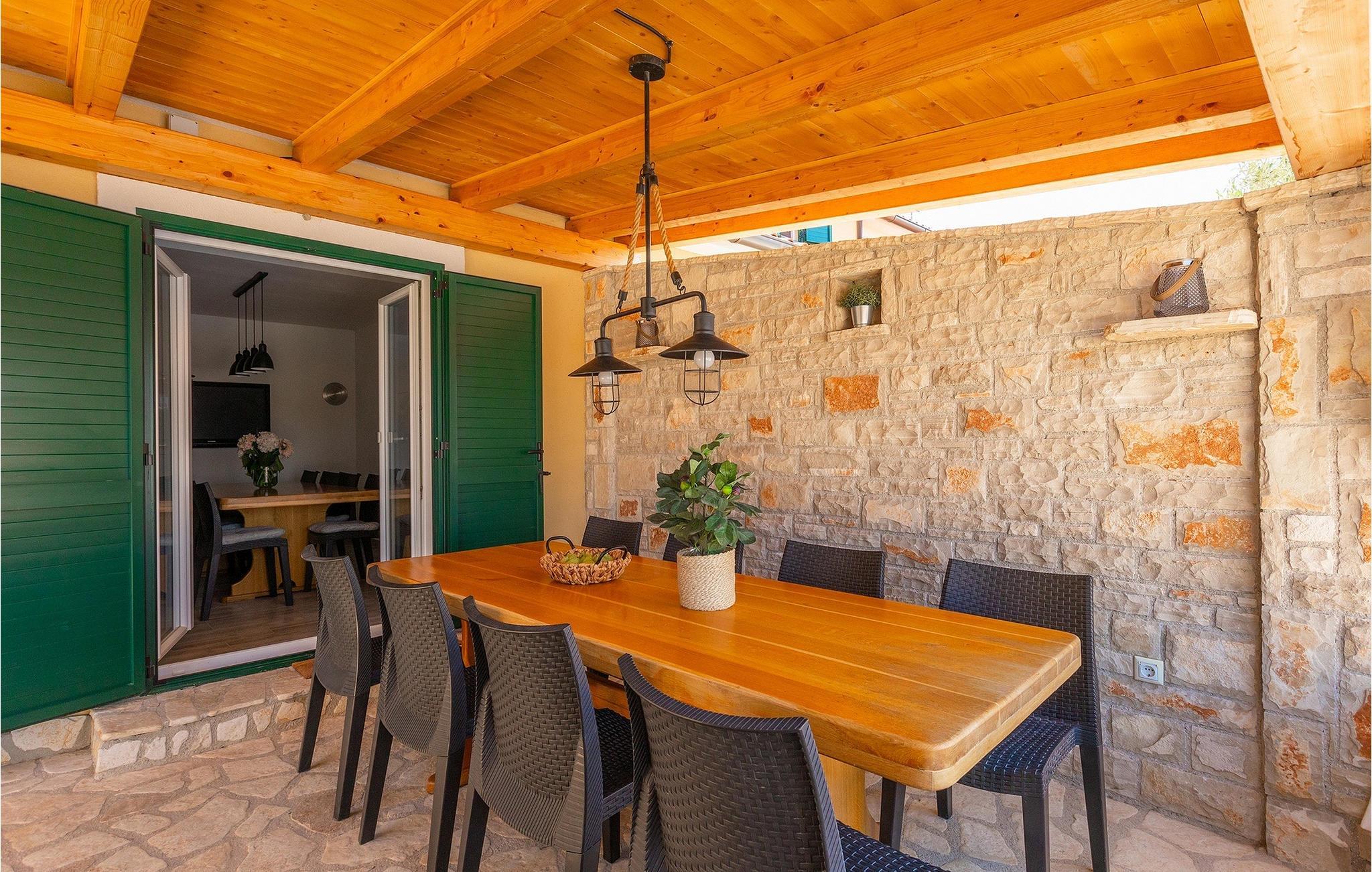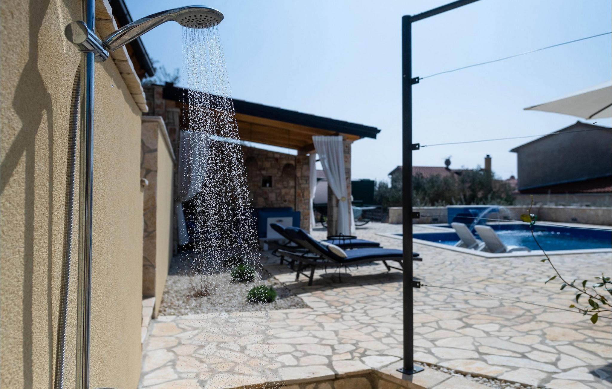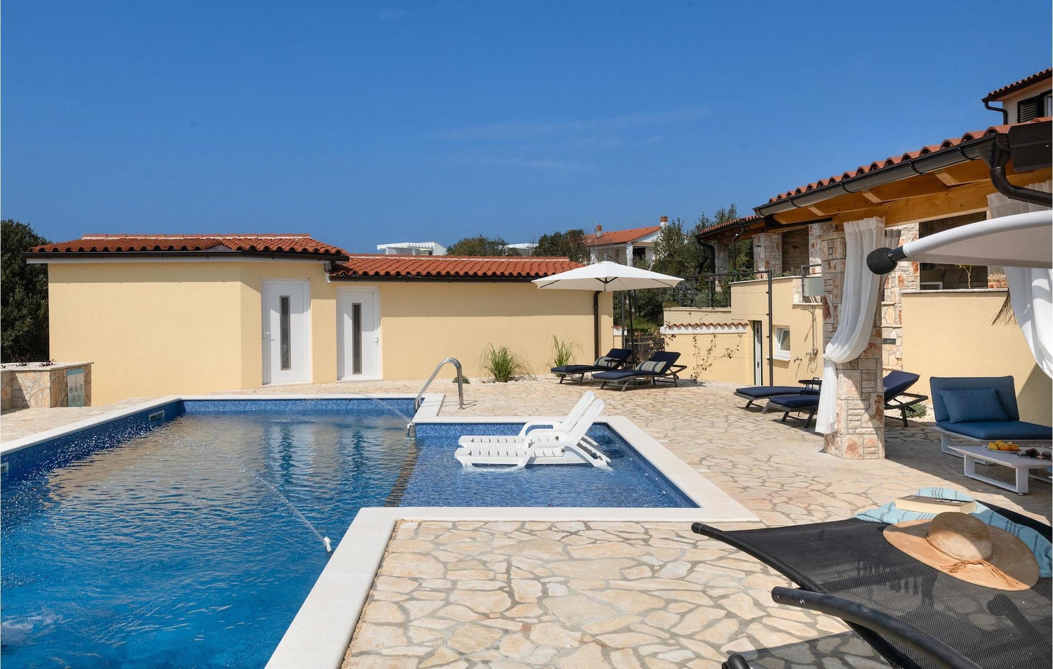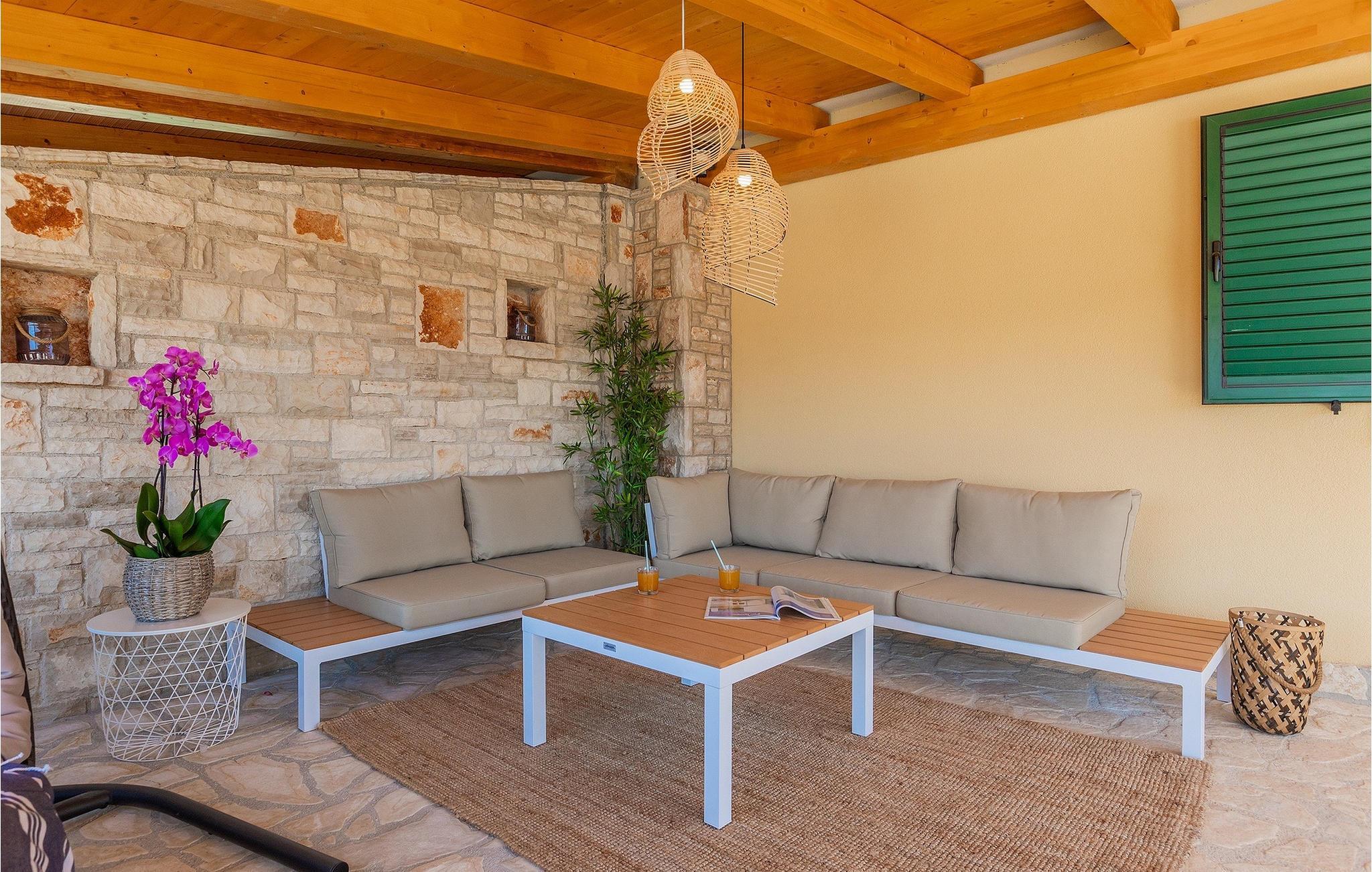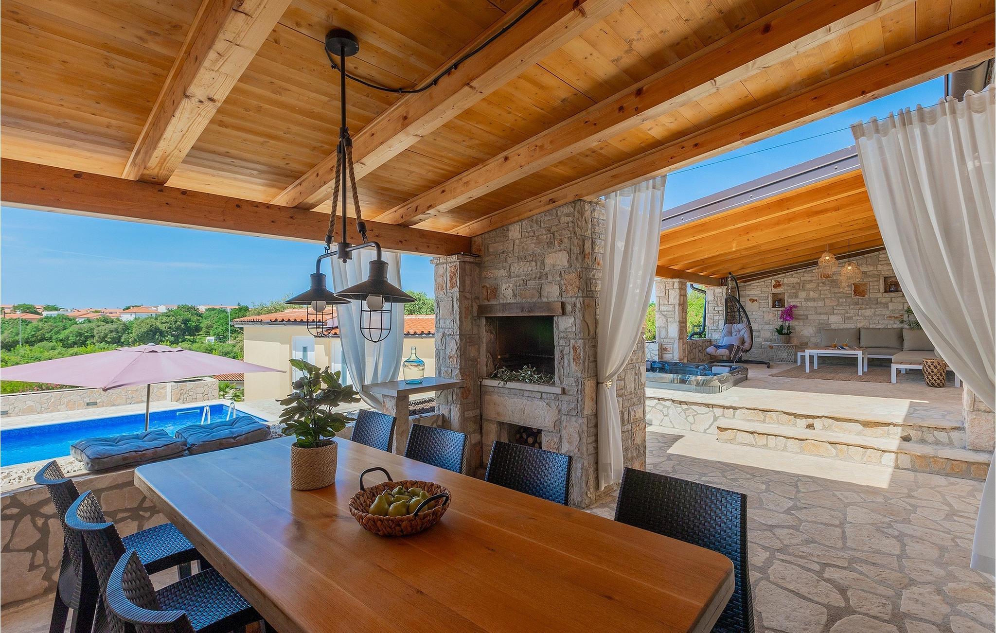 Hvis du leder efter en charmerende villa tæt på havet, så er den smukke Villa Kalista Istriana det perfekte valg for dig. Denne villa er et rækkehus beliggende i den lille by Istrien og er ideel til en dejlig familieferie. Foran villaen er der en stor privat pool, hvor du kan nyde solrige dage med din yndlingsdrink i hånden. På det udendørs område finder du også en overdækket terrasse med grill og spisebord, hvor du helt sikkert vil nyde den romantiske stemning på sommeraftener med familie og venner. Men det er ikke alt - udendørs venter en jacuzzi på dig, hvor du kan slappe af i fulde drag!
