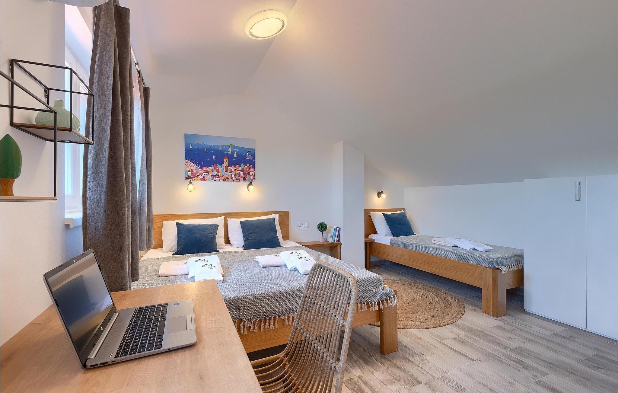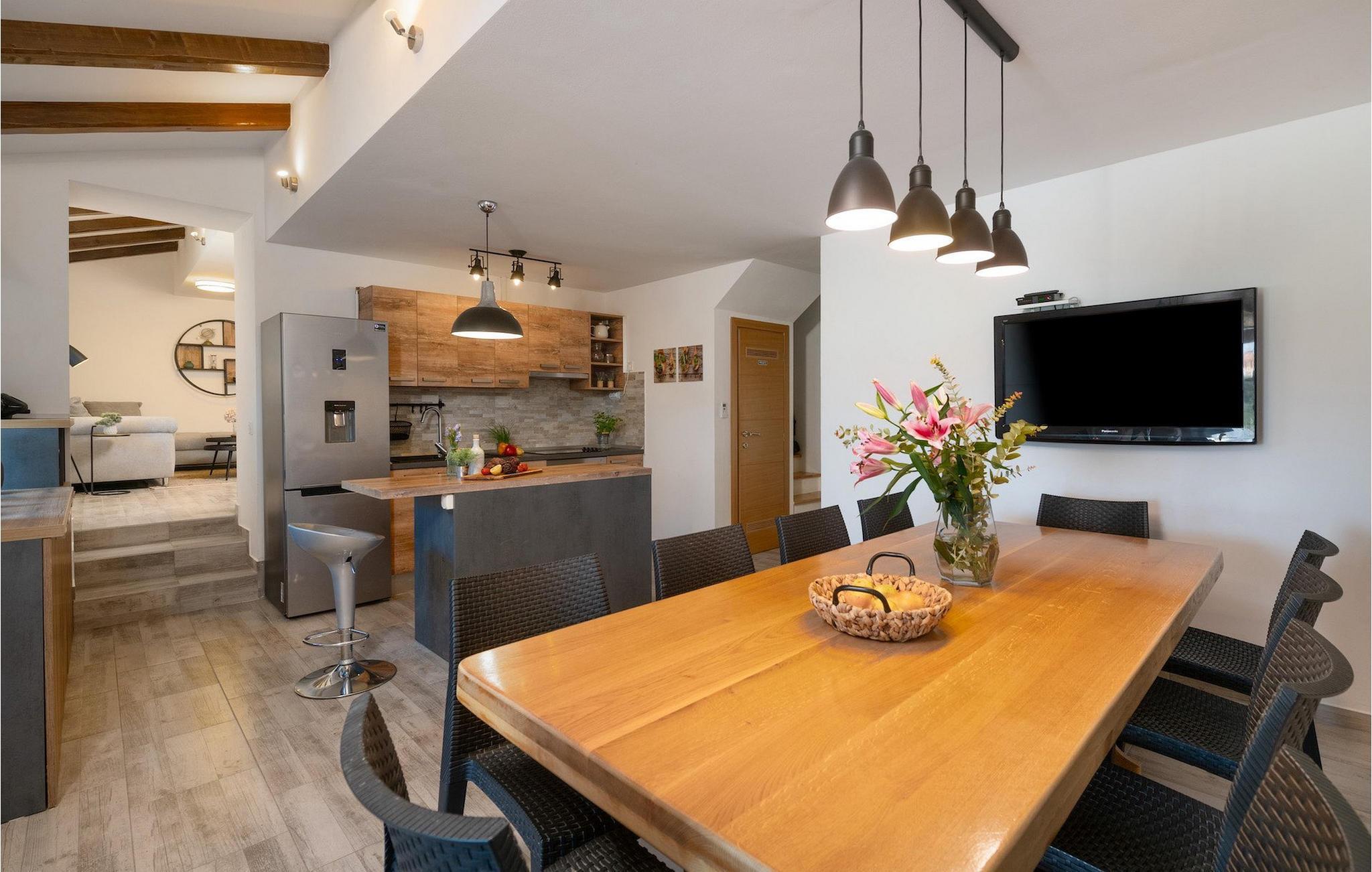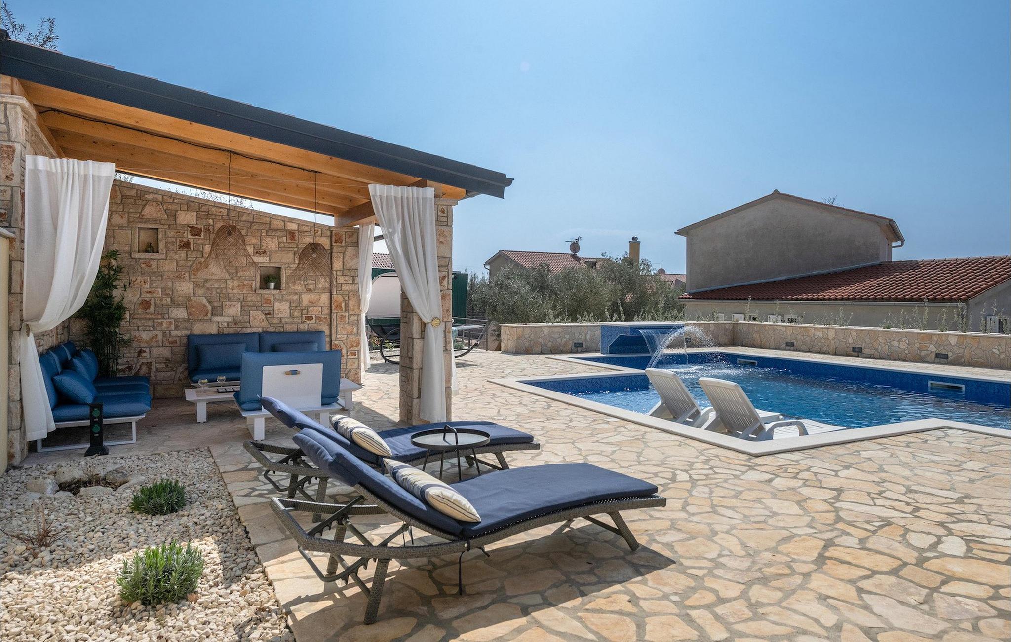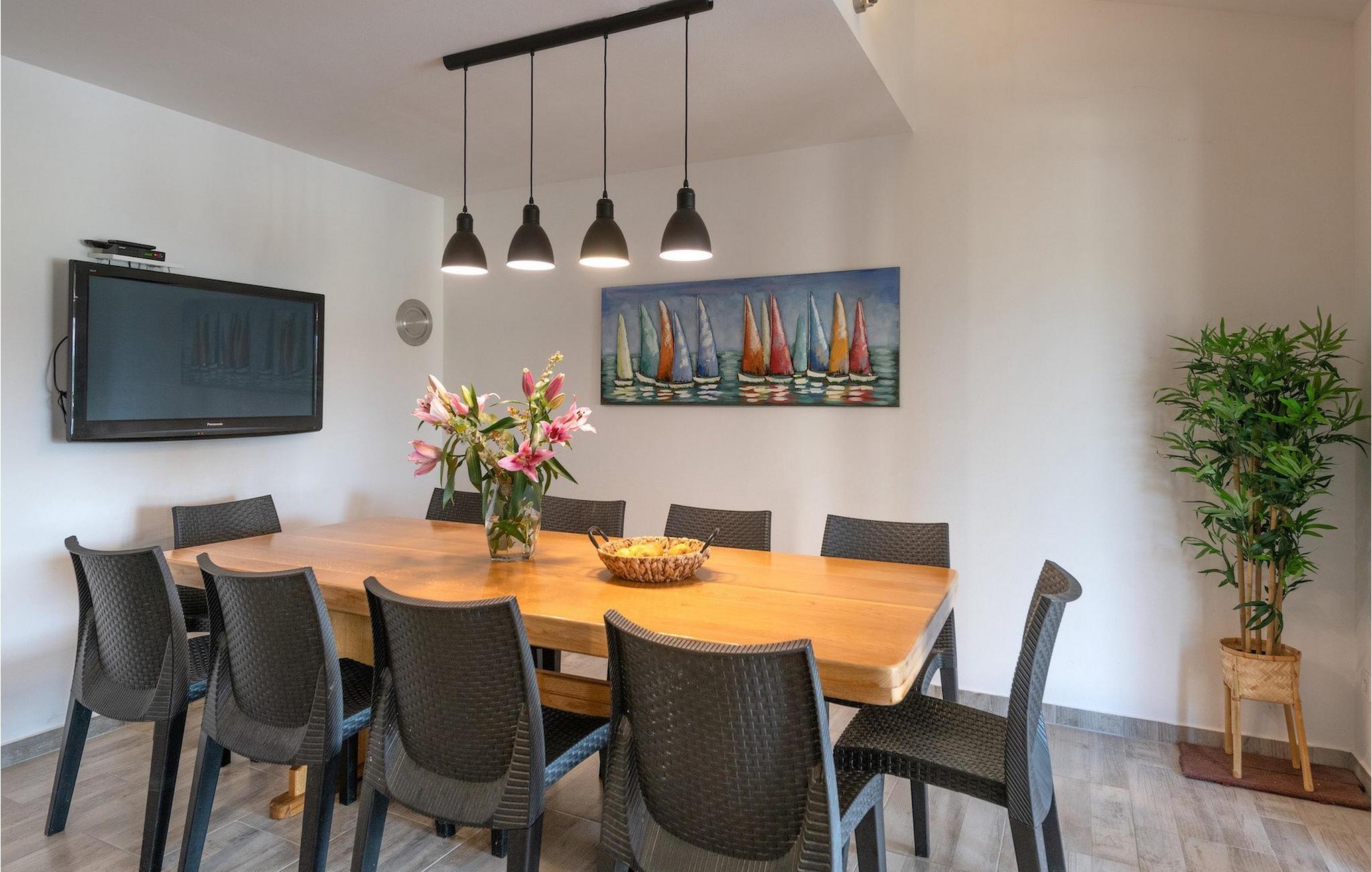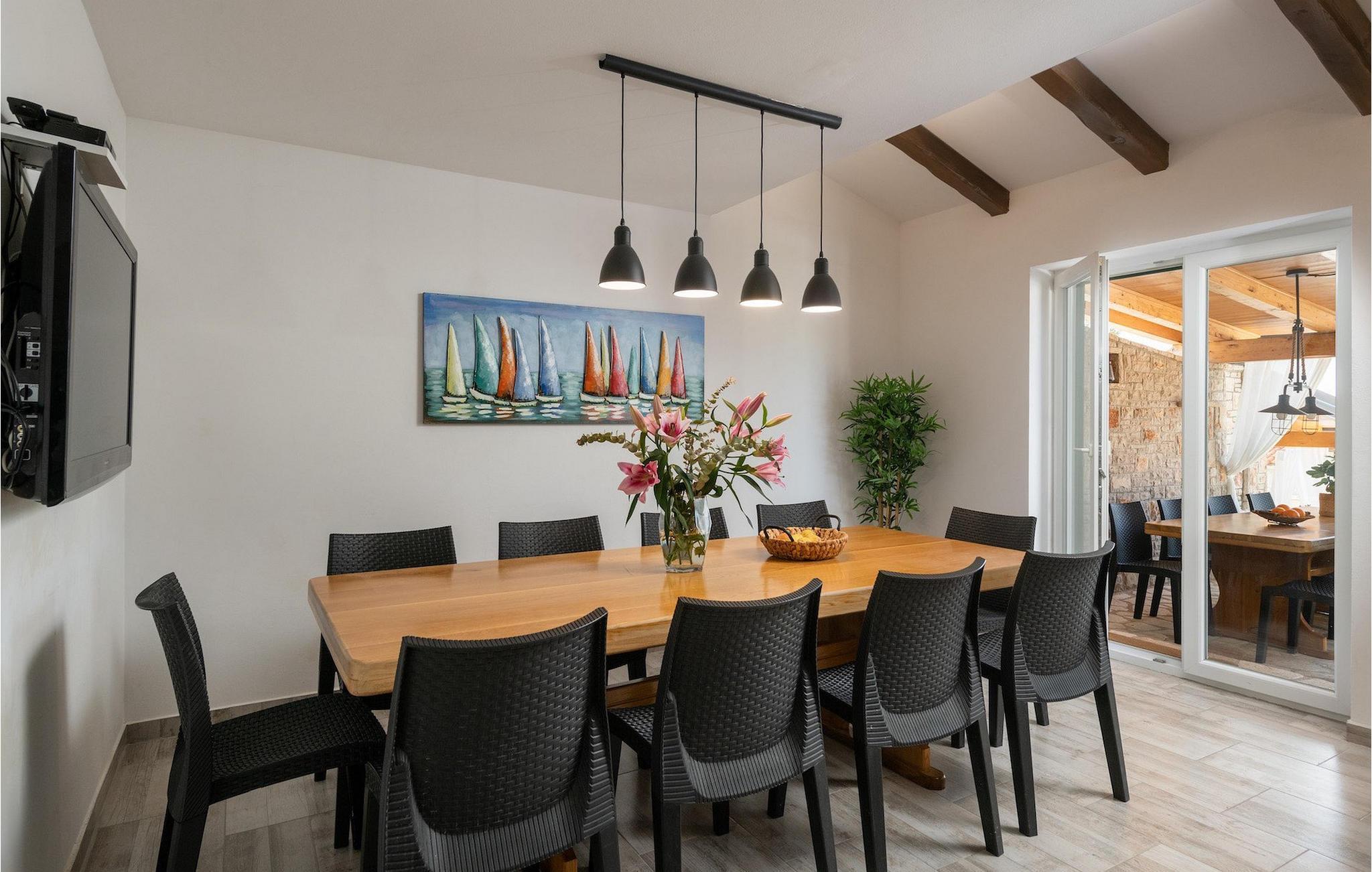 Hvis du leder efter en charmerende villa tæt på havet, så er den smukke Villa Kalista Istriana det perfekte valg for dig. Denne villa er et rækkehus beliggende i den lille by Istrien og er ideel til en dejlig familieferie. Foran villaen er der en stor privat pool, hvor du kan nyde solrige dage med din yndlingsdrink i hånden. På det udendørs område finder du også en overdækket terrasse med grill og spisebord, hvor du helt sikkert vil nyde den romantiske stemning på sommeraftener med familie og venner. Men det er ikke alt - udendørs venter en jacuzzi på dig, hvor du kan slappe af i fulde drag!