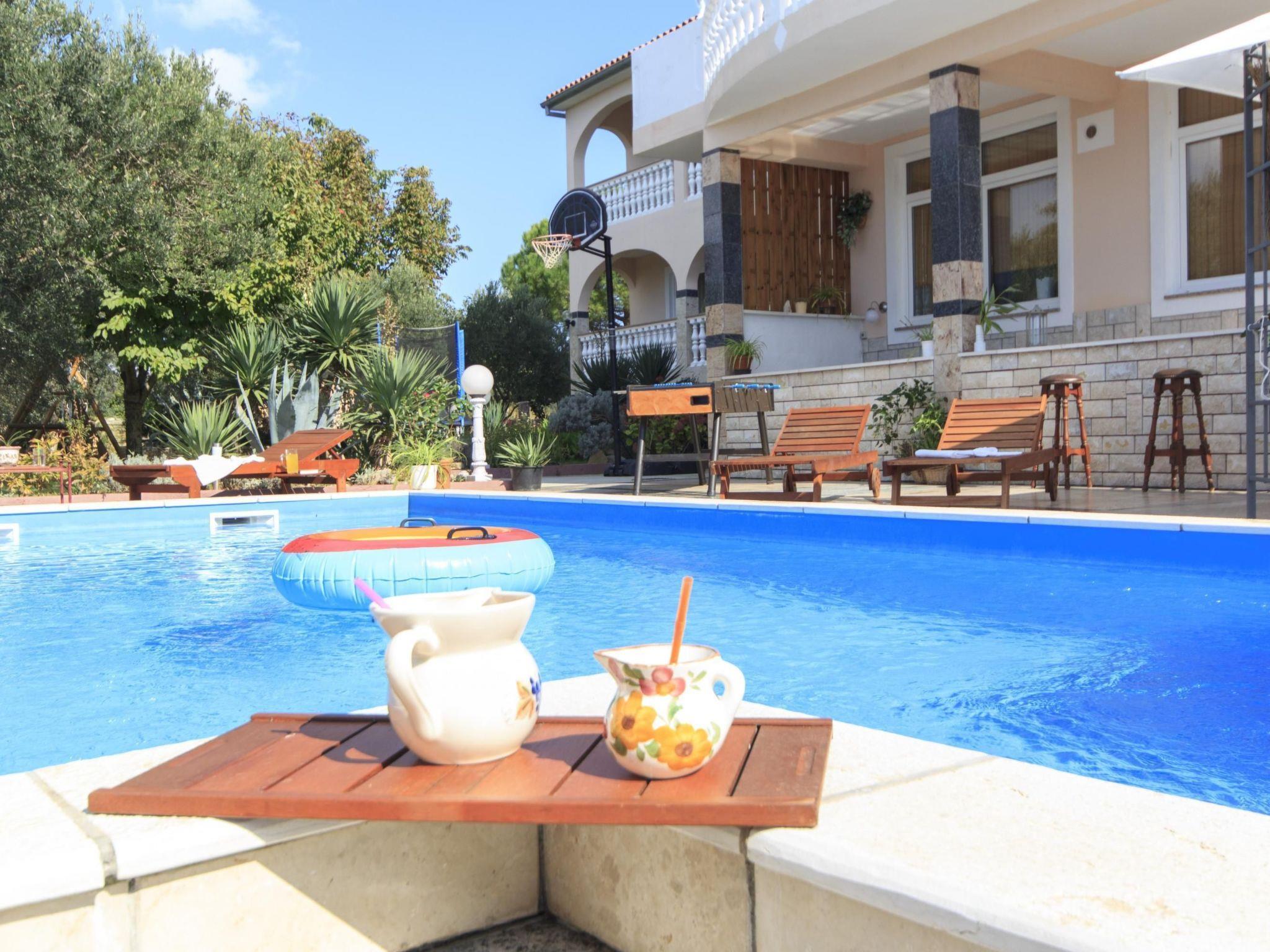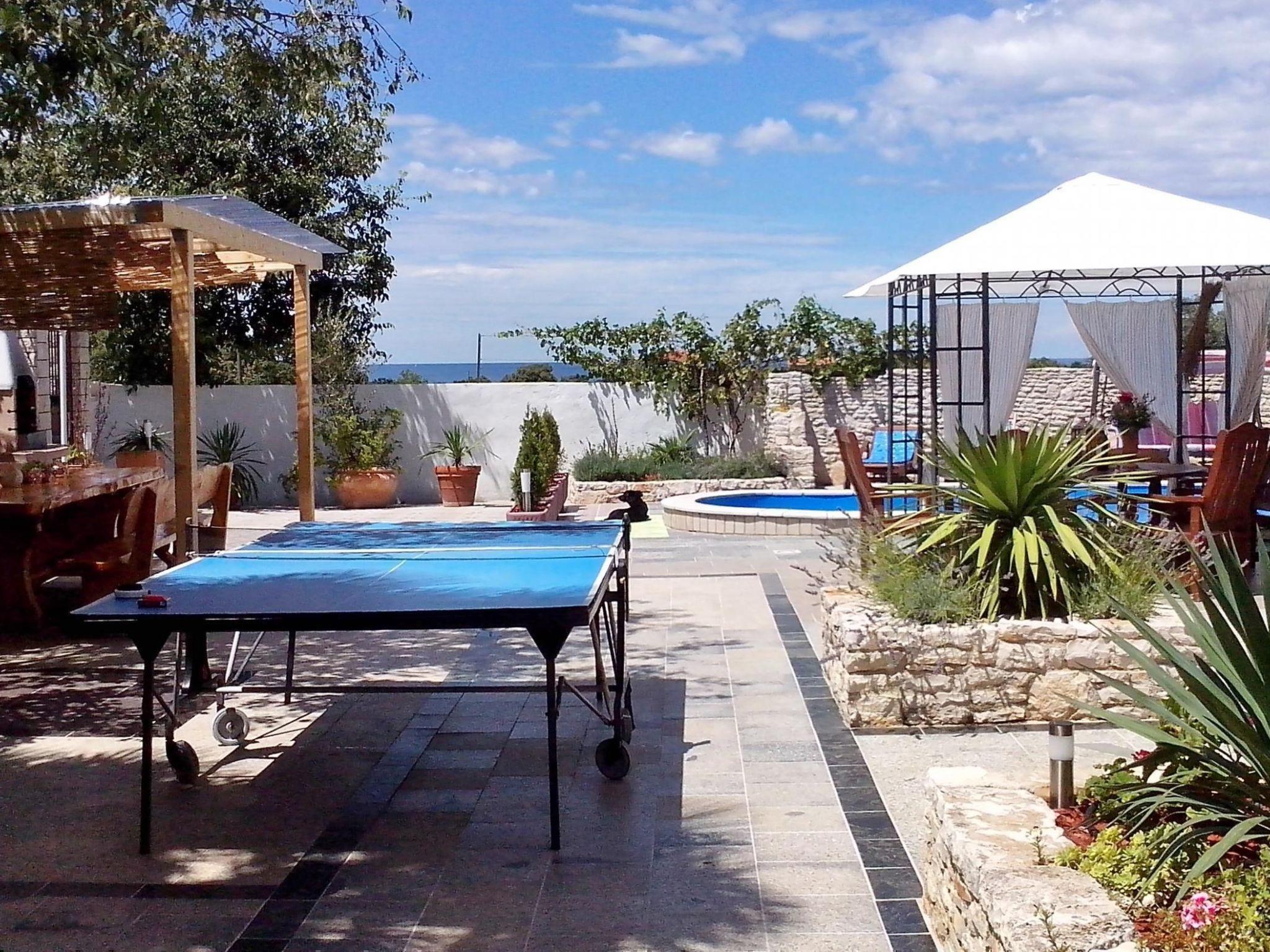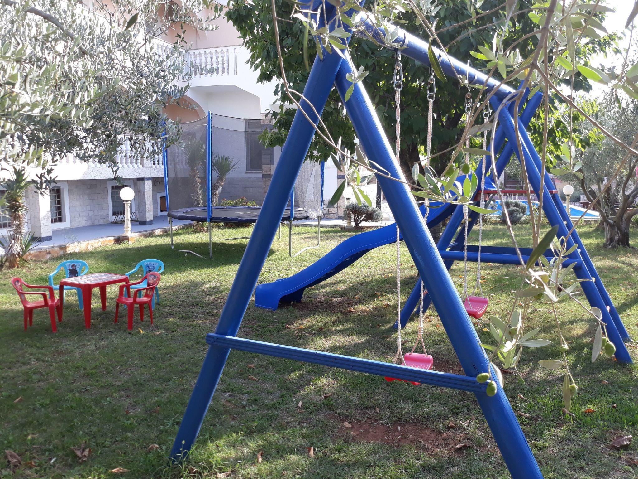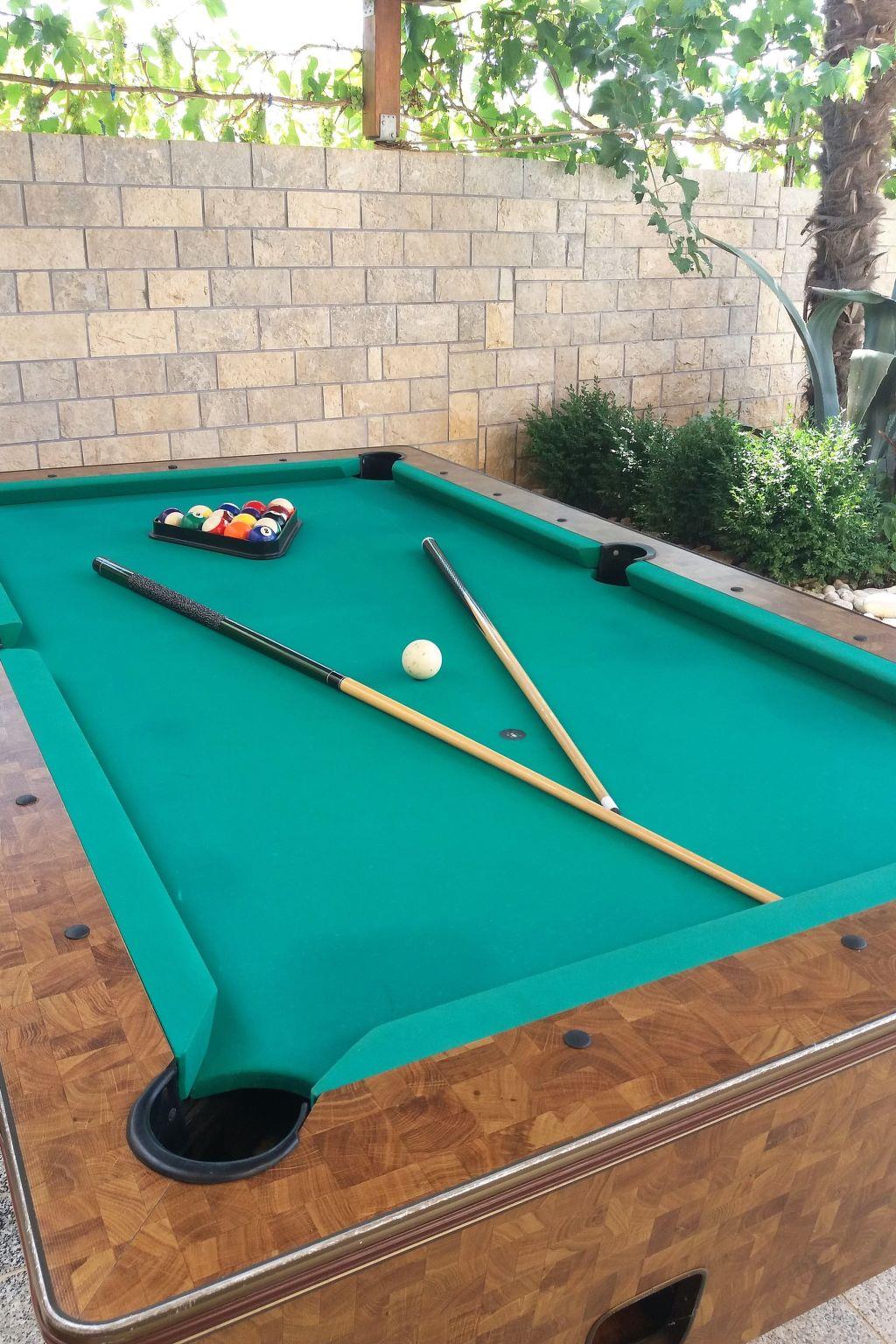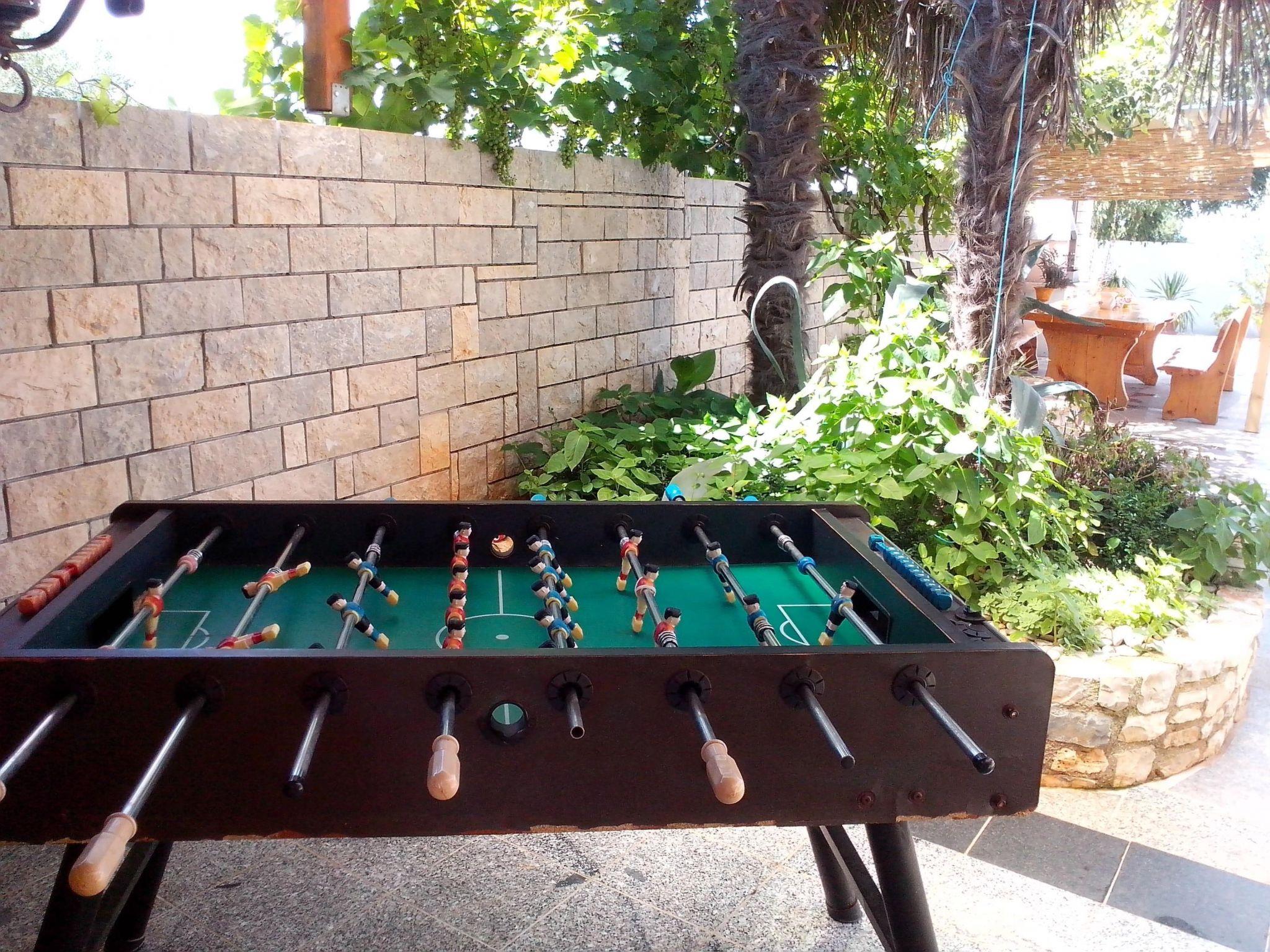 In the outdoor area, the property has a large pool, as well as a grill area and a summer kitchen with counters. The garden furniture provides maximum comfort, with seven sun loungers, two roofed seating groups. You can experience beautiful sunsets and relax with a glass of wine and spend an unforgettable holiday. Table tennis, table football, a basketball basket, a trampoline and a swing are available on site. The house is very family-friendly. Three parking spaces are available in the courtyard. The pool can be used from early May to late October depending on the weather. The pool is not heatable.