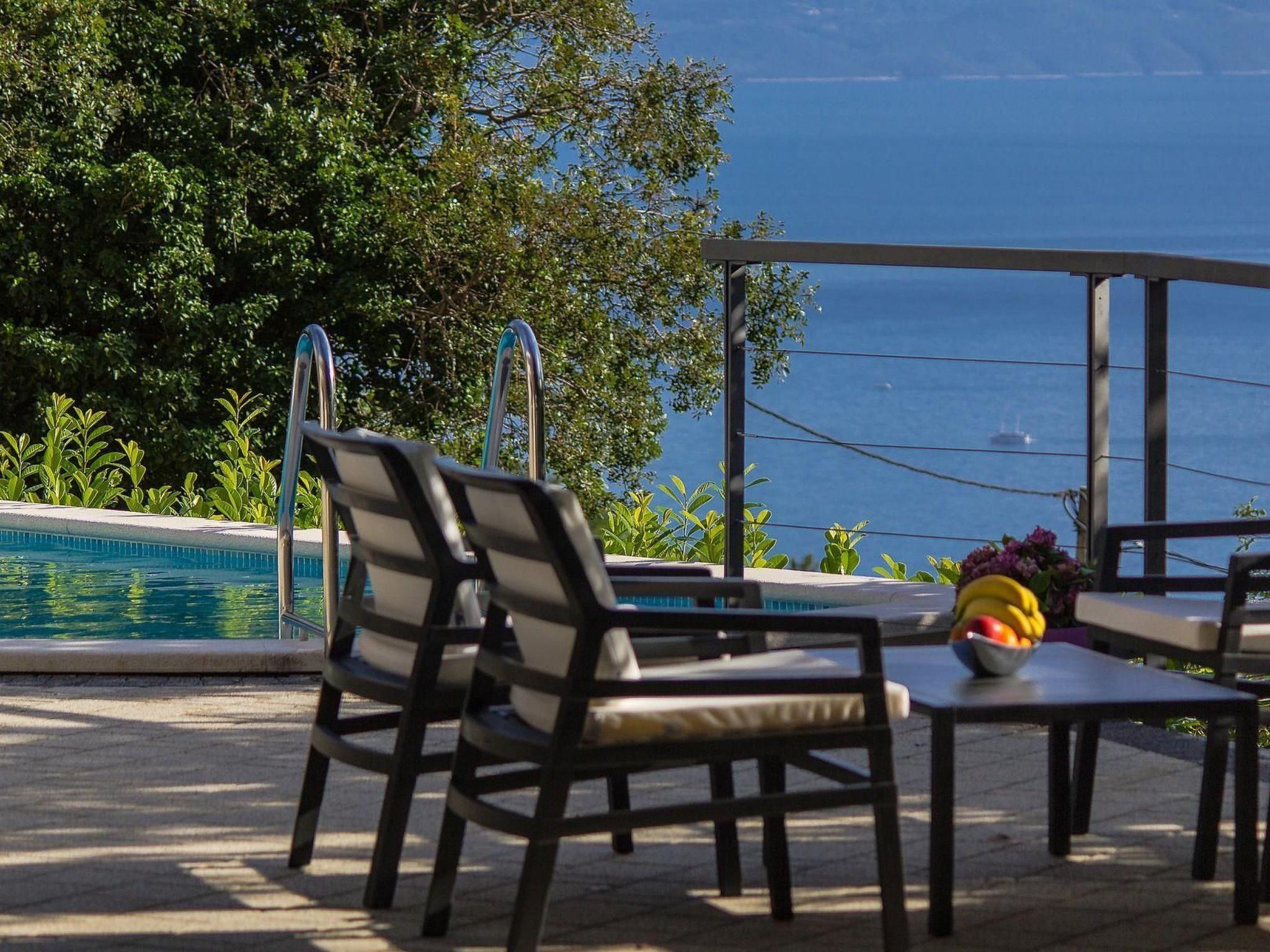 The highlight of the outdoor area is undoubtedly the private pool, from which you can enjoy a marvellous view of the sea. The terrace with sun loungers and outdoor shower invites you to relax and sunbathe, while another terrace with a barbecue area and garden furniture is the perfect place for al fresco dining. The spacious garden, which is for exclusive use, offers plenty of space for children to play and for your pets, who are also very welcome here.