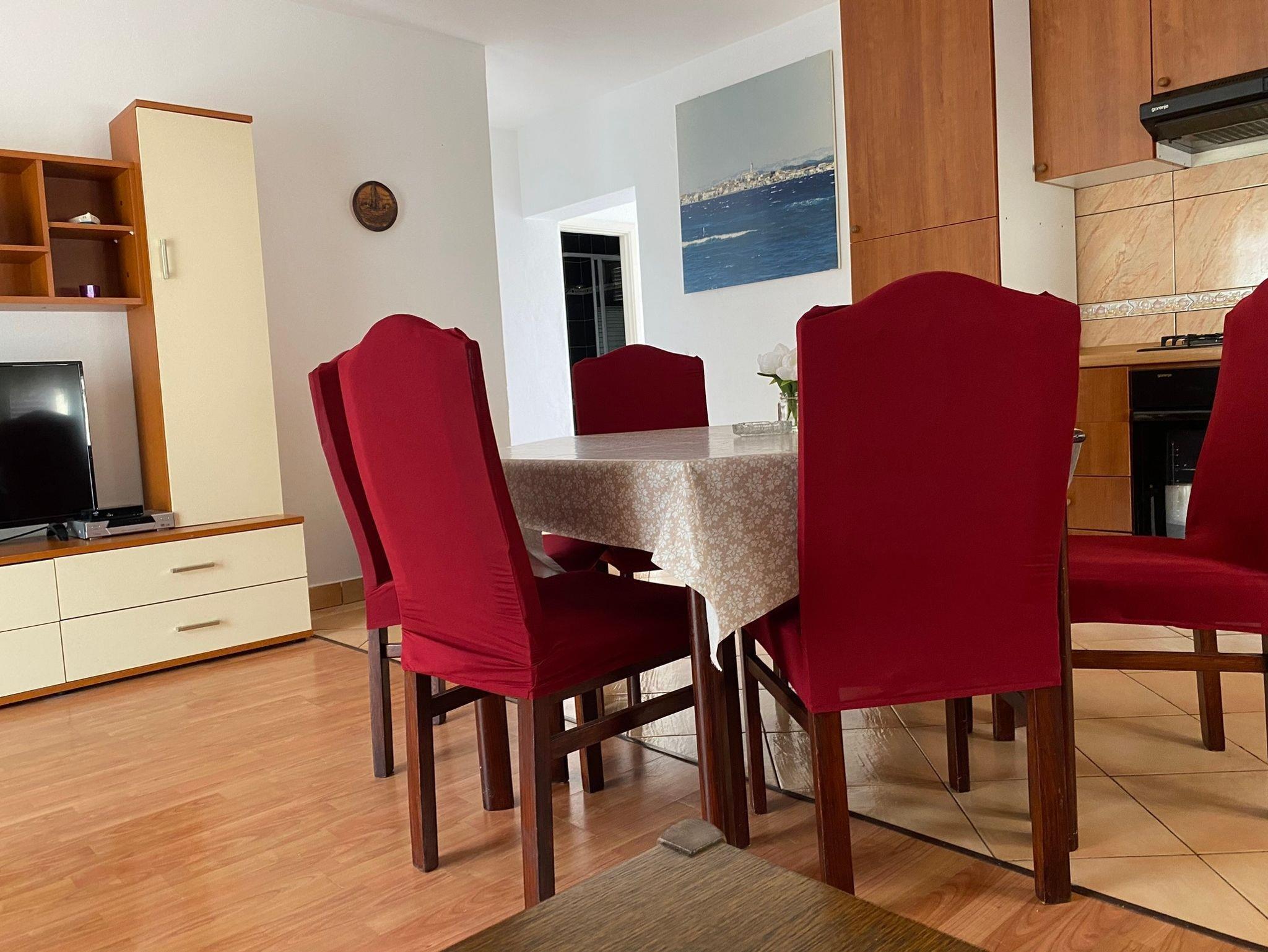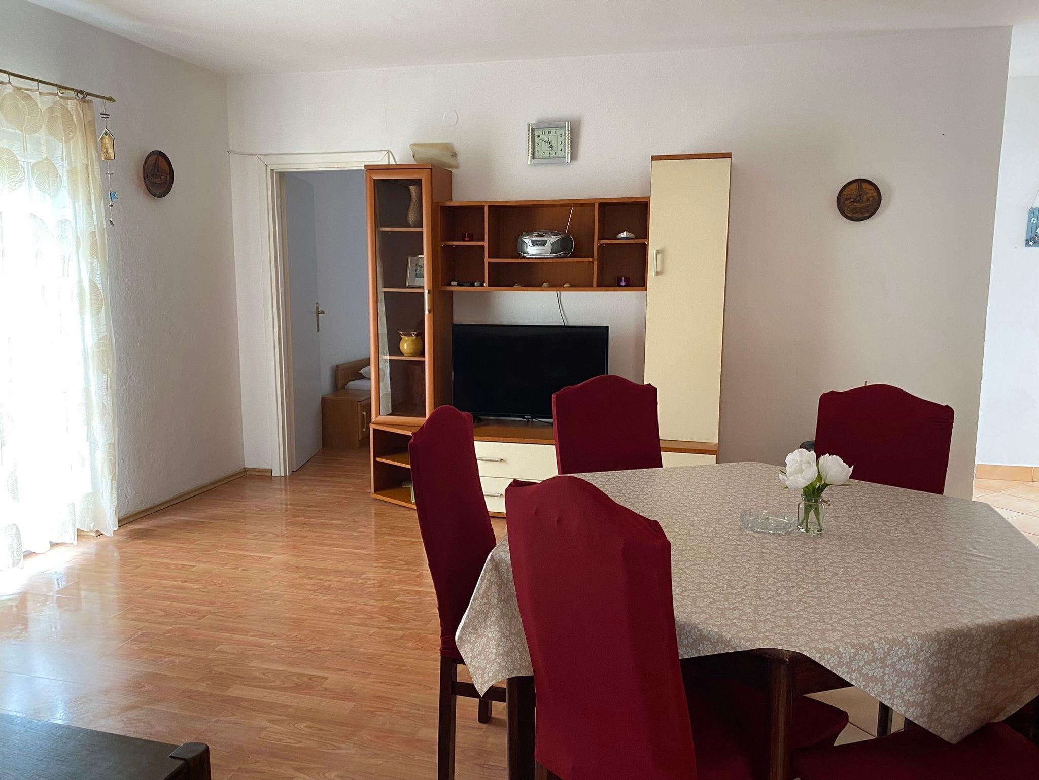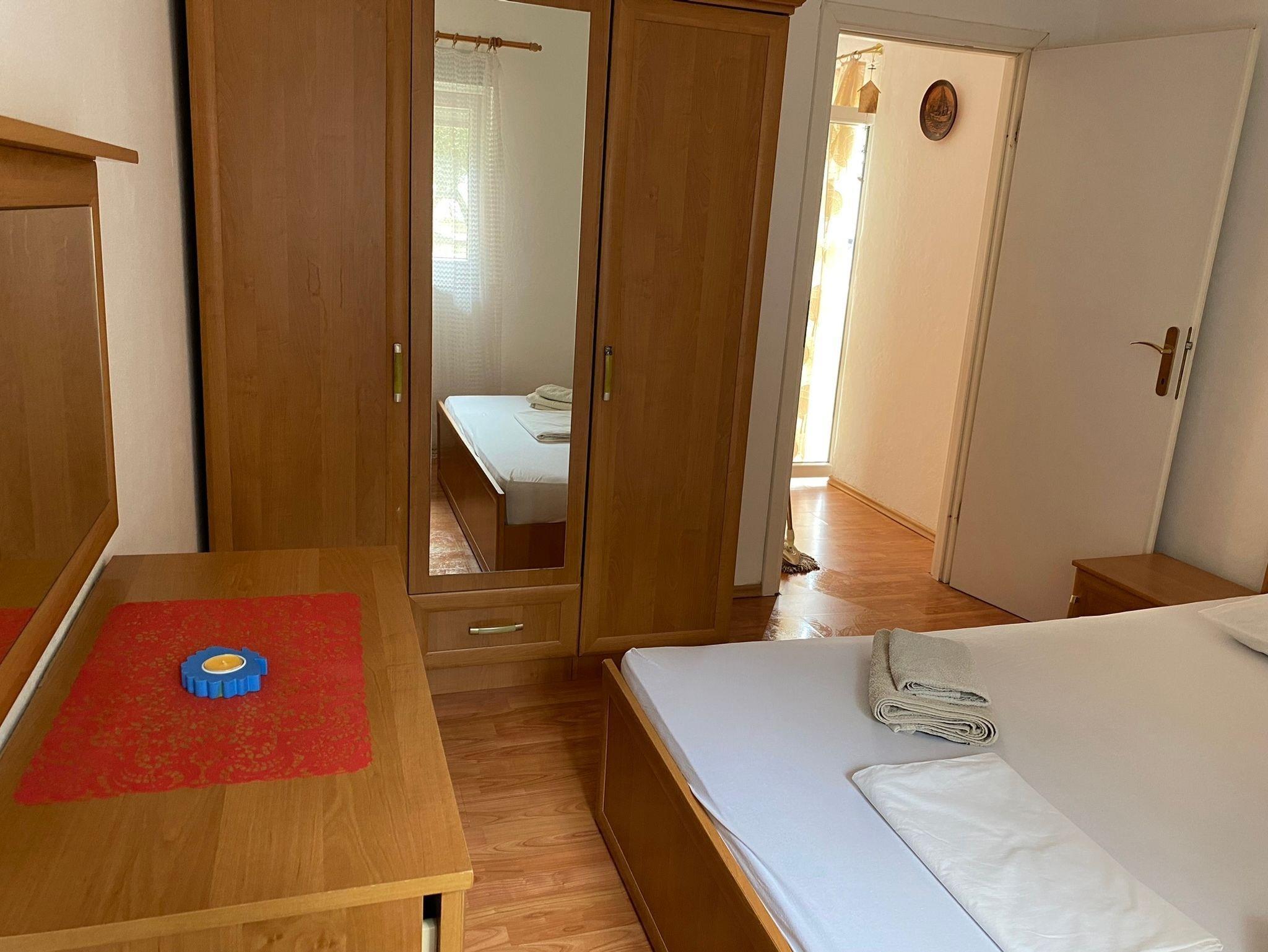 Ferienwohnung bietet Platz für 6 Gäste. Die Betten sind in Schlafzimmern, die es 2 gibt, und in Wohnzimmer, innerhalb einer Gesamtfläche von 51m2, angeordnet. Die Gäste haben eine eigene Terrasse zur Verfügung, auf der sie in warmen Sommernächten genießen können. Für vollen Genuss und Entspannung gibt es einen privaten Grill für Gäste dieser Unterkunft. In der Unterkunftseinheit besteht die Möglichkeit des Mitbringens von Haustieren gegen Aufpreis. IM PREIS INBEGRIFFEN: Kurtaxe, Endreinigung, Klimatisierung, Parkplatz, Internet, Bügeleisen, Föhn, Liegestühle. VERBINDLICHE ZUSÄTZLICHE KOSTEN: Aufzahlung für Kurzaufenthalte (prozentualer Zuschlag pro Nächtigungsanzahl: 30% - 1, 20% - 2, 10% - 3). UNVERBINDLICHE ZUSÄTZLICHE KOSTEN: Boot (30,00 € pro Nacht), Bootsanlegeplatz (10,00 € pro Nacht), Haustiere (5,00 € pro Nacht), Zusatzbett (10,00 € pro Nacht). Die Verfügbarkeit zusätzlicher Dienstleistungen in Ihrem reservierten Termin und die Preise derselben (falls nicht aufgeführt) müssen im Voraus überprüft werden. Zusätzliche Dienstleistungen die in der Zahlungsaufforderung nicht aufgeführt sind werden direkt beim Vermieter bezahlt, angenommen der Gast nutzt auch diese. Ermäßigung auf den Grundpreis: Gratistag 14=13 (bei einem Aufenthalt von 14 Tagen oder mehr erhalten Sie einen Gratistag für den Aufenthalt bis 31.12.26).