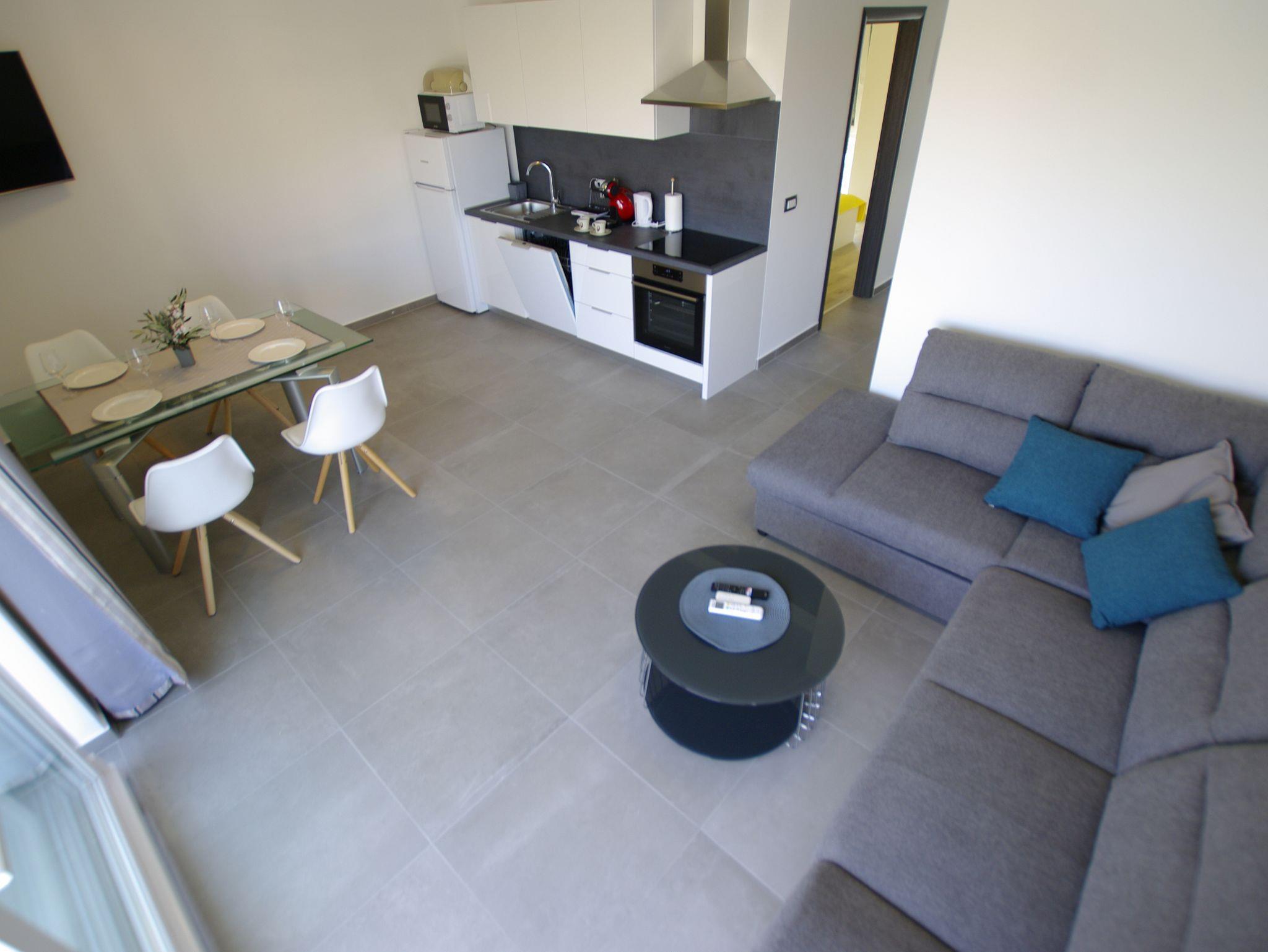 Ferienwohnung bietet Platz für 4 Gäste. Die Betten sind in Schlafzimmern, die es 1 gibt, und in Wohnzimmer, innerhalb einer Gesamtfläche von 47m2, angeordnet. Die Gäste haben eine eigene Terrasse zur Verfügung, auf der sie in warmen Sommernächten genießen können. Das Apartment bietet Meerblick. Es ist erlaubt, Speisen auf dem Gemeinschafts-Grill vorzubereiten. IM PREIS INBEGRIFFEN: Kurtaxe, Endreinigung, Klimatisierung, Parkplatz, Internet, Wäschewaschen, Kinderbett, Bügeleisen, Bügelbrett, Föhn, tragbarer Grill. VERBINDLICHE ZUSÄTZLICHE KOSTEN: Aufzahlung für Kurzaufenthalte (prozentualer Zuschlag pro Nächtigungsanzahl: 30% - 1, 20% - 2, 10% - 3). Die Verfügbarkeit zusätzlicher Dienstleistungen in Ihrem reservierten Termin und die Preise derselben (falls nicht aufgeführt) müssen im Voraus überprüft werden. Zusätzliche Dienstleistungen die in der Zahlungsaufforderung nicht aufgeführt sind werden direkt beim Vermieter bezahlt, angenommen der Gast nutzt auch diese. Ermäßigung auf den Grundpreis: Gratistag 21=19 (bei einem Aufenthalt von 21 Tagen oder mehr erhalten Sie 2 Gratistage für den Aufenthalt bis 31.12.26).