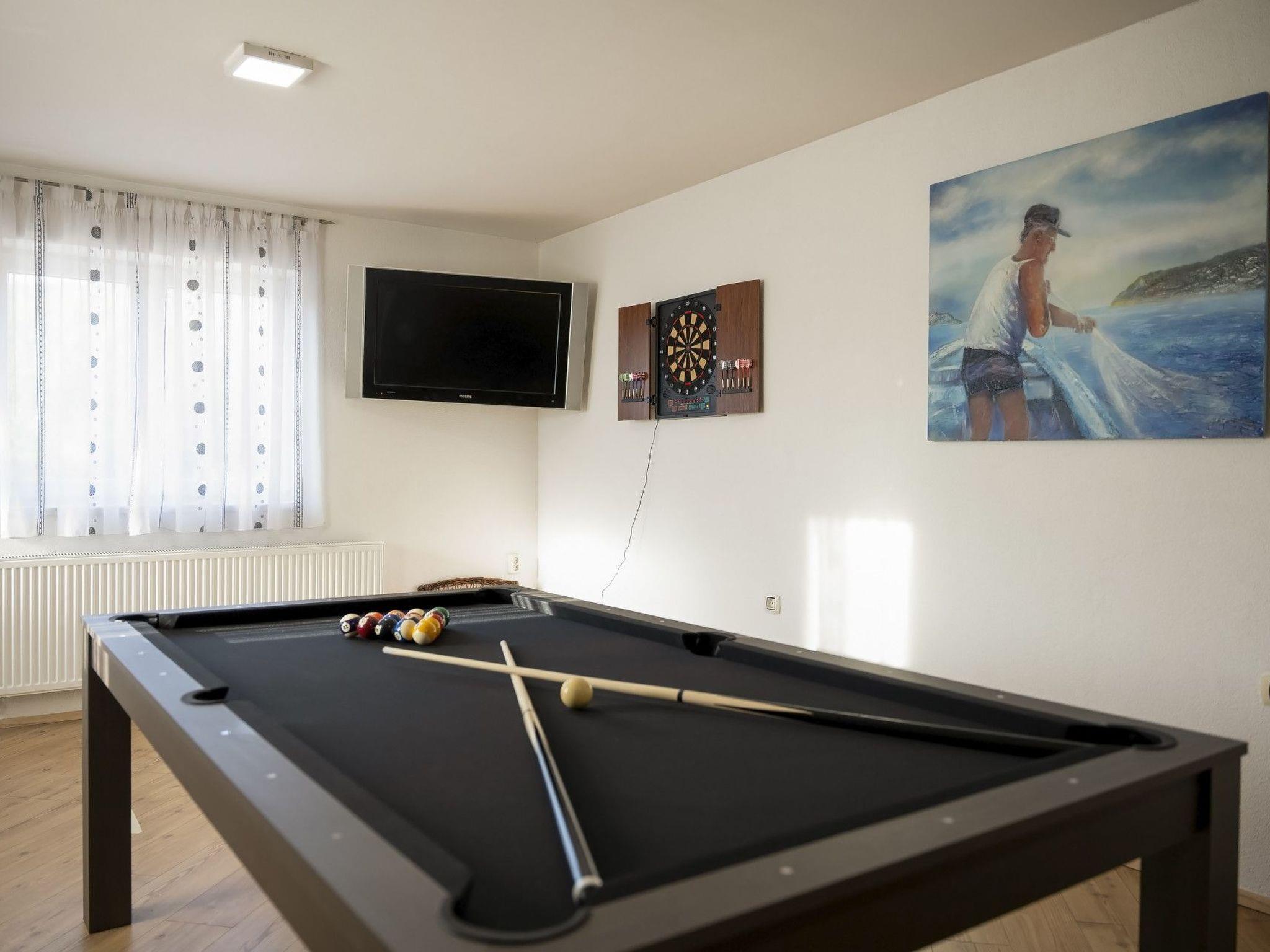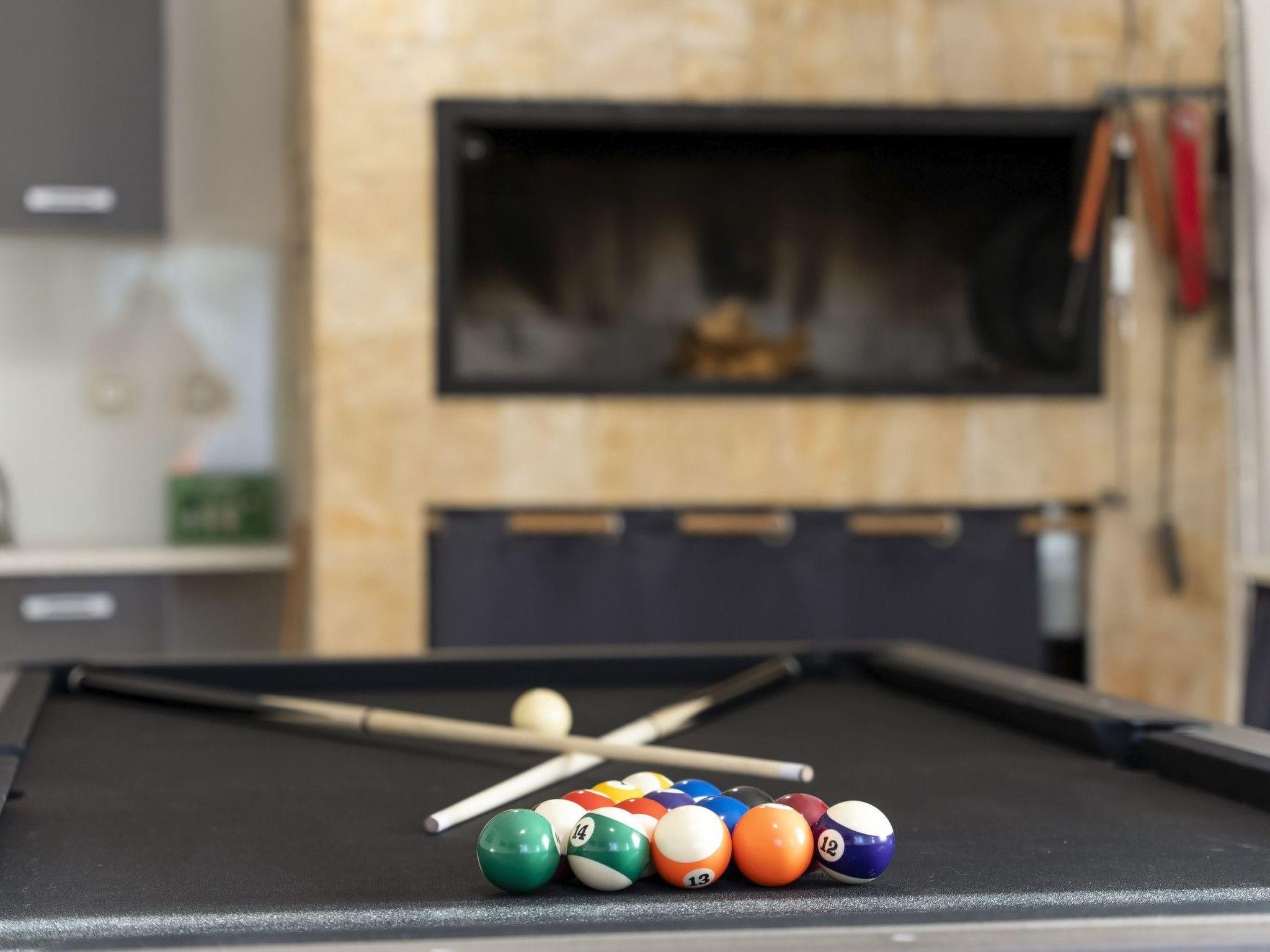Inside, Villa Whitestone unfolds as a haven of comfort and convenience. It spans a generous 290m^2, providing ample space for guests to unwind and indulge. The residence is fully equipped to meet your every need, featuring unparalleled amenities including air conditioning throughout for ultimate comfort, underfloor heating for cozy evenings, a washing machine and clothes dryer for convenience, and a dishwasher to simplify your stay. For leisure, guests can enjoy the billiards table, ensuring entertainment is always at hand.