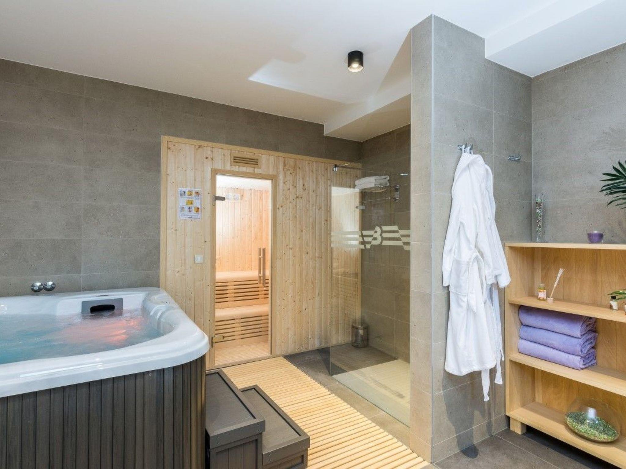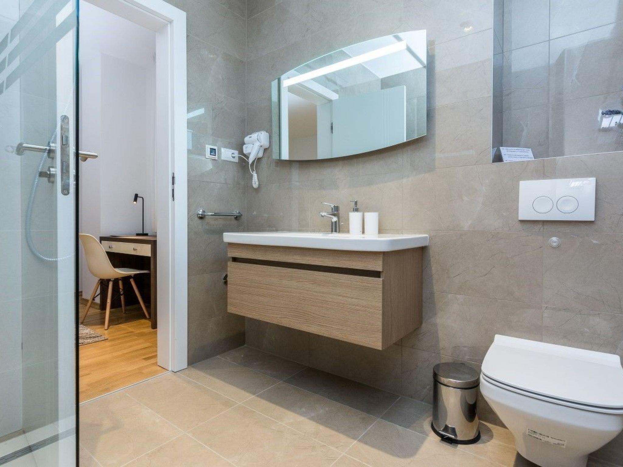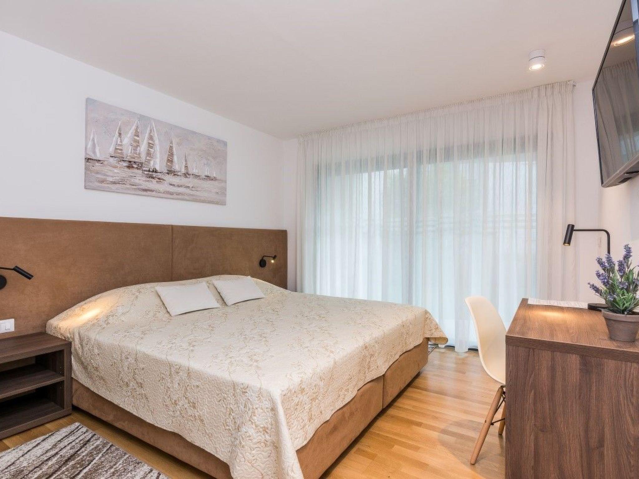 Stepping outside, the villa’s exterior is a paradise designed for exclusive use by our guests. The private pool invites you to immerse yourself in its refreshing waters or to relax on the sun loungers under the Dalmatian sun. The garden not only provides a peaceful setting for relaxation but also includes a children's playground where younger guests can enjoy endless fun.