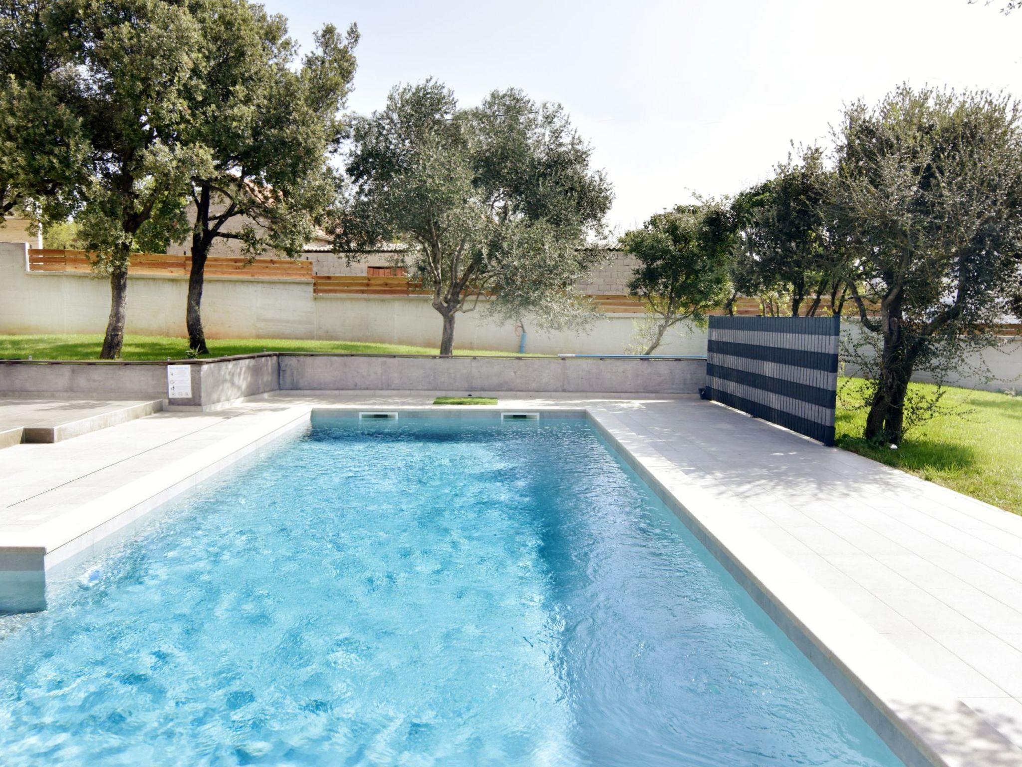 The swimming pool, with a massage area in the staircase area, has a size of 40 m² and measures 10 m x 4 m. The pool area is equipped with an outdoor shower, deck chairs and a table with chairs to spend pleasant evenings with friends, as well as a portable barbecue. The magnificent black and green oak trees, together with a mighty olive tree in the garden, will offer shelter from the sun during the hottest hours of the day. Free parking is located right next to the house.
