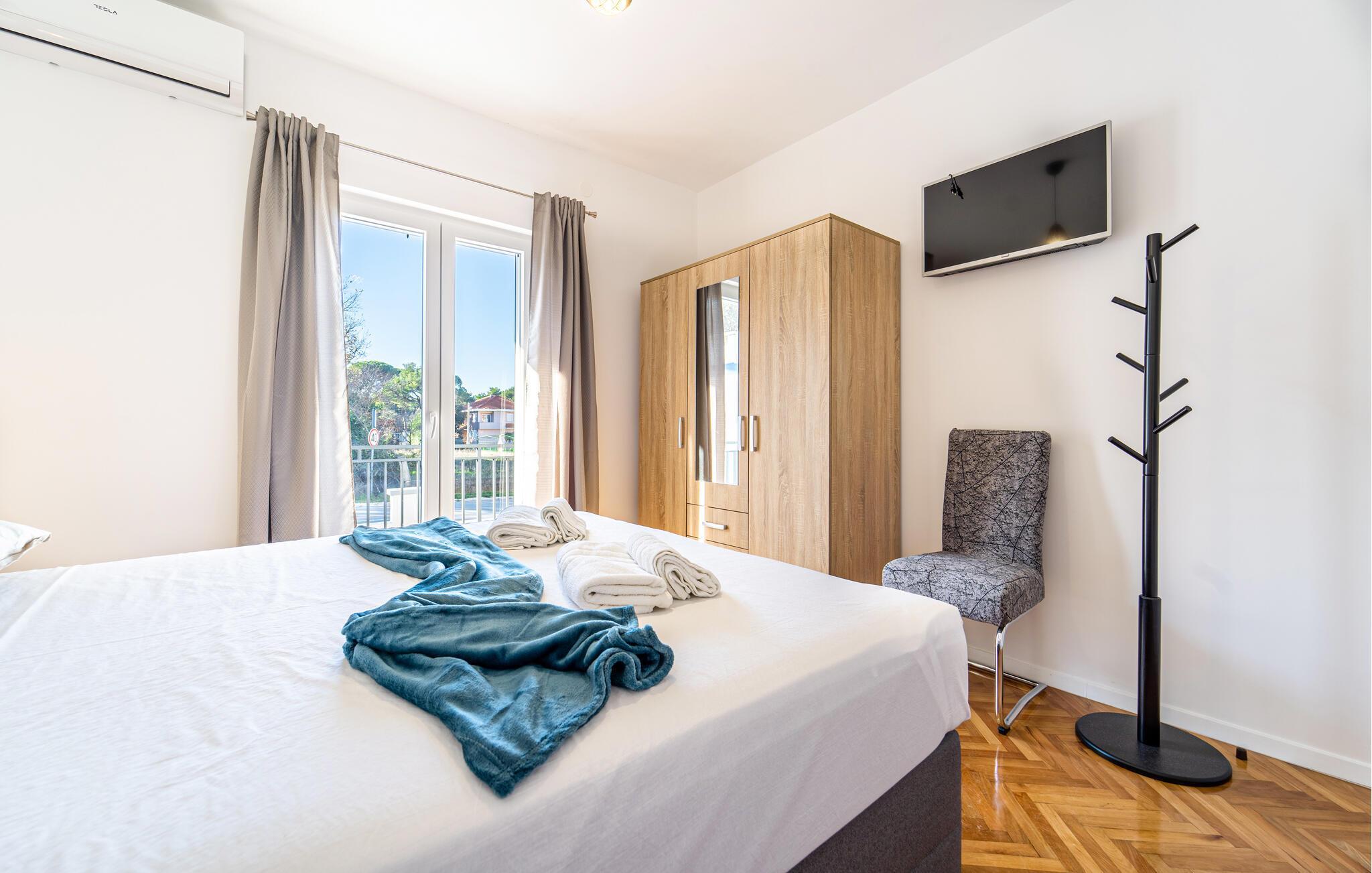 I bor i en by med mange muligheder. I kan besøge havnen, shoppe amok i butikkerne og se frem til mange sjove badeture på stenstranden. For naturelskerne lokker særligt de fremragende vandrestier gennem Vrana-bjergkæderne, hvor I kan se frem til en storslået udsigt over den store sø og havet. Fra kysten kan I også leje både og hoppe rundt på de forskellige øer ud for Biograd. Historiske Zadar kan nemt nås med bil og er ideel til en dagstur. Glæd jer til at dykke ned i byens historiske arv og den moderne arkitektur.