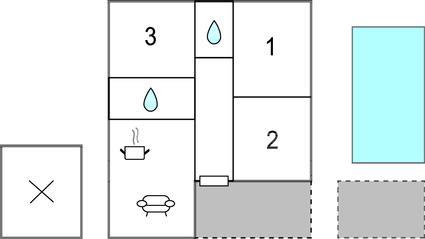 Badeværelse 6m2 (nr. 1) - WC. Varmt og koldt vand. Bruser
