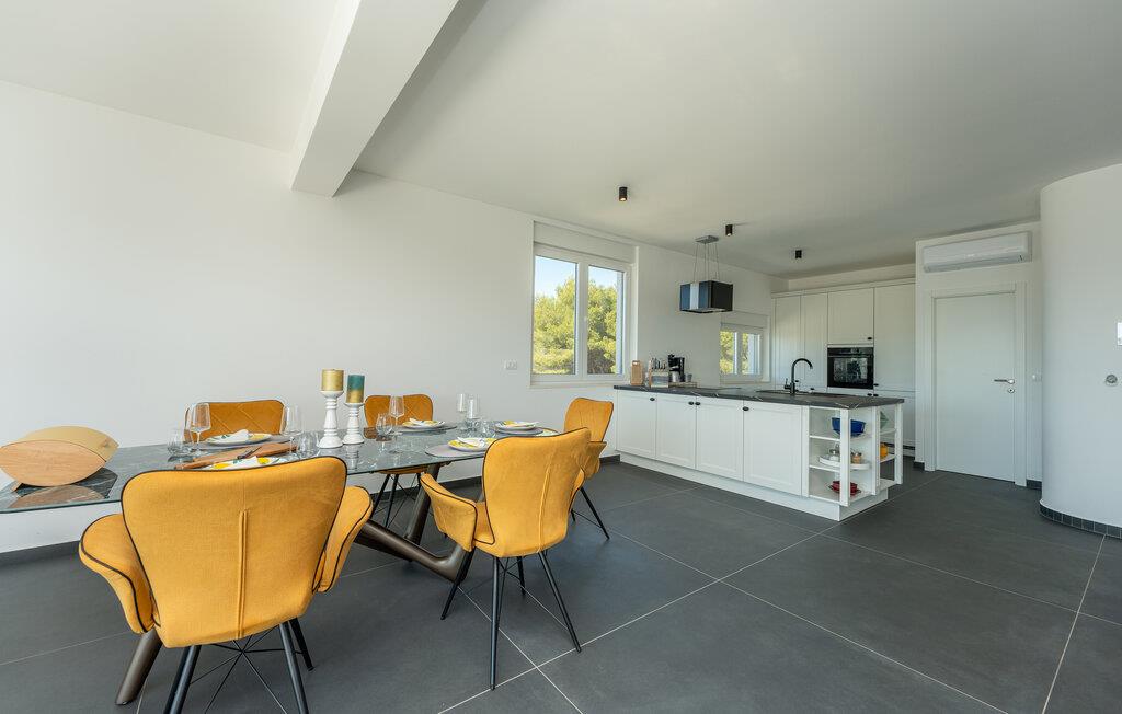 Dette feriehus lover en helt exceptionel ferie. Her kombineres moderne elegance og komfort for at skabe en behagelig atmosfære, hvor I straks vil føle jer hjemme. Store vinduer oversvømmer interiøret med naturligt lys, mens I kan nyde en storslået udsigt fra sofaen. Tilbered lækre måltider i det moderne køkken og nyd dem med en god kroatisk vin i godt selskab.