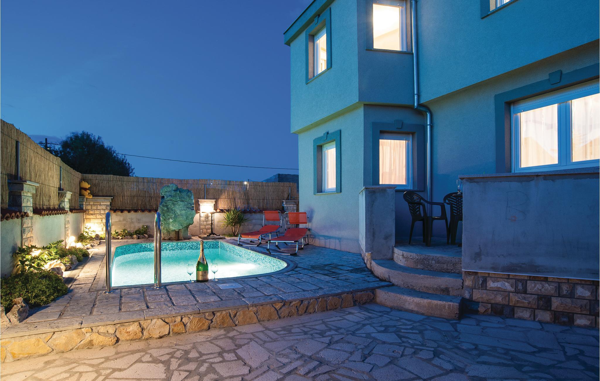 Dette feriehus med pool ligger i Kakma, i baglandet af den populære by Biograd na Moru. Her er der god plads til en strørre gruppe personer på ferie. Huset består af stueetage, første og anden sal samt mellemetager med yder- og indertrapper. Den laveste loftshøjde er 80 cm. I kann forfriske jer i poolen og opleve hyggelige timer på det overdækkede område med minimalistisk køkken og pejs. Besøg også den gamle bykerne af Vrana samt fæstningen Maskovic Han fra 1644, og hvor der hvert år bliver opført Vranas ridderdage med omhyggeligt mange flotte detaljer.