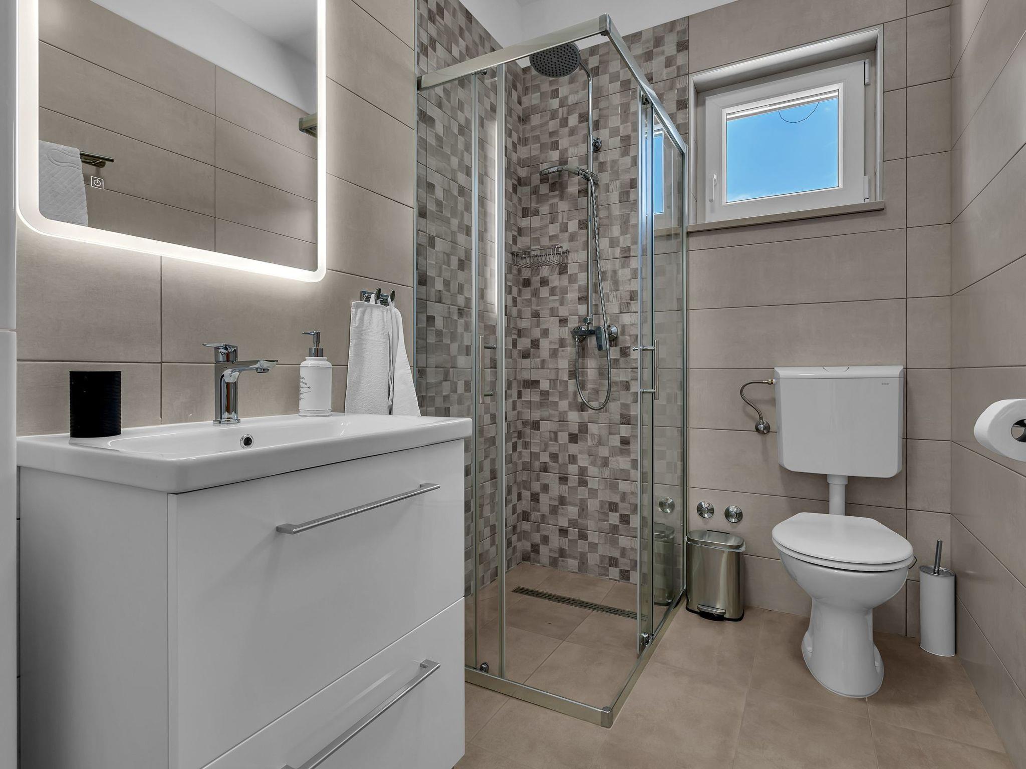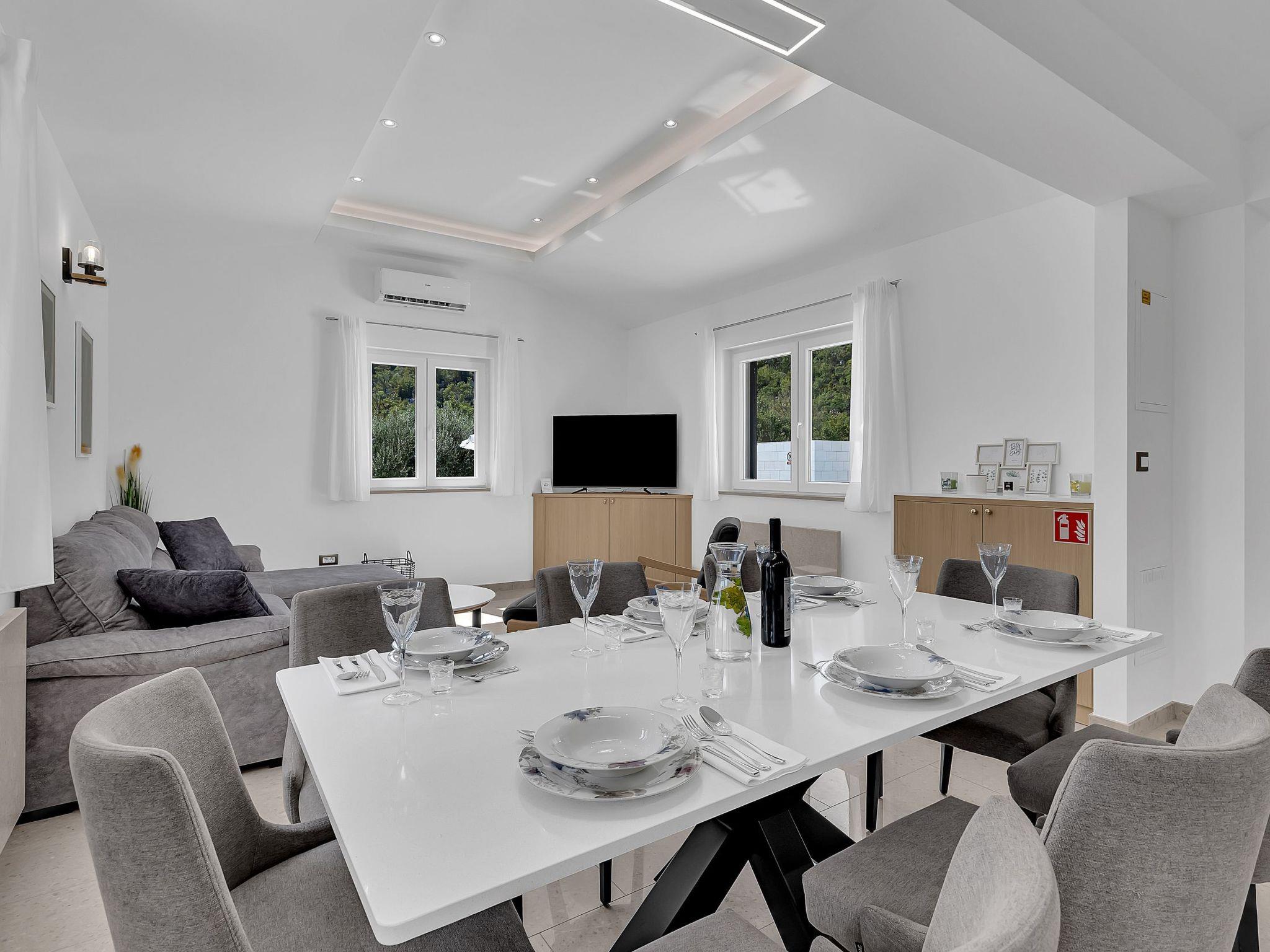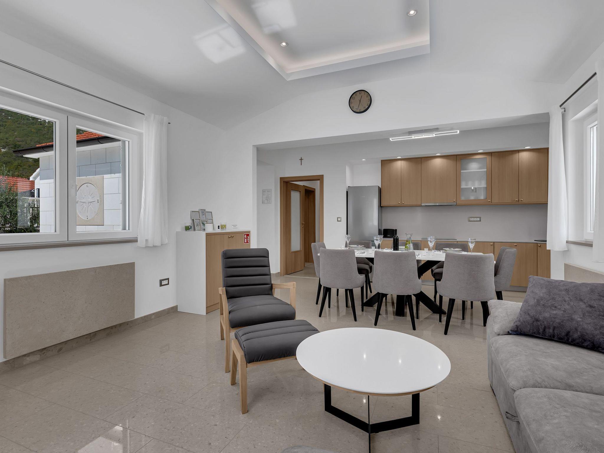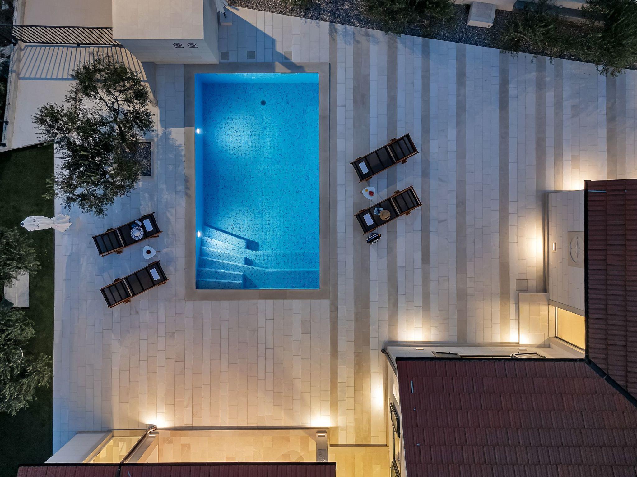 Villa Maslina can accommodate 6+2 persons in 3 bedrooms and a living room (5 beds in total). Villa Maslina has 2 full bathrooms and an additional toilet, equipped kitchen with a dining area and a private outdoor swimming pool.