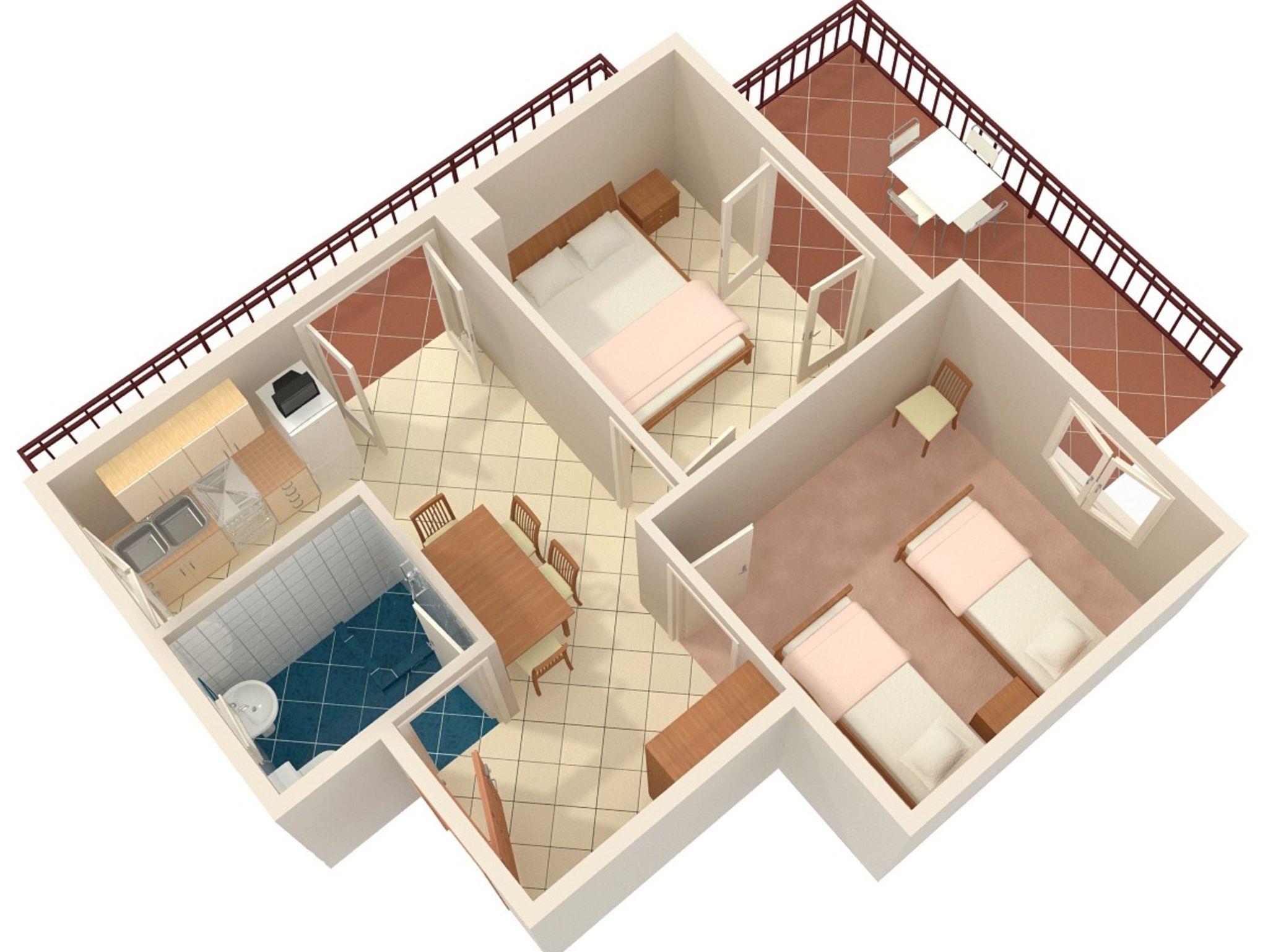Ferienwohnung bietet Platz für 4 Gäste. Die Betten sind in Schlafzimmern, die es 2 gibt, innerhalb einer Gesamtfläche von 35m2, angeordnet. Die Gäste haben eine eigene Terrasse zur Verfügung, auf der sie in warmen Sommernächten genießen können. Das Apartment bietet Meerblick. Es ist erlaubt, Speisen auf dem Gemeinschafts-Grill vorzubereiten. In der Unterkunftseinheit besteht die Möglichkeit des Mitbringens von Haustieren gegen Aufpreis. IM PREIS INBEGRIFFEN: Kurtaxe, Endreinigung, Klimatisierung, Parkplatz, Internet, Wäschewaschen, Bügeleisen, Föhn. UNVERBINDLICHE ZUSÄTZLICHE KOSTEN: Boot (200,00 € pro Nacht), Haustiere (15,00 € pro Nacht). Die Verfügbarkeit zusätzlicher Dienstleistungen in Ihrem reservierten Termin und die Preise derselben (falls nicht aufgeführt) müssen im Voraus überprüft werden. Zusätzliche Dienstleistungen die in der Zahlungsaufforderung nicht aufgeführt sind werden direkt beim Vermieter bezahlt, angenommen der Gast nutzt auch diese.