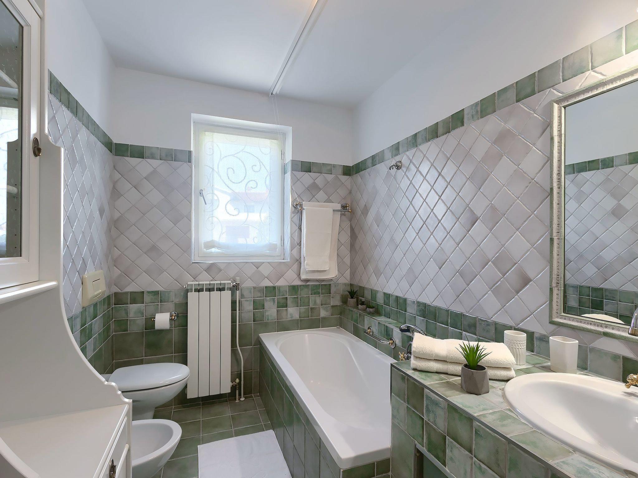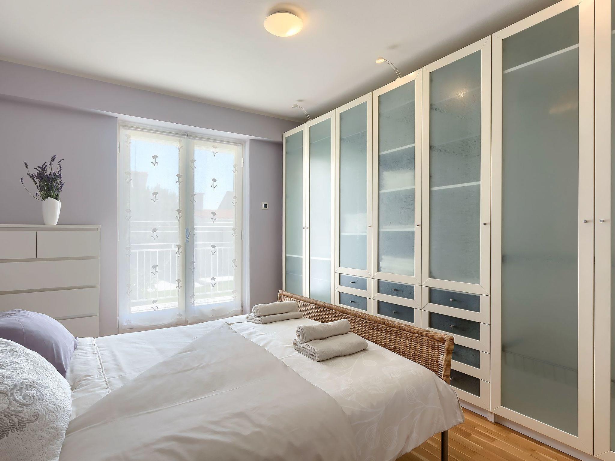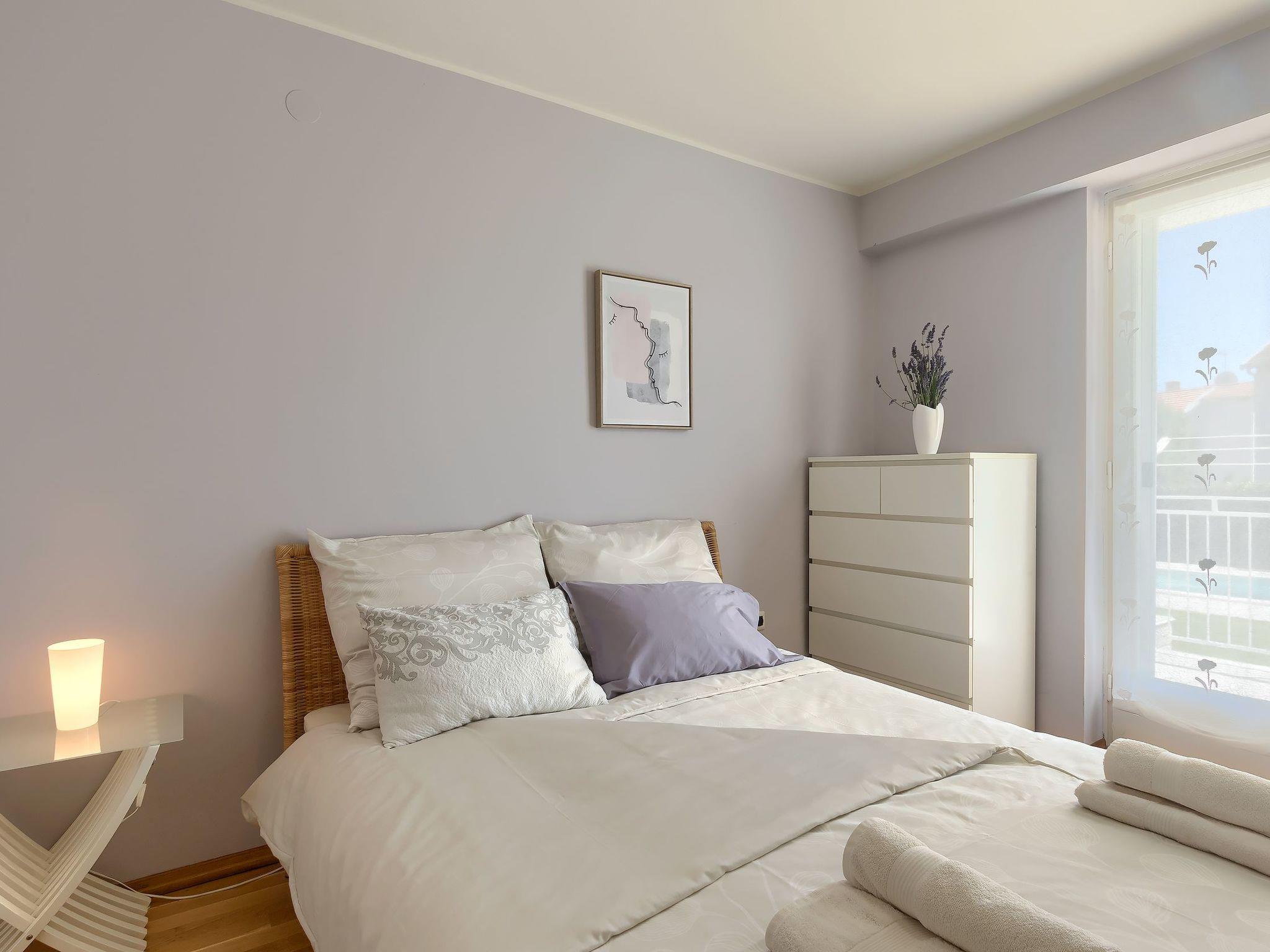 On the first floor, there is a bigger living room with a balcony, kitchen, and dining room. Two bedrooms with double bed (wardrobe, king size bed) and shared balcony. One large bathroom ( bathtub, bidet) and one toilet ( washing machine). (the first fllor suite for 5 person) The house has a fenced private parking for 3 cars and an electric gate. On the other side of the house, there is a beautiful fenced green garden with a private pool (6 deck chairs, 2 parasols) and an outdoor kitchen (outdoor grill, sink, gas stove, dining table).